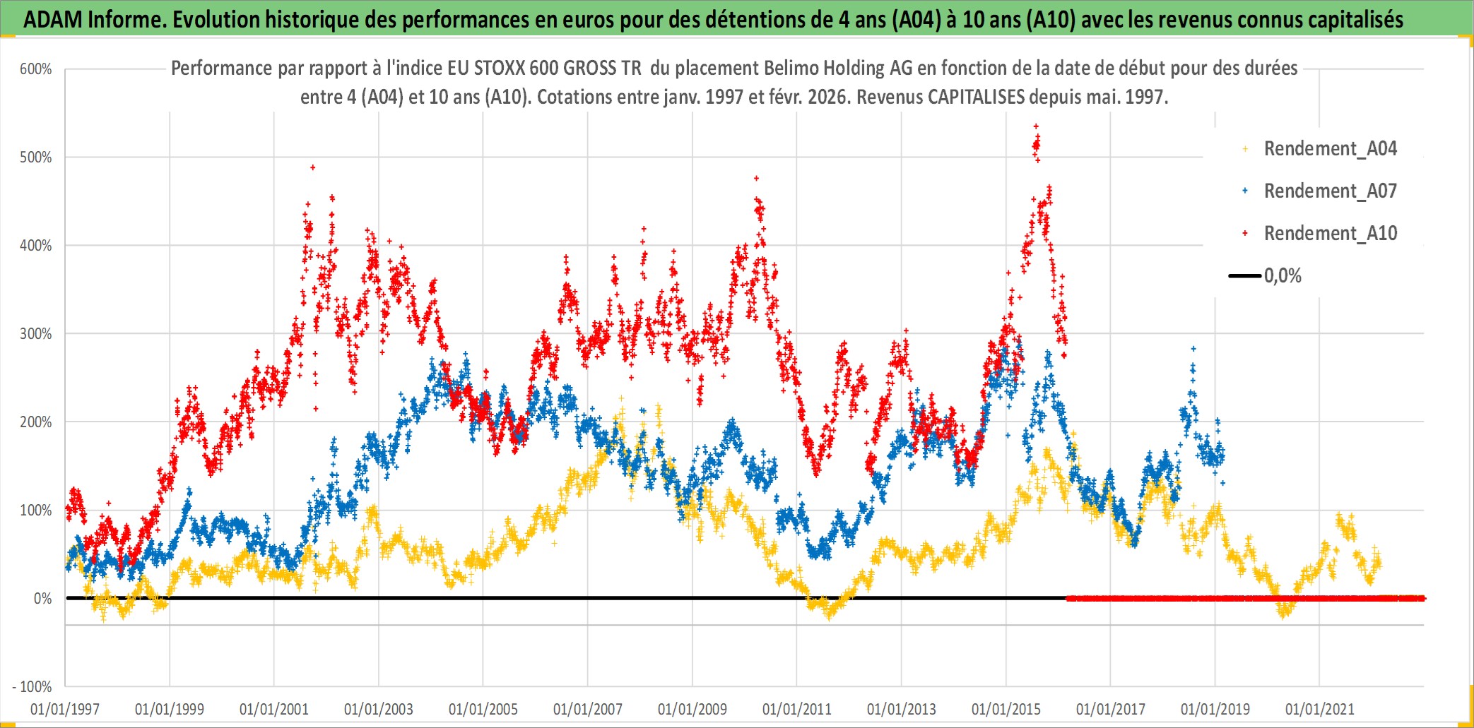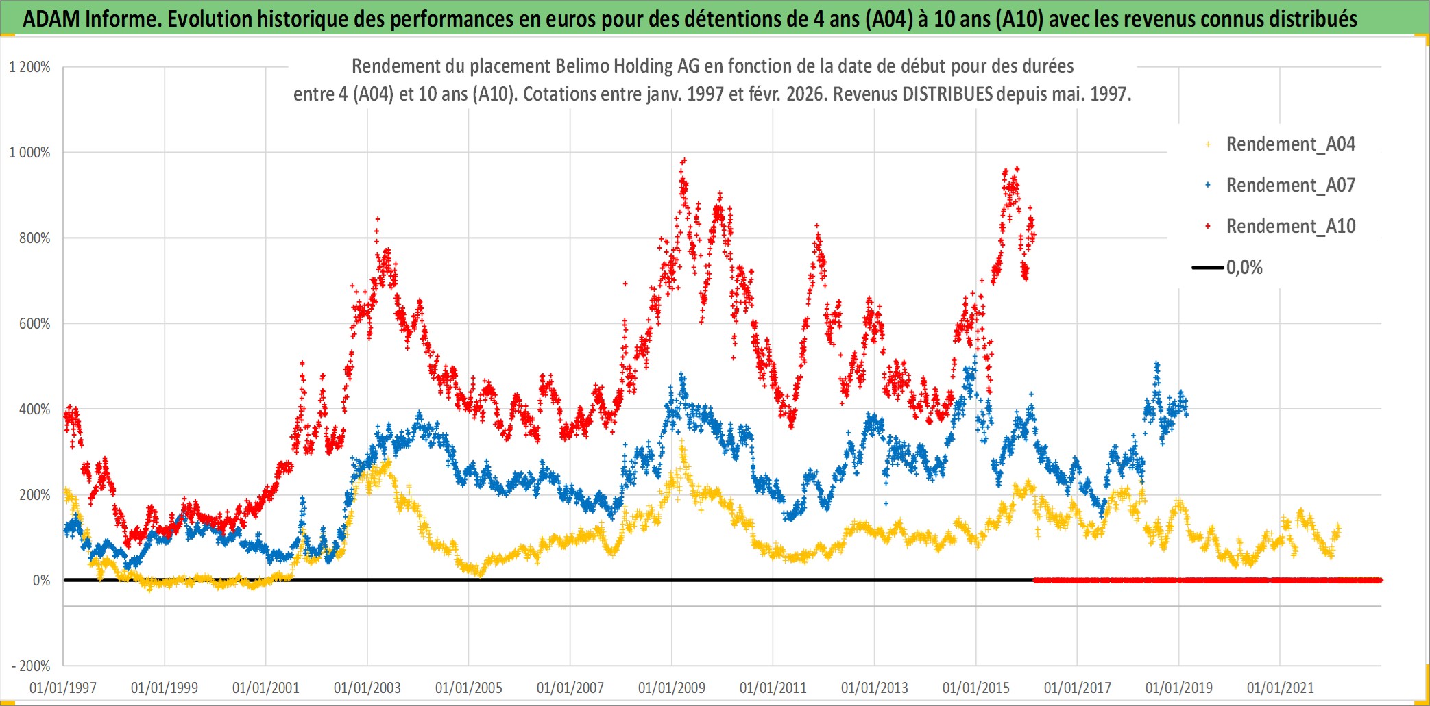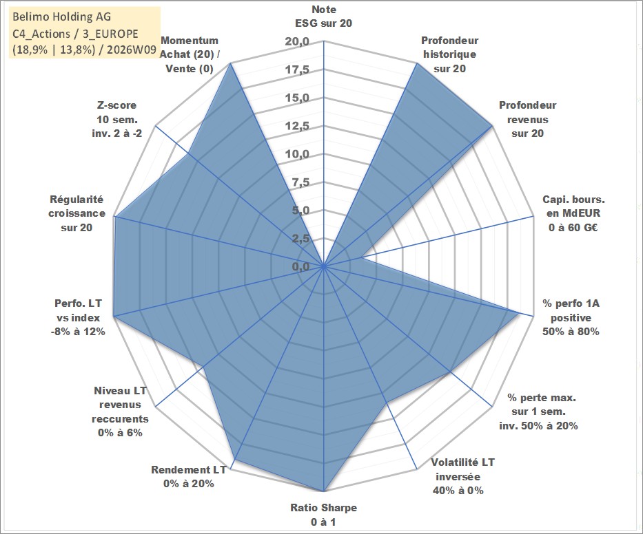 Site dédié aux investisseursPage dédiée sur site financeAnalyse des valorisations hebdomadaires de l'action Belimo Holding AG. Cet actif est cote en CHF. Les valorisations sont en contrevaleur EURO et couvrent les semaines 1997W01 a 2026W09. Les revenus de cet actif financier sont pris en compte depuis la semaine 1997W18. La note ESG de cet actif n'est pas connue.