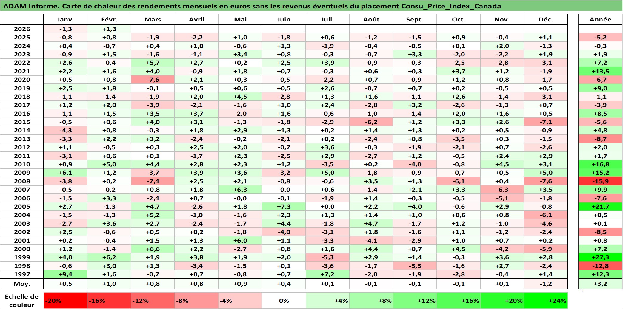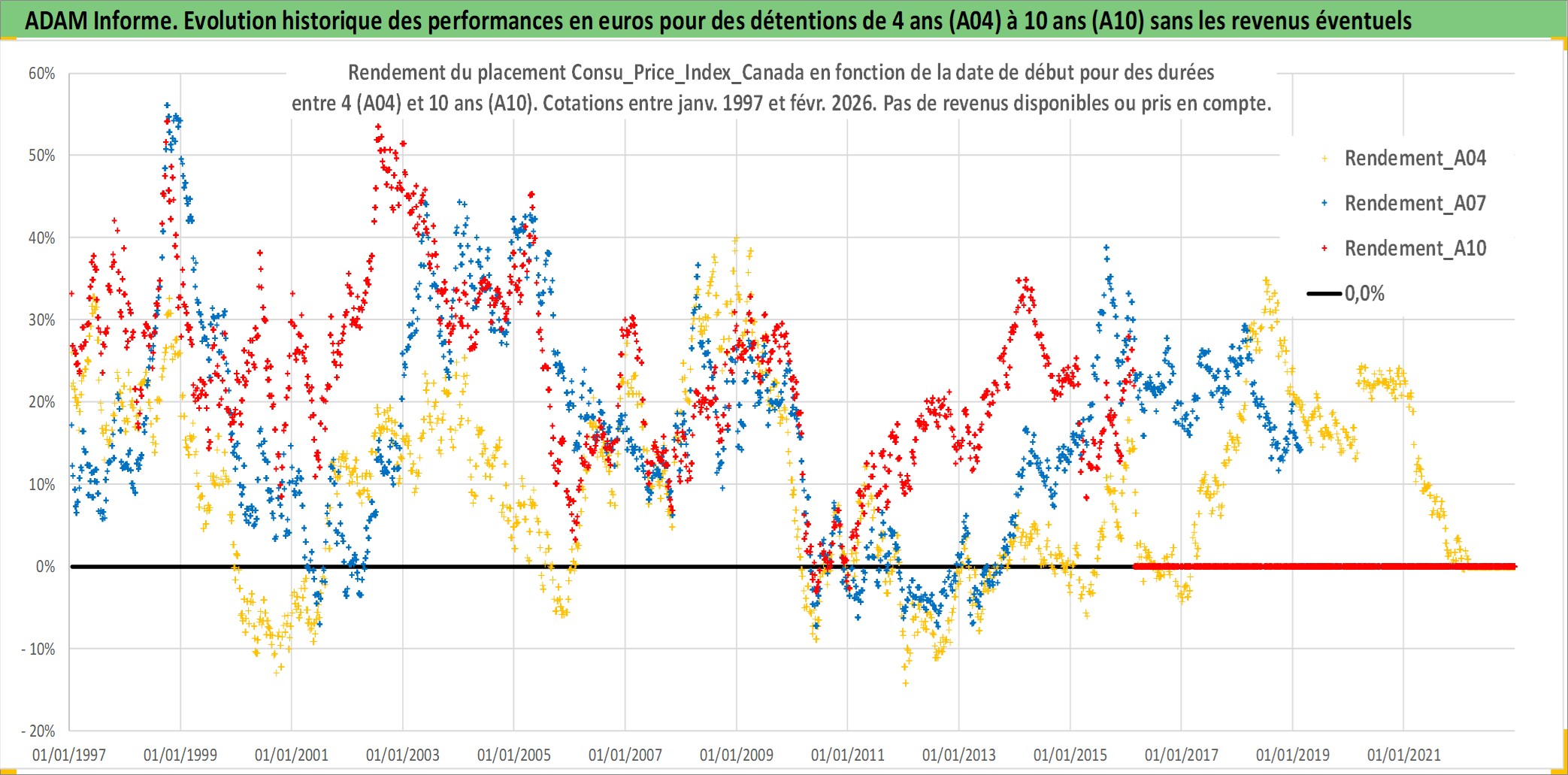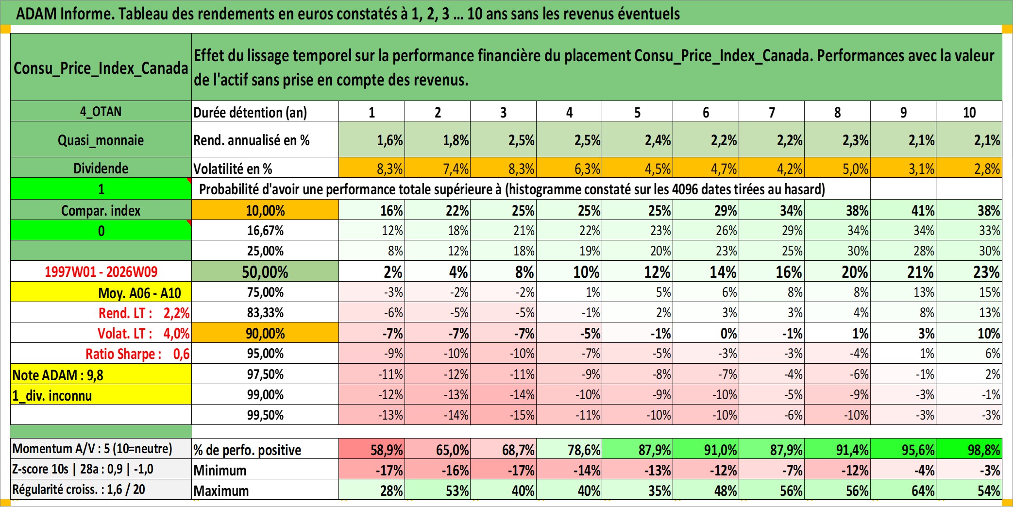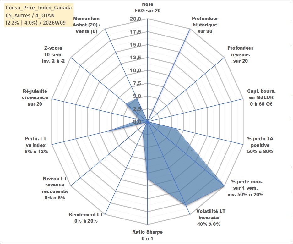Site dédié aux investisseursPage dédiée sur site financeAnalyse des valorisations hebdomadaires de l'action Consu_Price_Index_Canada. Cet actif est cote en CAD. Les valorisations sont en contrevaleur EURO et couvrent les semaines 1997W01 a 2026W09. Les revenus de cet actif financier ne sont pas connus car non existants ou non disponibles sur le site Yahoo Finance. La note ESG de cet actif n'est pas connue.