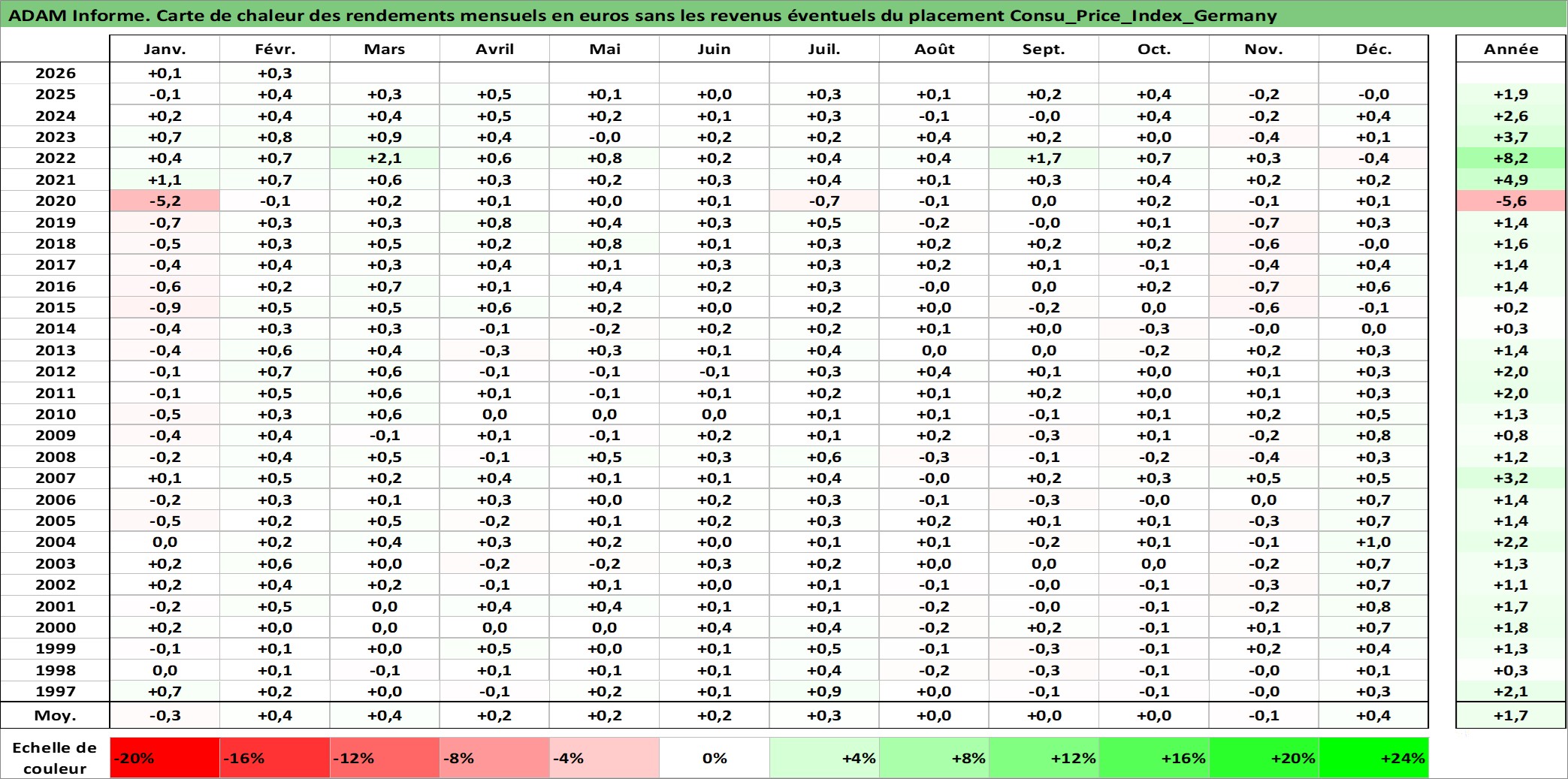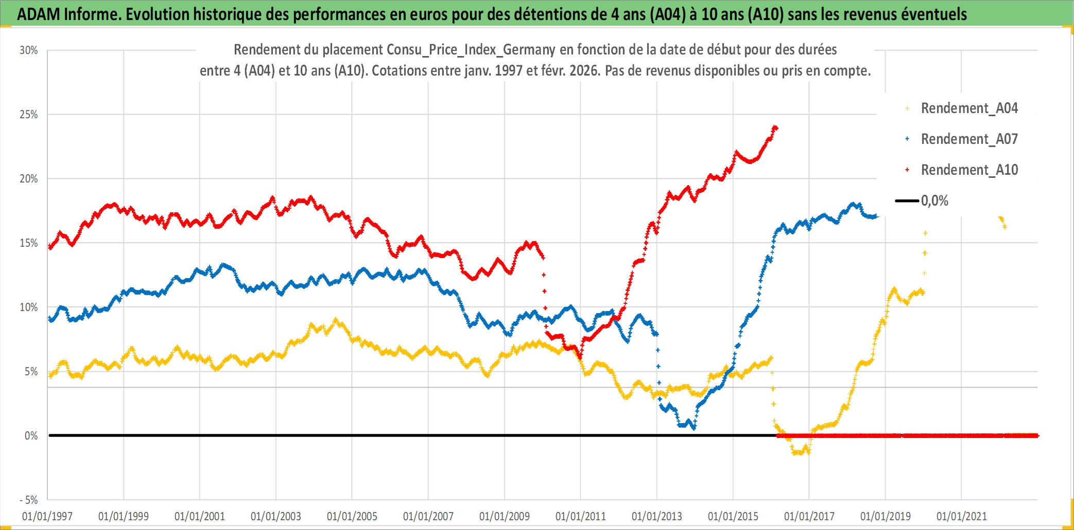 Site dédié aux investisseursPage dédiée sur site financeAnalyse des valorisations hebdomadaires de l'action Consu_Price_Index_Germany. Cet actif est cote en EUR. Les valorisations couvrent les semaines 1997W01 a 2026W09. Les revenus de cet actif financier ne sont pas connus car non existants ou non disponibles sur le site Yahoo Finance. La note ESG de cet actif n'est pas connue.