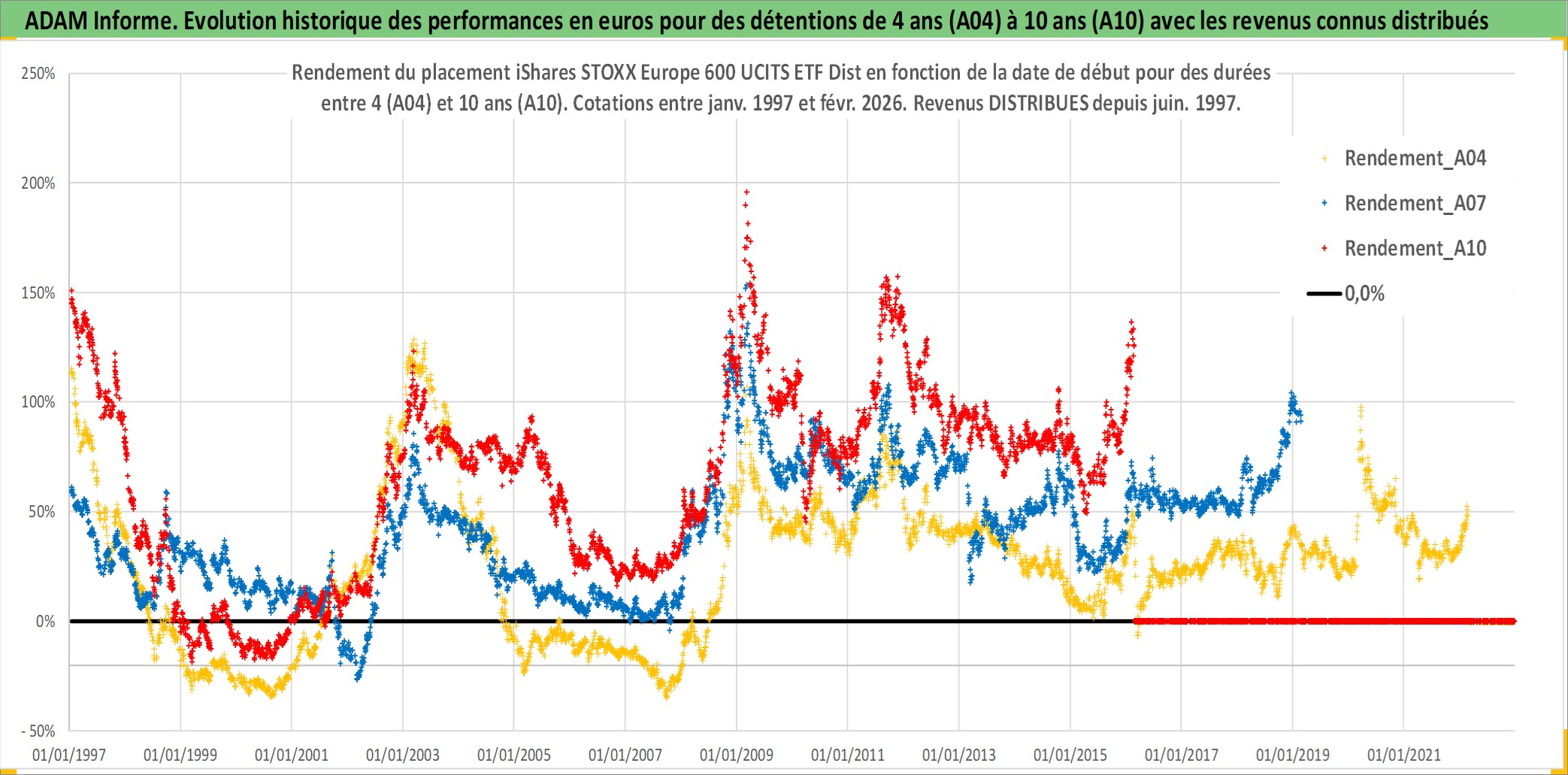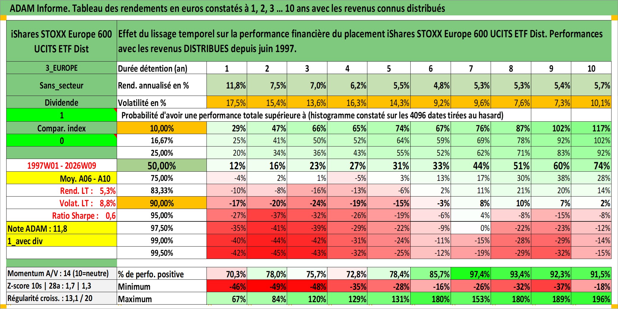 Site dédié aux investisseursPage dédiée sur site financeAnalyse des valorisations hebdomadaires du fonds iShares STOXX Europe 600 UCITS ETF Dist. Cet actif est cote en EUR. Les valorisations couvrent les semaines 1997W01 a 2026W09. Les revenus de cet actif financier sont pris en compte depuis la semaine 1997W24. La note ESG de cet actif n'est pas connue.