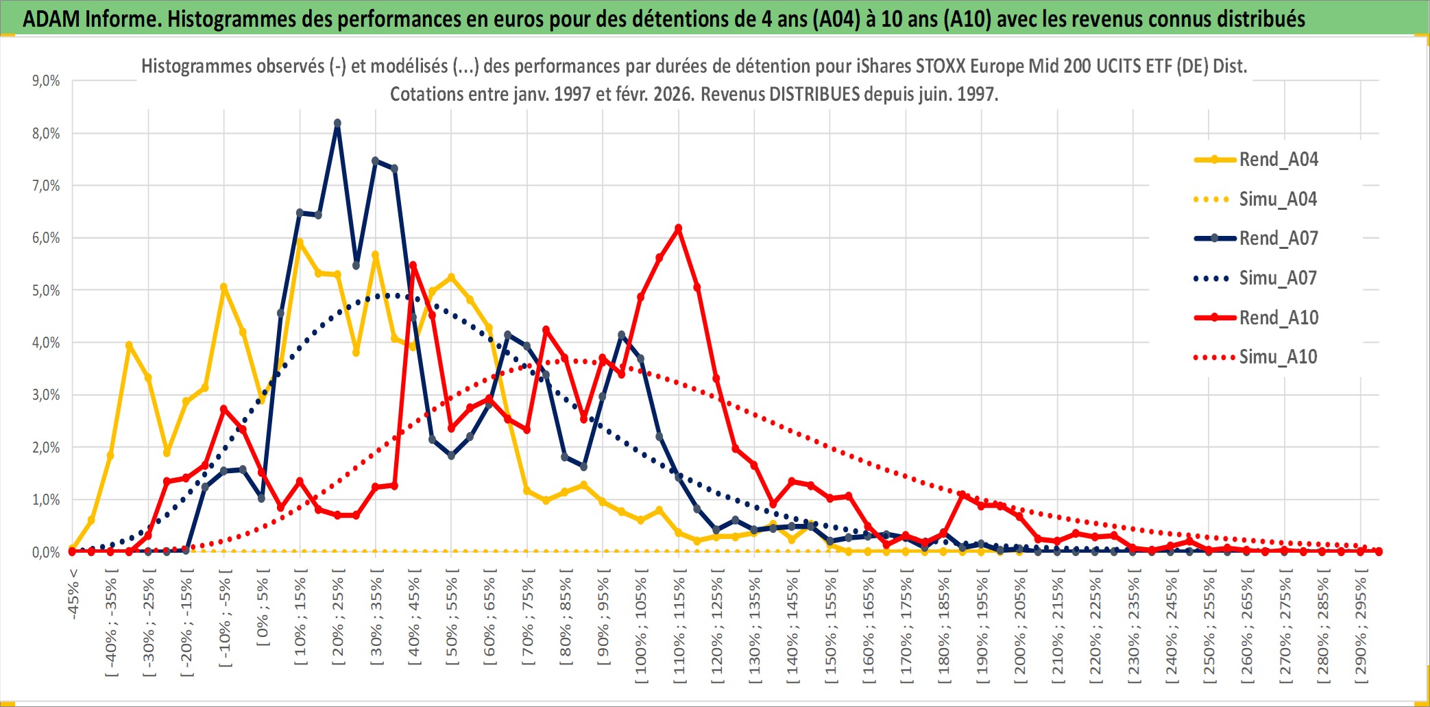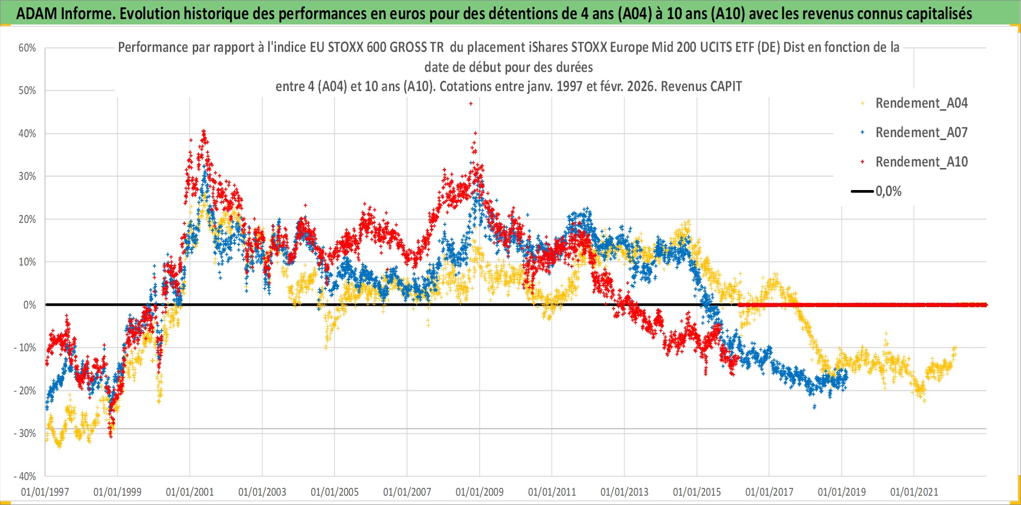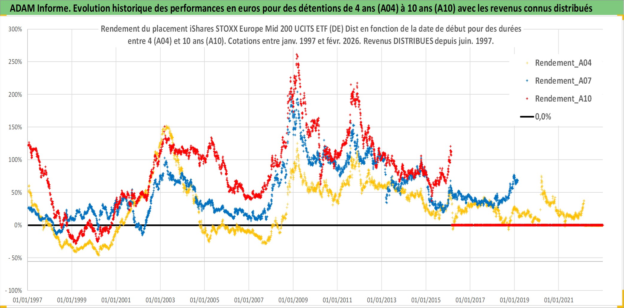 Site dédié aux investisseursPage dédiée sur site financeAnalyse des valorisations hebdomadaires du fonds iShares STOXX Europe Mid 200 UCITS ETF (DE) Dist. Cet actif est cote en EUR. Les valorisations couvrent les semaines 1997W01 a 2026W09. Les revenus de cet actif financier sont pris en compte depuis la semaine 1997W25. La note ESG de cet actif n'est pas connue.
