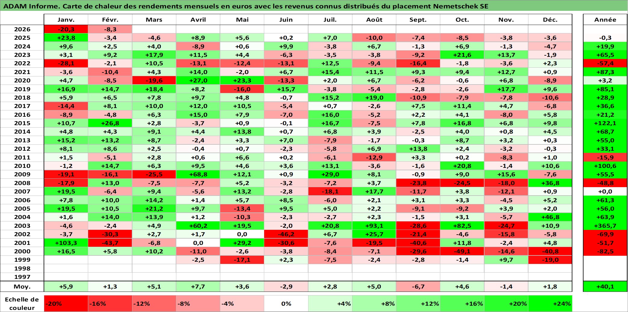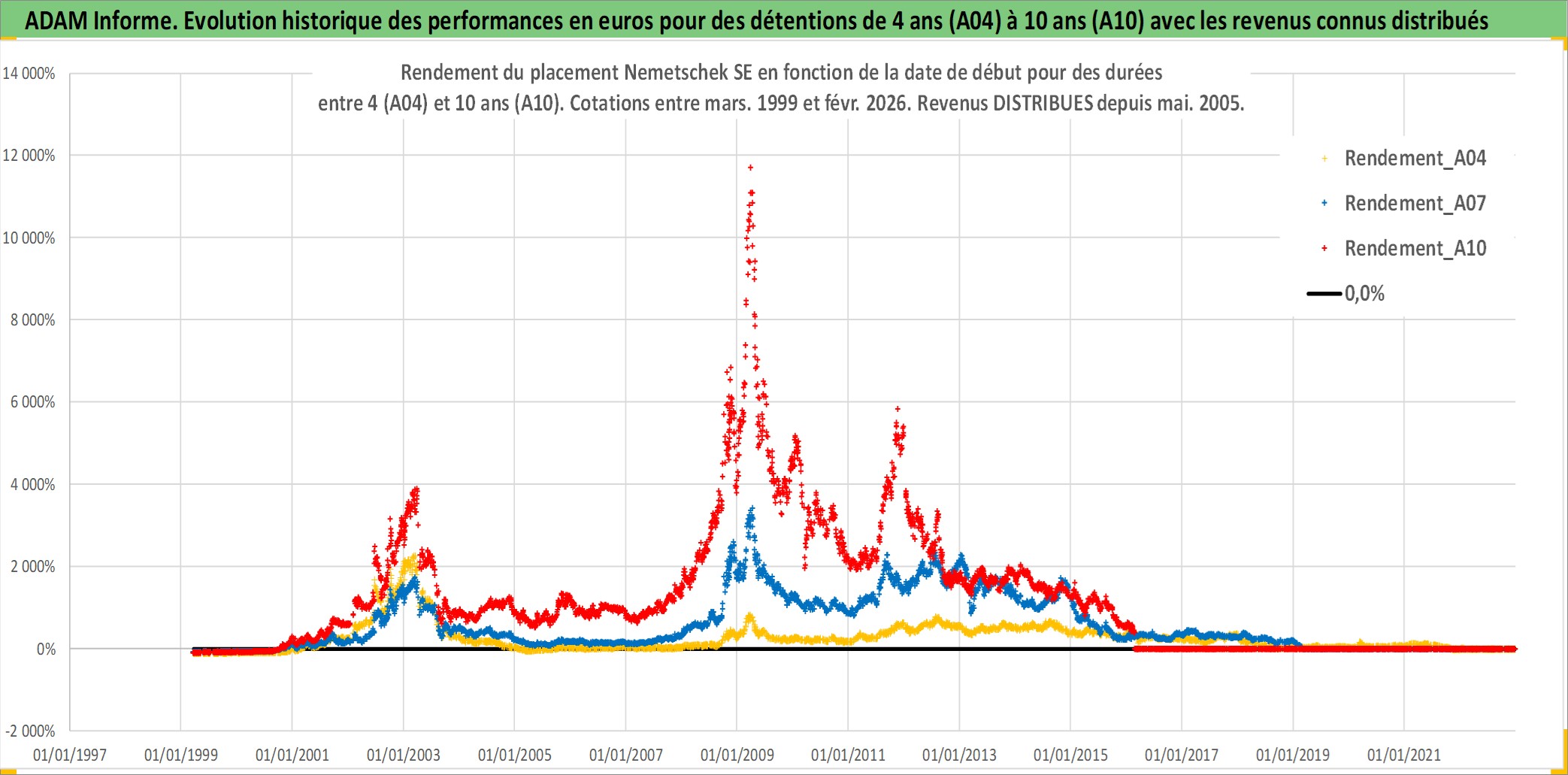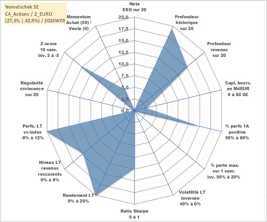 Site dédié aux investisseursPage dédiée sur site financeAnalyse des valorisations hebdomadaires de l'action Nemetschek SE. Cet actif est cote en EUR. Les valorisations couvrent les semaines 1999W10 a 2026W09. Les revenus de cet actif financier sont pris en compte depuis la semaine 2005W21. La note ESG de cet actif n'est pas connue.