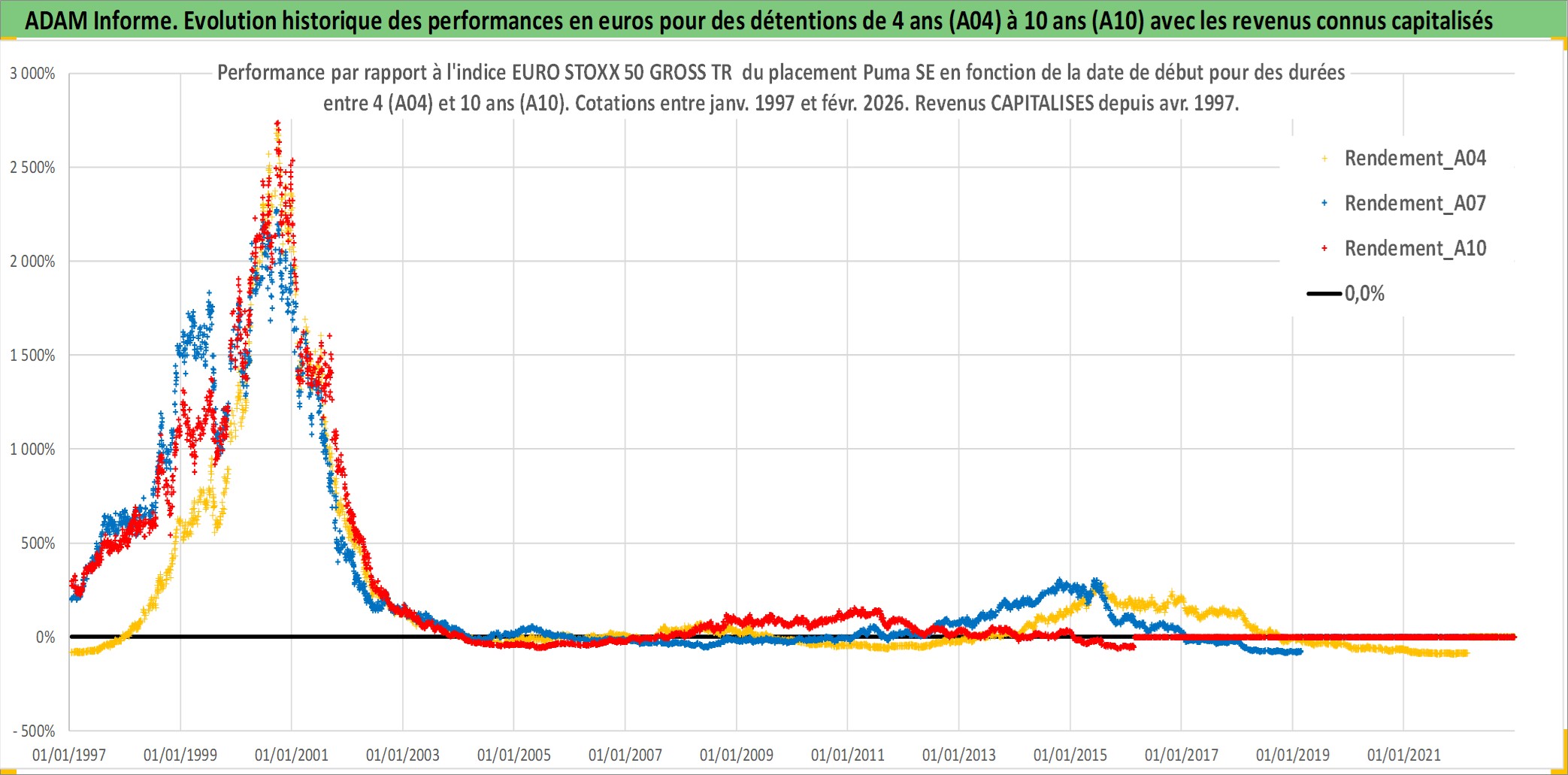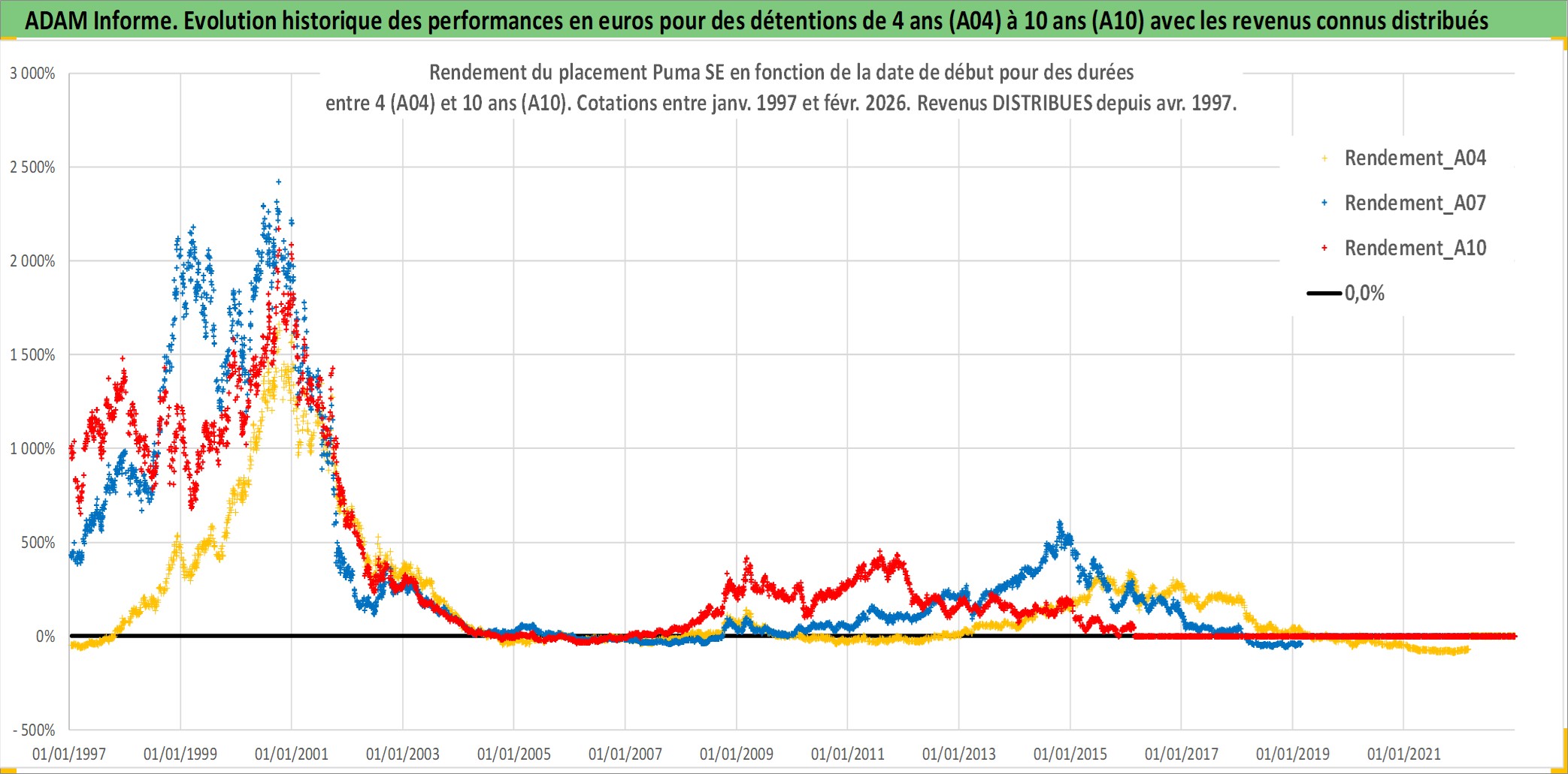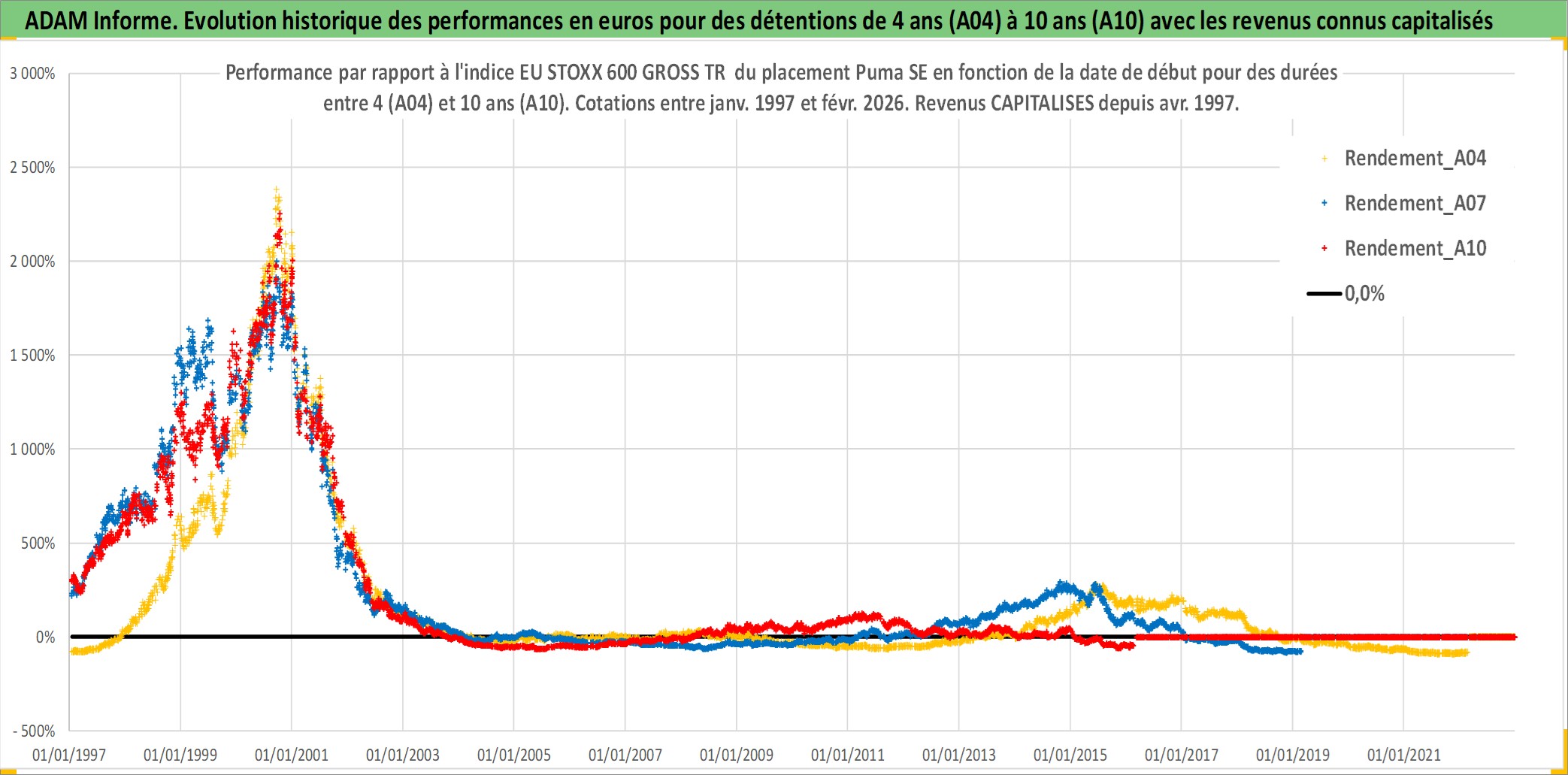 Site dédié aux investisseursPage dédiée sur site financeAnalyse des valorisations hebdomadaires de l'action Puma SE. Cet actif est cote en EUR. Les valorisations couvrent les semaines 1997W01 a 2026W09. Les revenus de cet actif financier sont pris en compte depuis la semaine 1997W17. La note ESG de cet actif n'est pas connue.