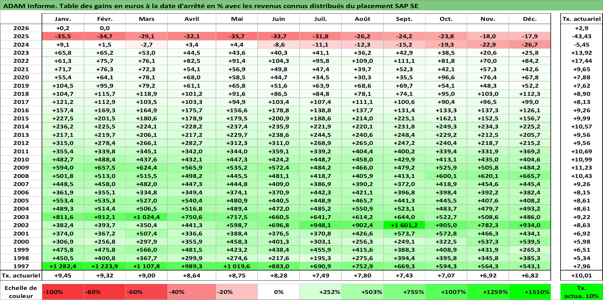 Dernière perfo 10 ans en %