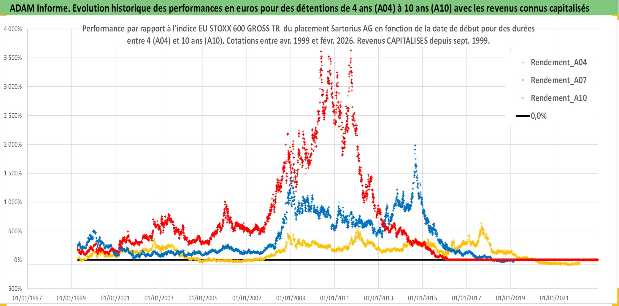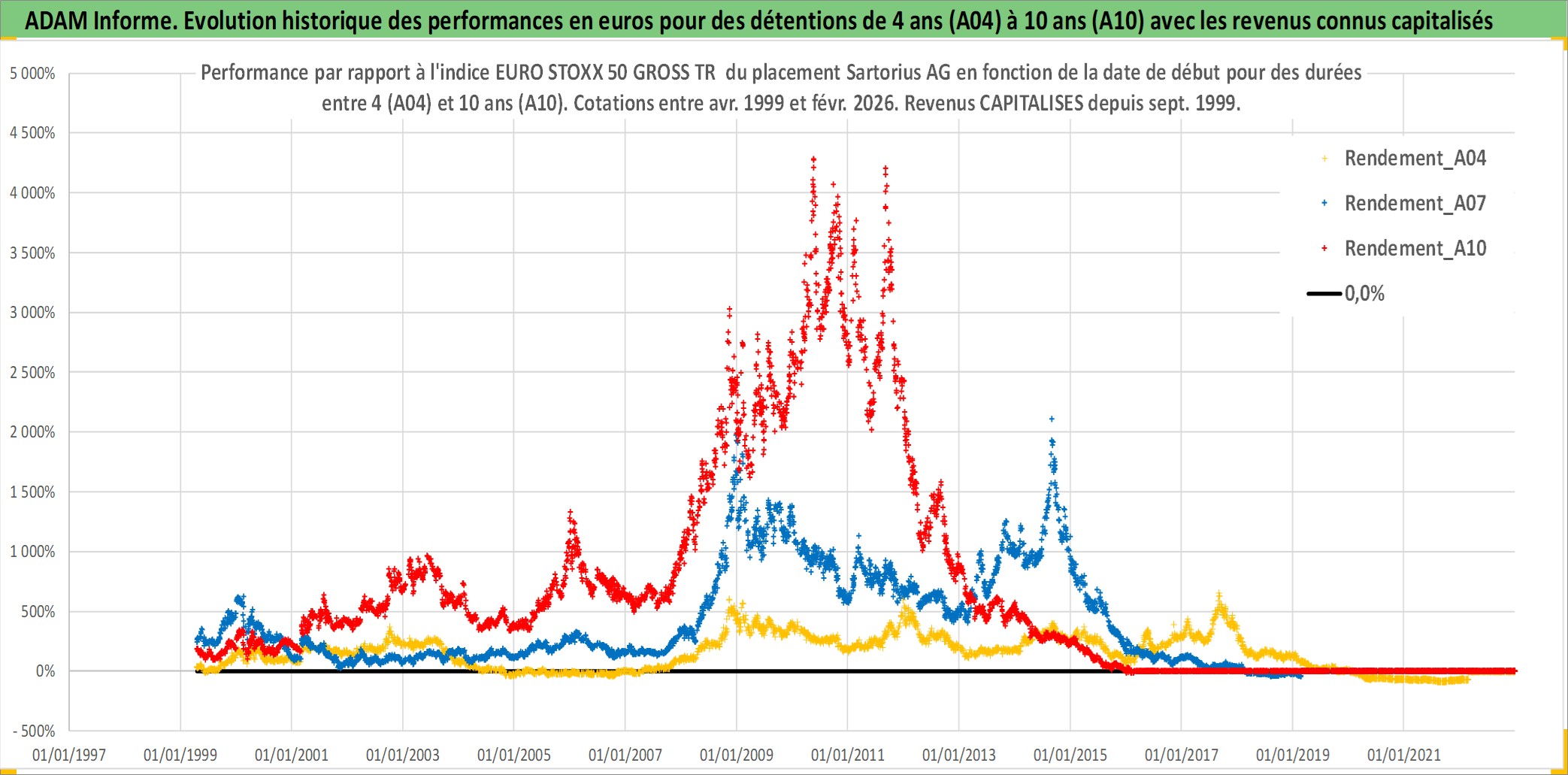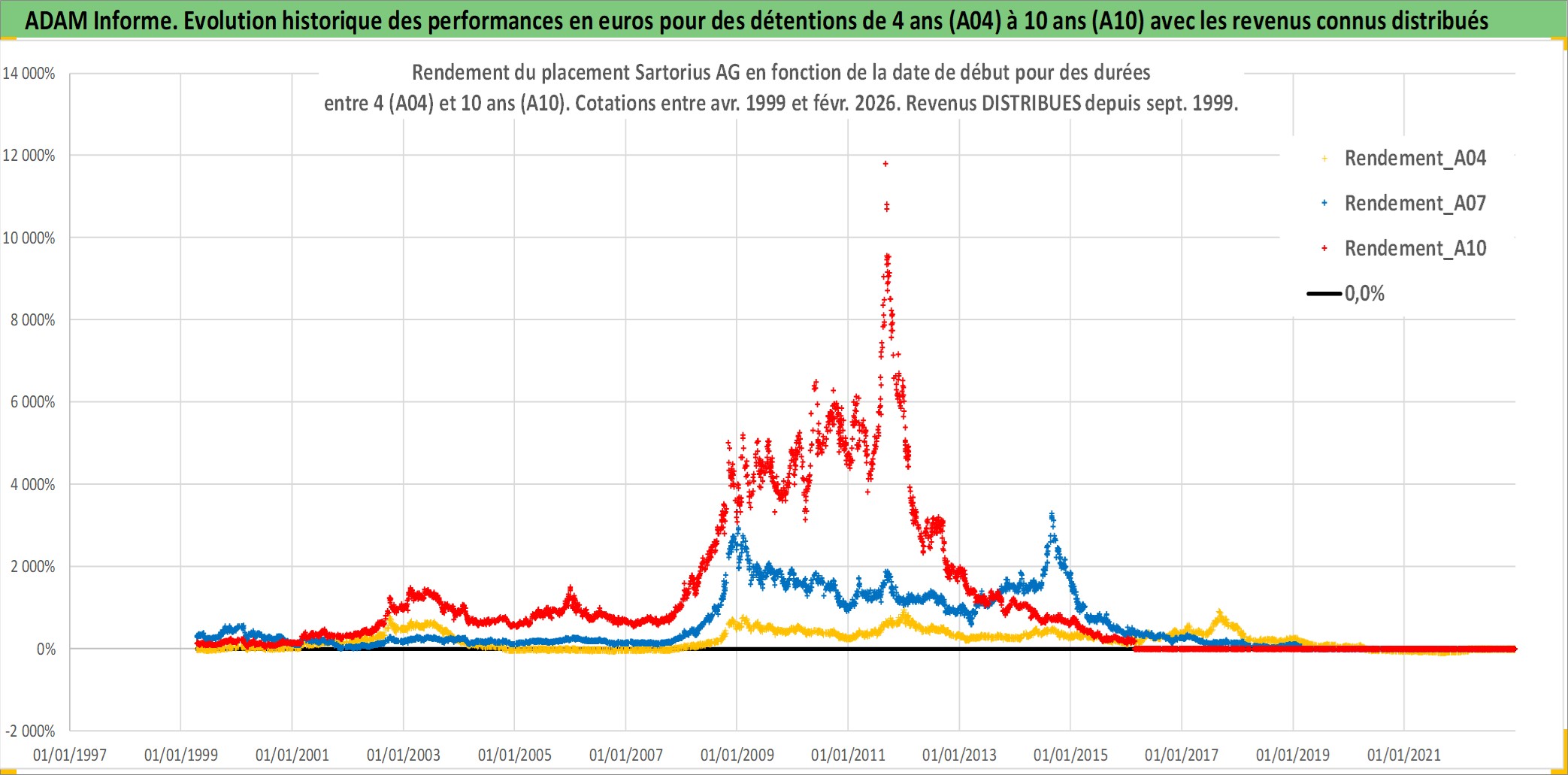 Site dédié aux investisseursPage dédiée sur site financeAnalyse des valorisations hebdomadaires de l'action Sartorius AG. Cet actif est cote en EUR. Les valorisations couvrent les semaines 1999W14 a 2026W09. Les revenus de cet actif financier sont pris en compte depuis la semaine 1999W35. La note ESG de cet actif n'est pas connue.