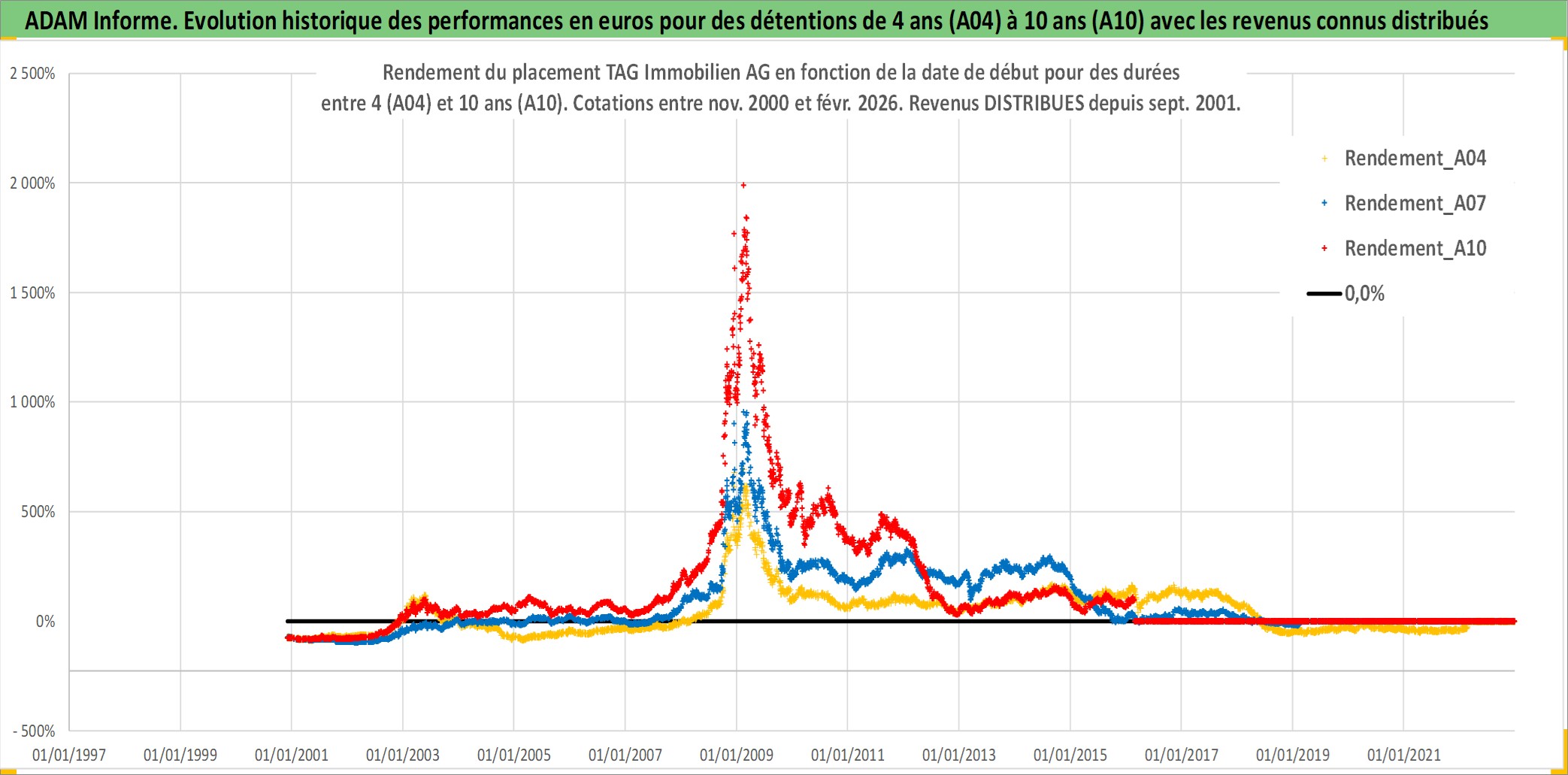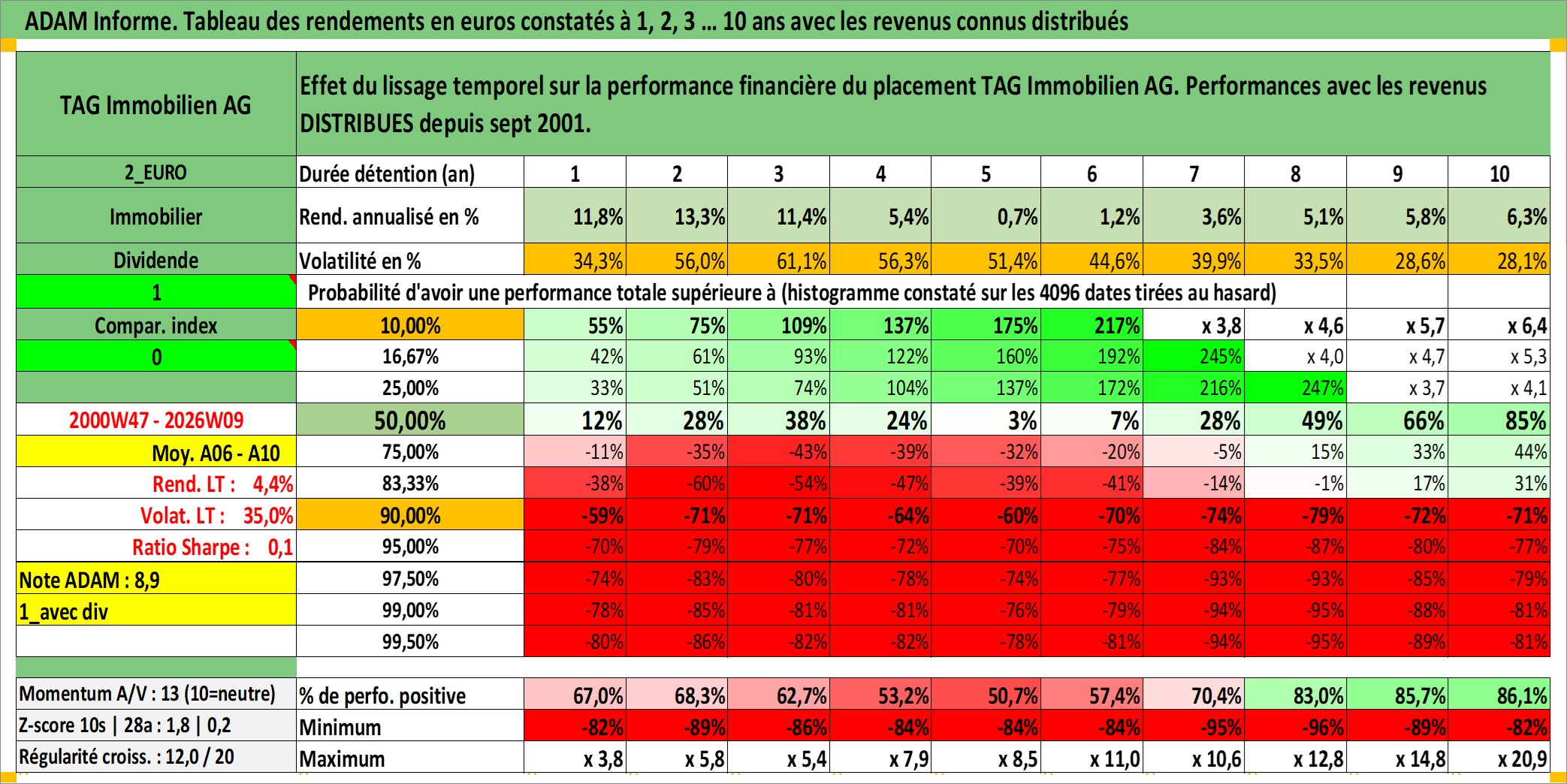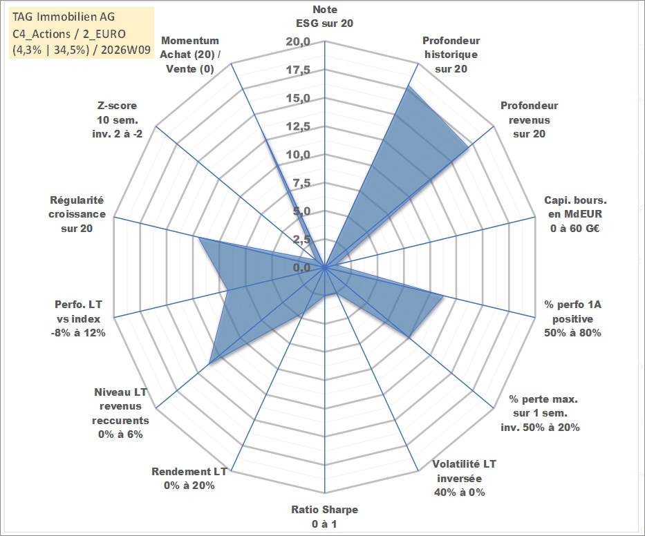 Site dédié aux investisseursPage dédiée sur site financeAnalyse des valorisations hebdomadaires de l'action TAG Immobilien AG. Cet actif est cote en EUR. Les valorisations couvrent les semaines 2000W47 a 2026W09. Les revenus de cet actif financier sont pris en compte depuis la semaine 2001W36. La note ESG de cet actif n'est pas connue.