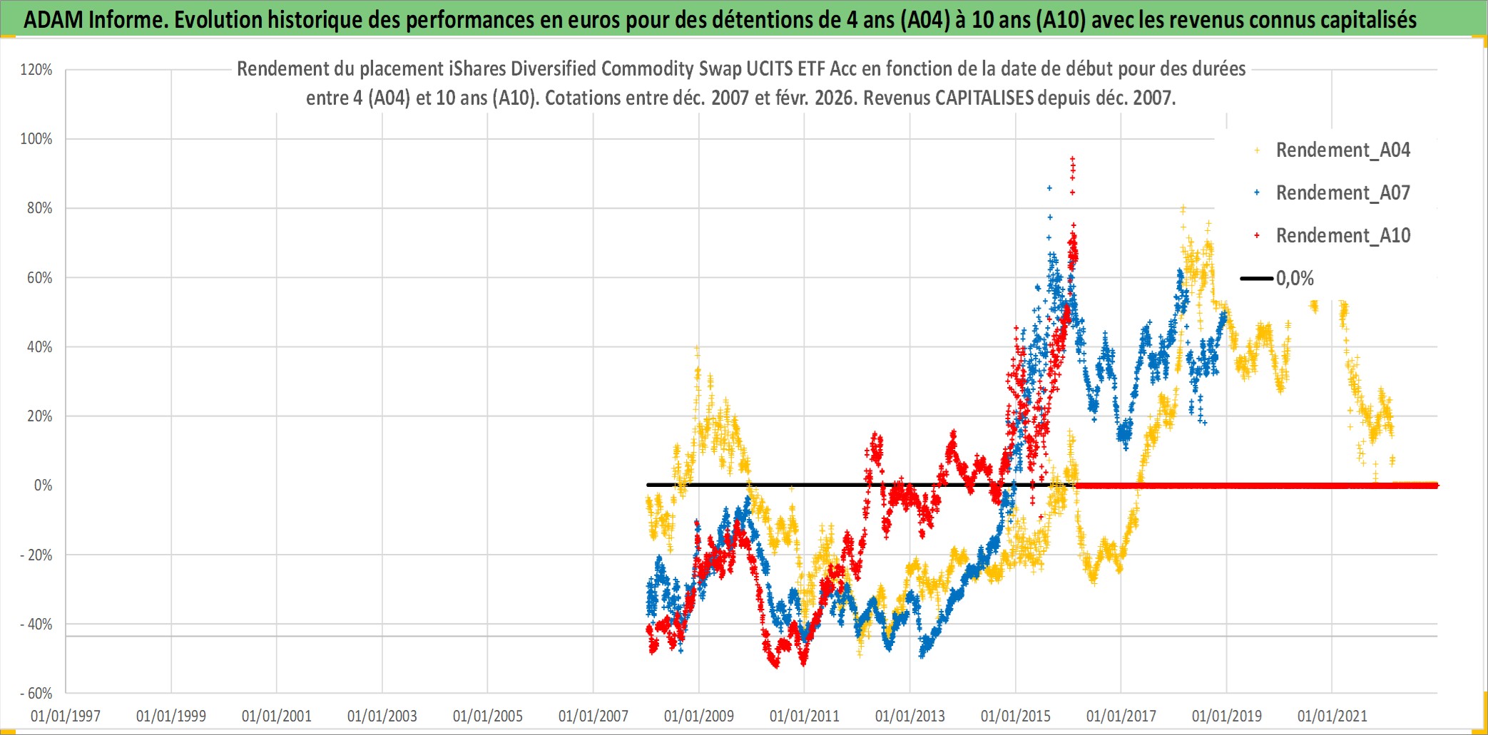 Site dédié aux investisseursPage dédiée sur site financeAnalyse des valorisations hebdomadaires du fonds iShares Diversified Commodity Swap UCITS ETF Acc. Cet actif est cote en USD. Les valorisations sont en contrevaleur EURO et couvrent les semaines 2008W01 a 2026W09. Les revenus de cet actif financier sont pris en compte depuis la semaine 2008W01. La note ESG de cet actif n'est pas connue.