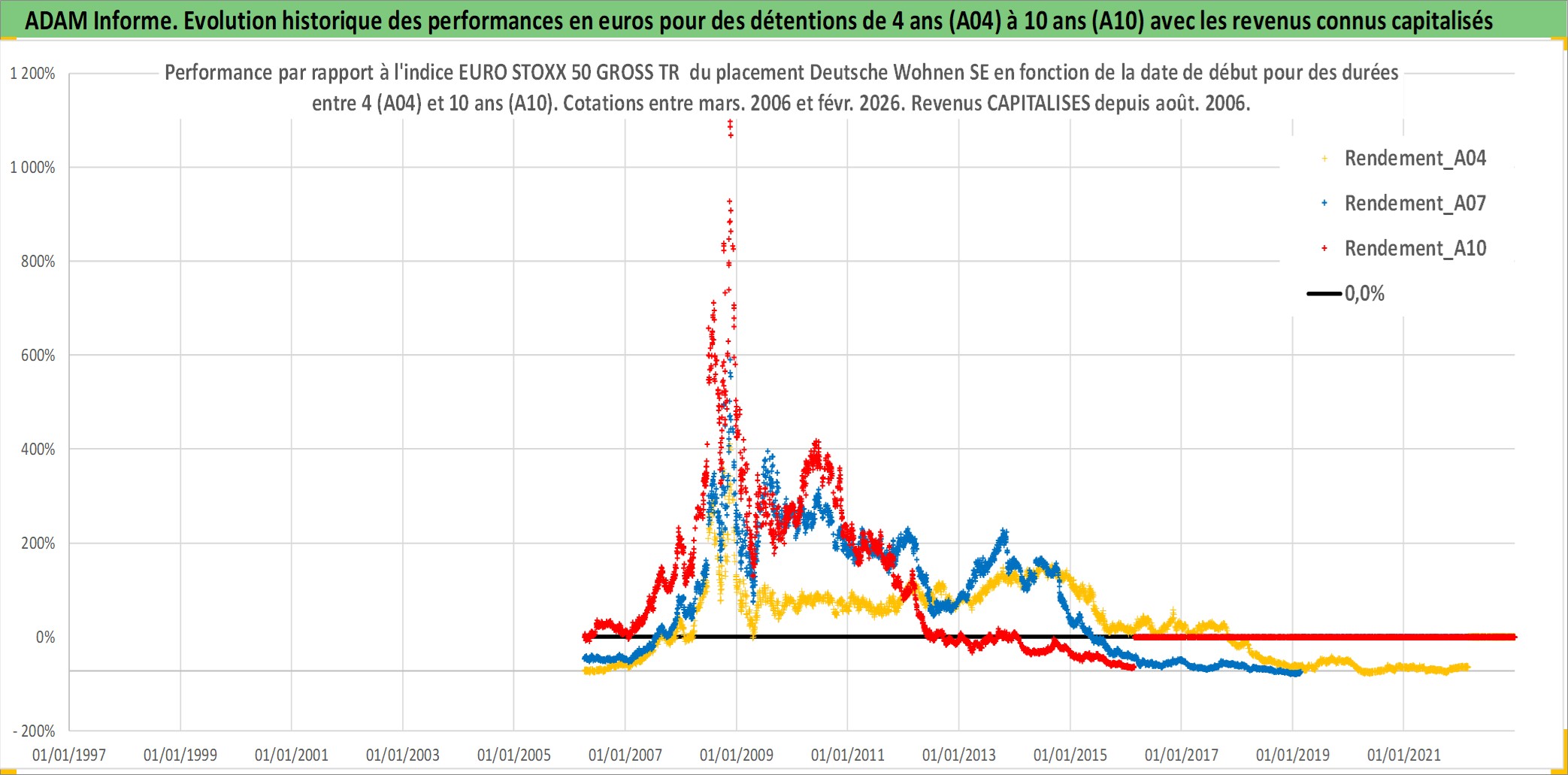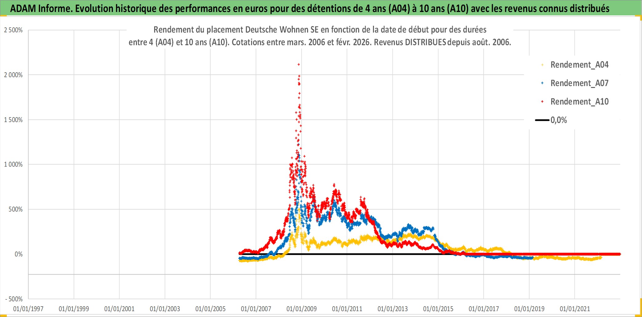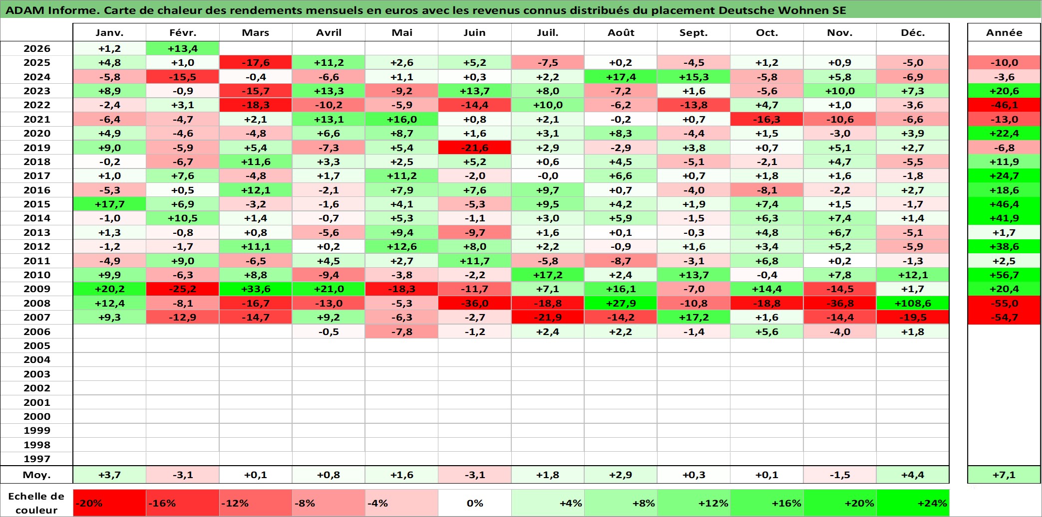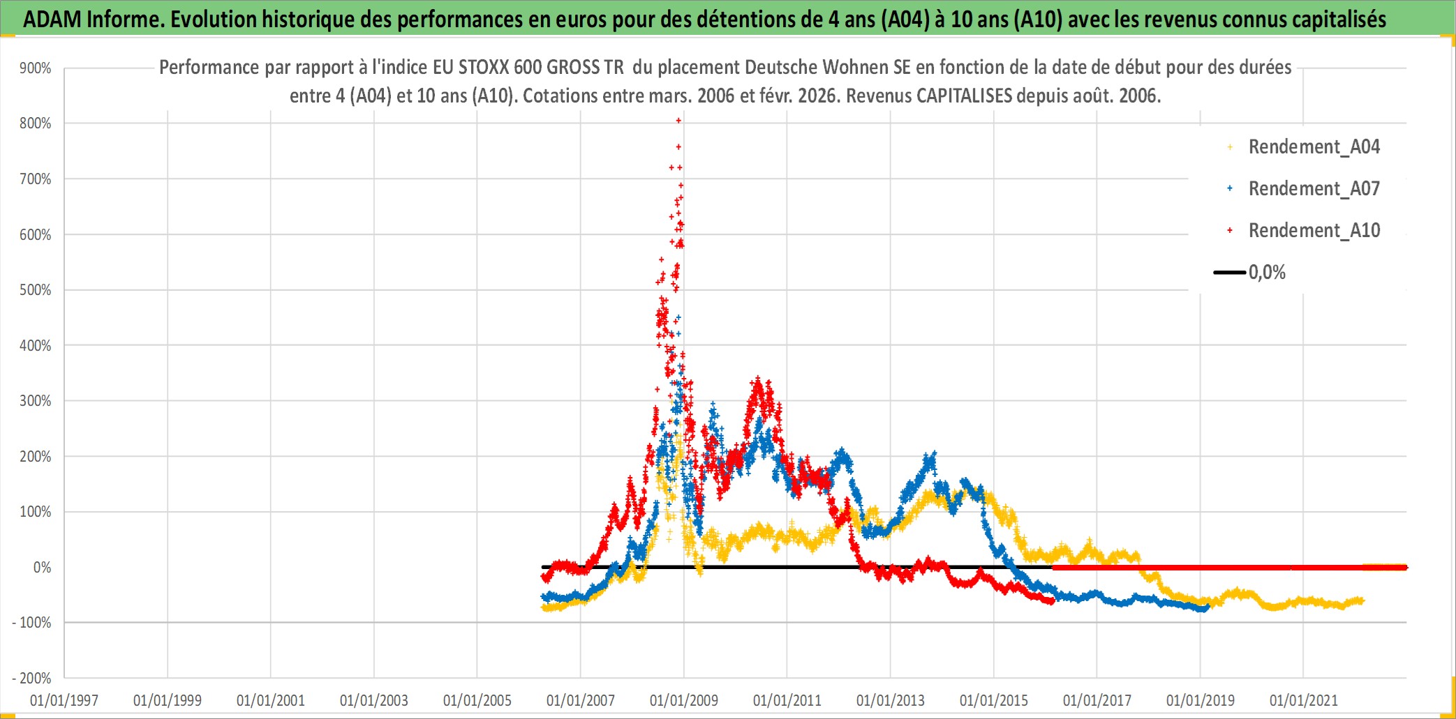 Site dédié aux investisseursPage dédiée sur site financeAnalyse des valorisations hebdomadaires de l'action Deutsche Wohnen SE. Cet actif est cote en EUR. Les valorisations couvrent les semaines 2006W13 a 2026W09. Les revenus de cet actif financier sont pris en compte depuis la semaine 2006W32. La note globale ESG de cet actif est estimee a 15.0 (apres rebasage entre 0 et 20).