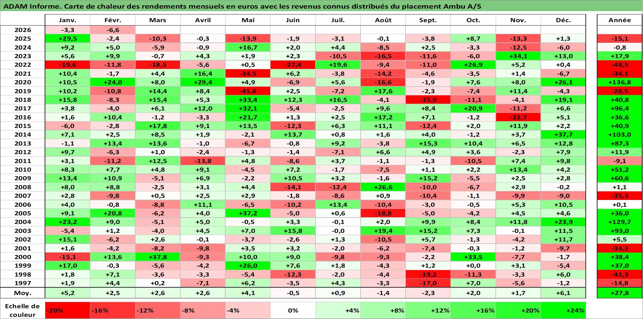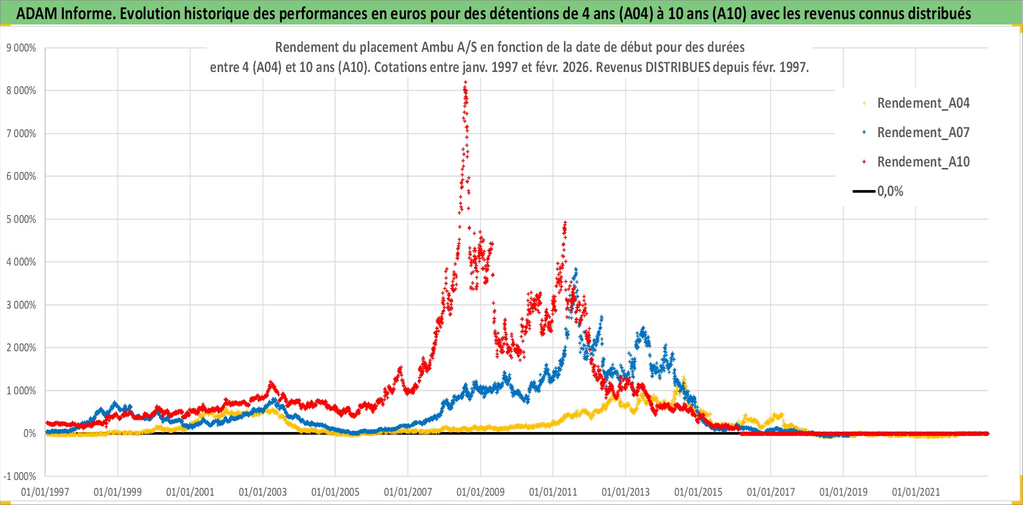 Site dédié aux investisseursPage dédiée sur site financeAnalyse des valorisations hebdomadaires de l'action Ambu A/S. Cet actif est cote en DKK. Les valorisations sont en contrevaleur EURO et couvrent les semaines 1997W01 a 2026W09. Les revenus de cet actif financier sont pris en compte depuis la semaine 1997W06. La note ESG de cet actif n'est pas connue.