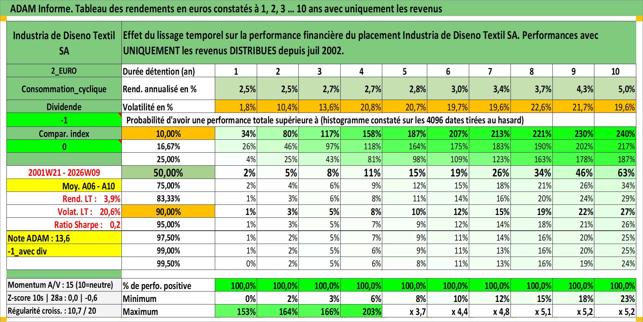 Dernière perfo 10 ans en %