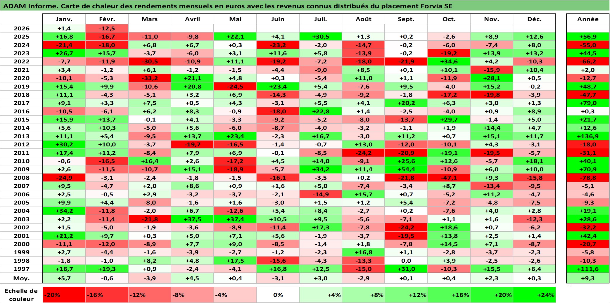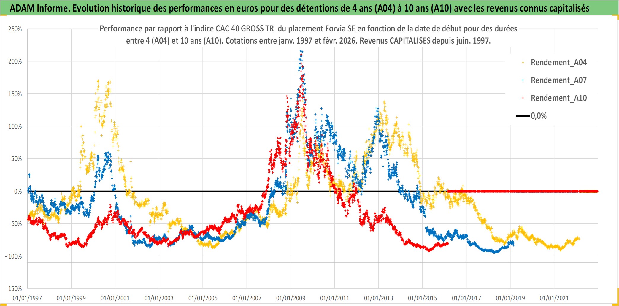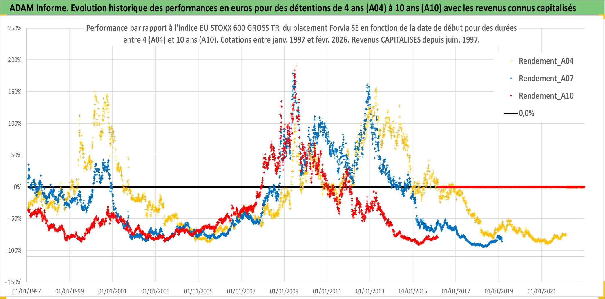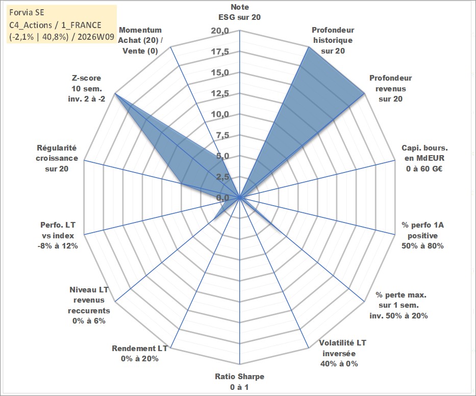 Site dédié aux investisseursPage dédiée sur site financeAnalyse des valorisations hebdomadaires de l'action Forvia SE. Cet actif est cote en EUR. Les valorisations couvrent les semaines 1997W01 a 2026W09. Les revenus de cet actif financier sont pris en compte depuis la semaine 1997W26. La note ESG de cet actif n'est pas connue.