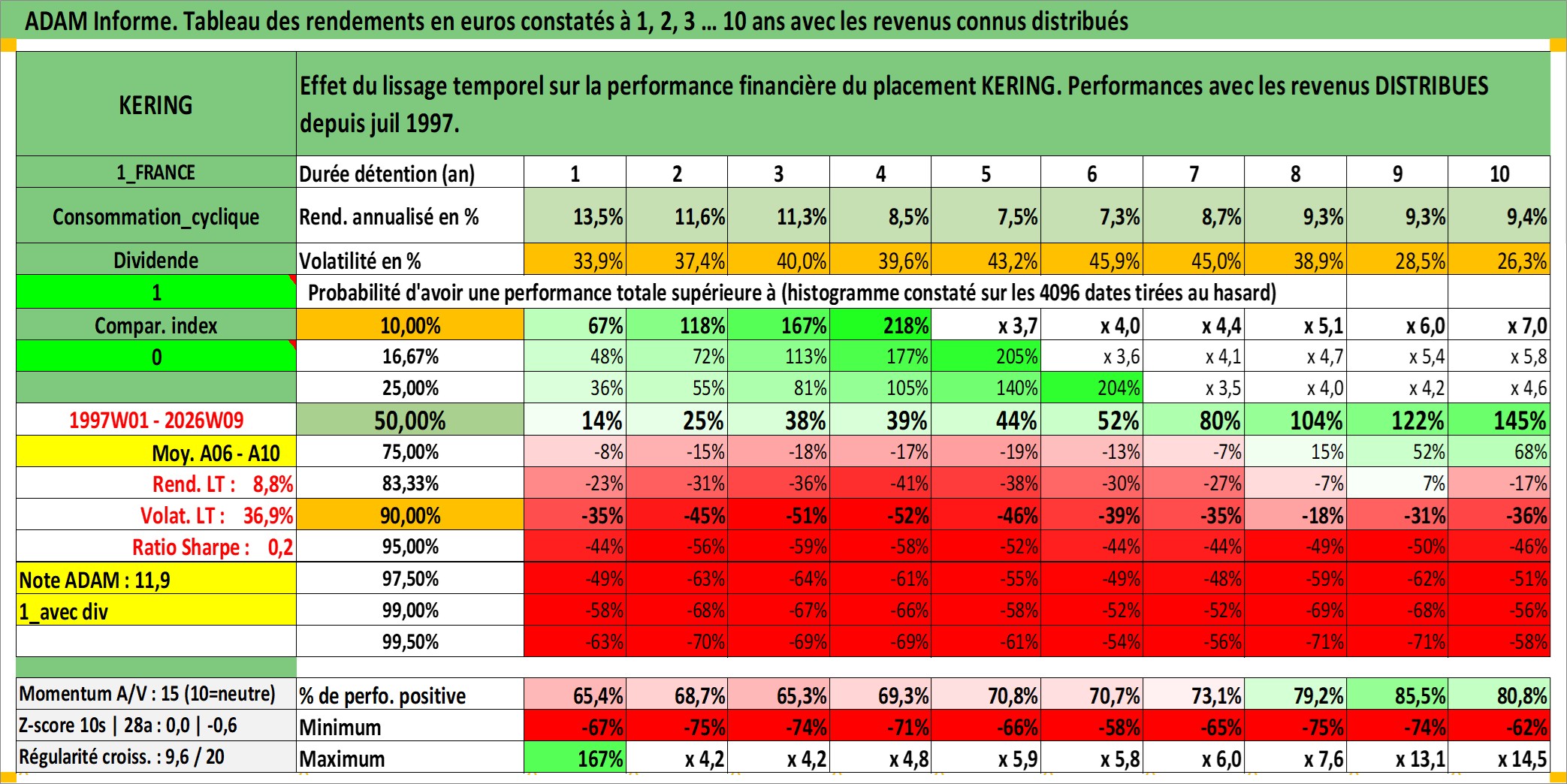 Dernière perfo 10 ans en %
