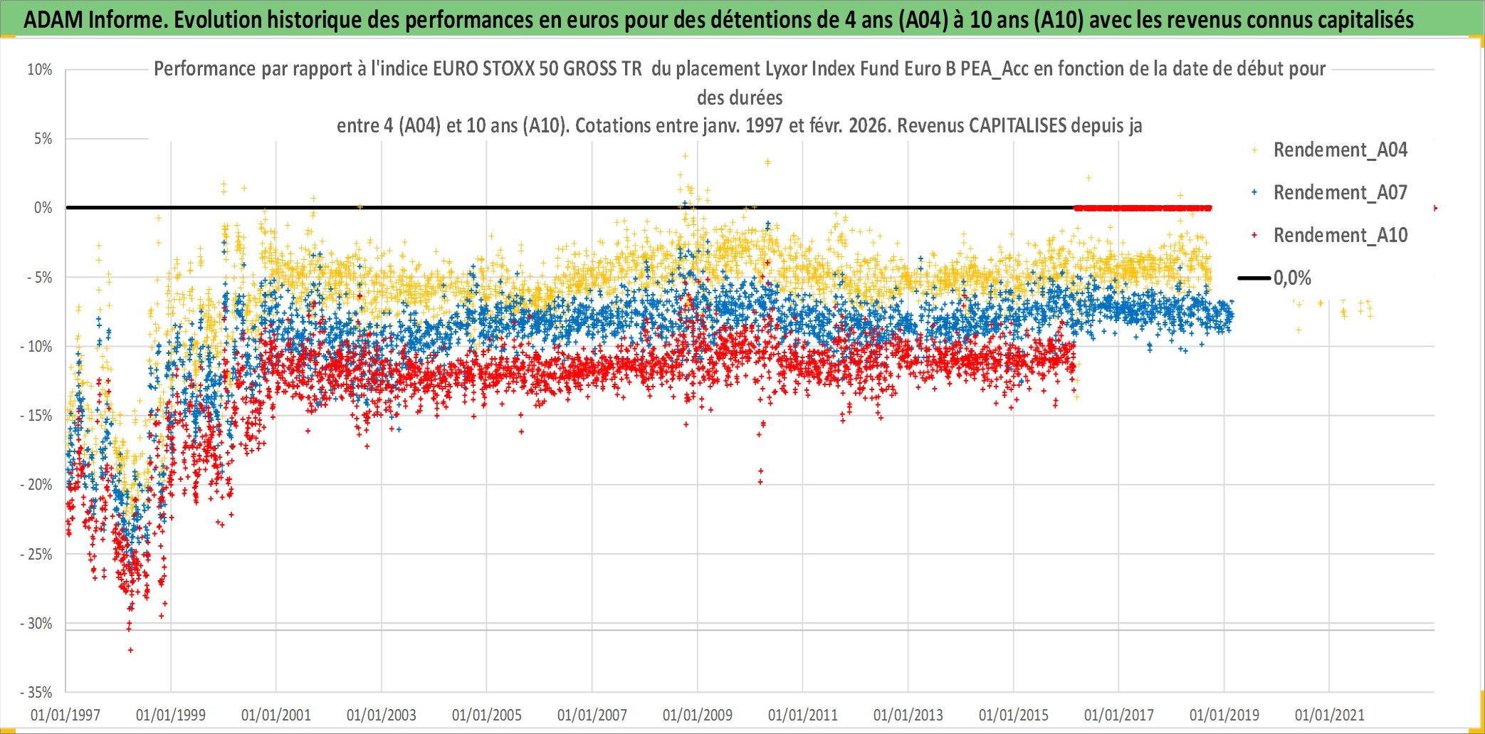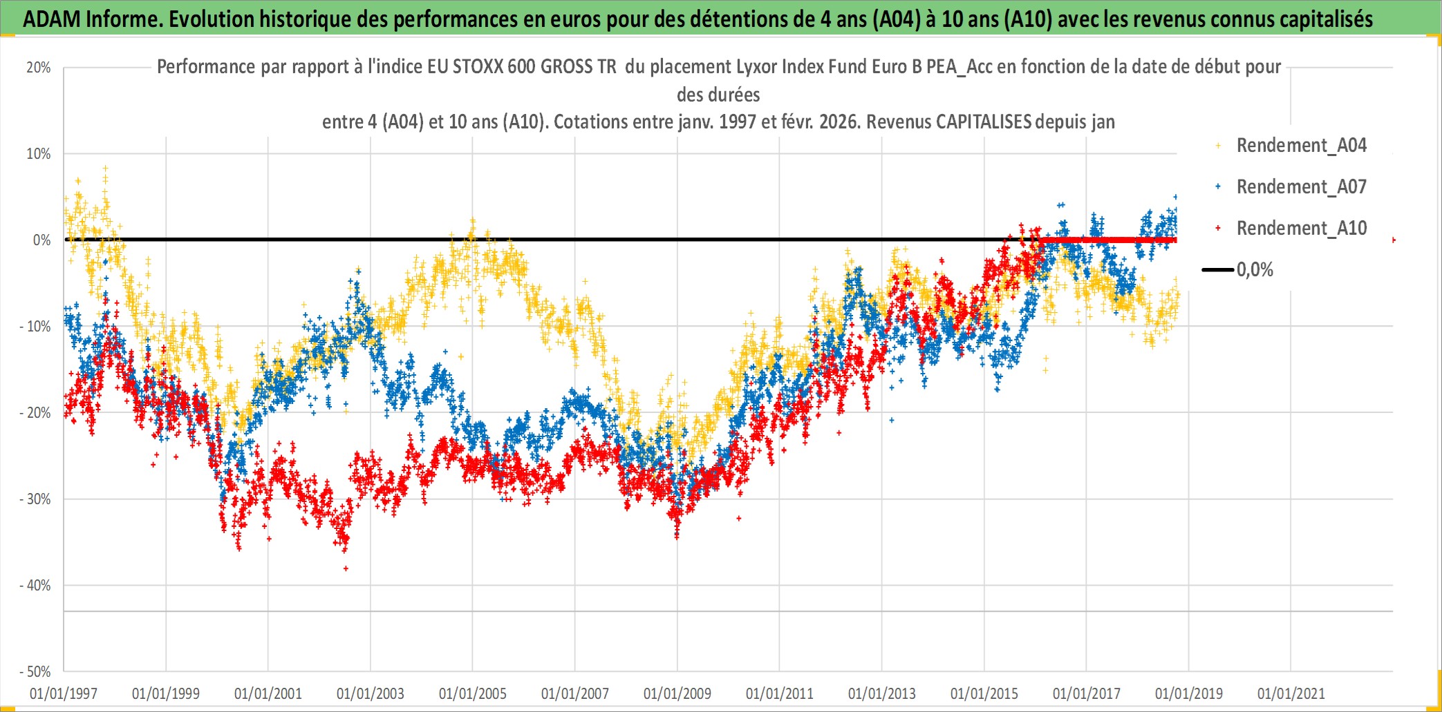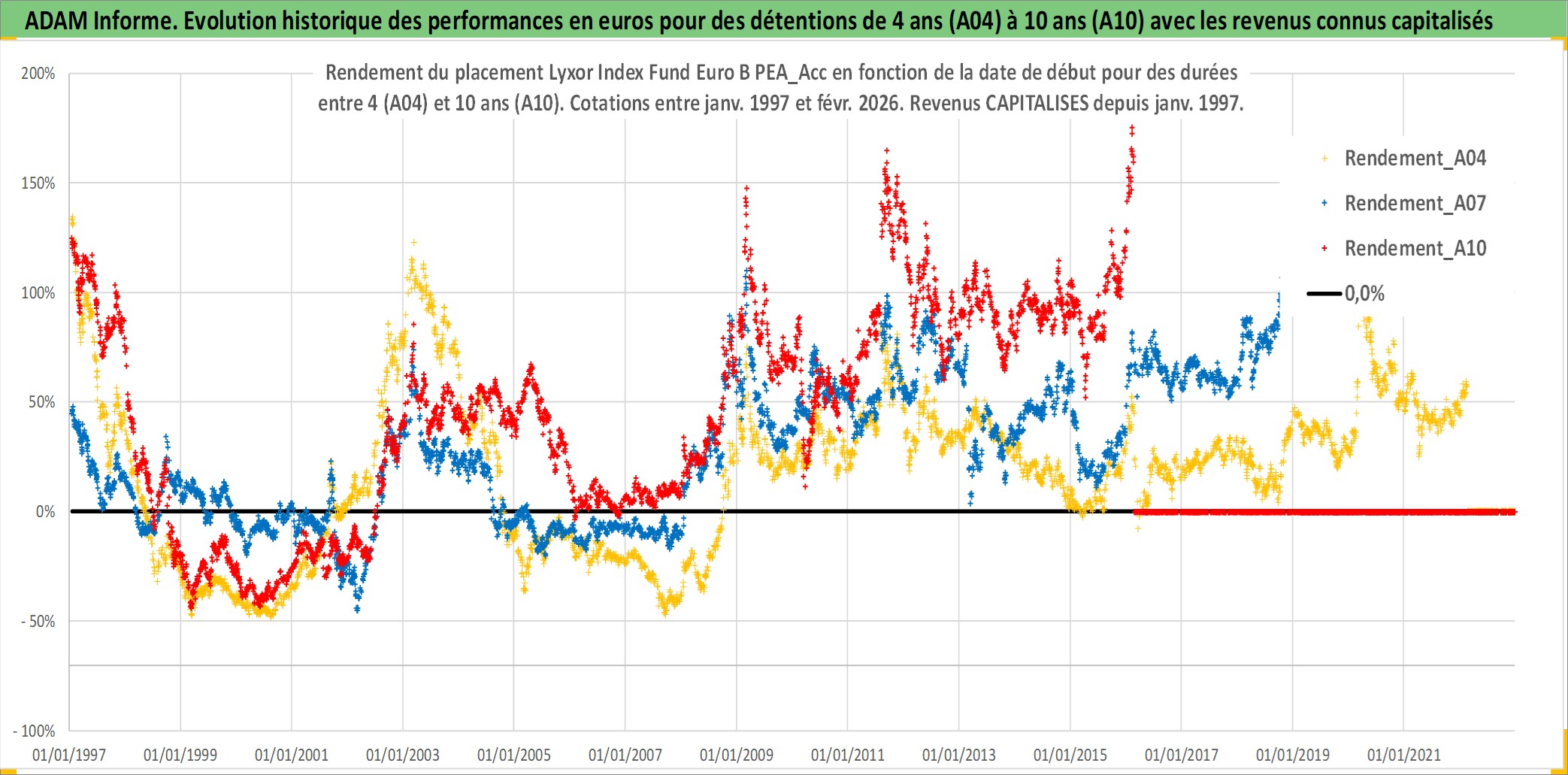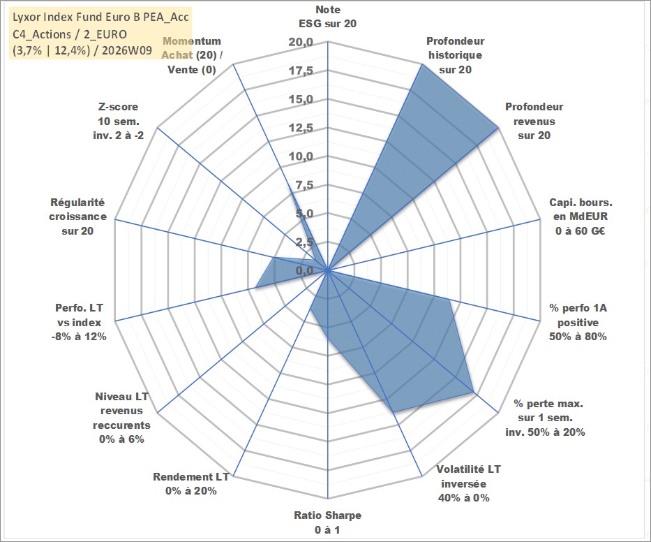 Site dédié aux investisseursPage dédiée sur site financeAnalyse des valorisations hebdomadaires du fonds Lyxor Index Fund Euro B PEA_Acc. Cet actif est cote en EUR. Les valorisations couvrent les semaines 1997W01 a 2026W09. Les revenus de cet actif financier sont pris en compte depuis la semaine 1997W01. La note ESG de cet actif n'est pas connue.