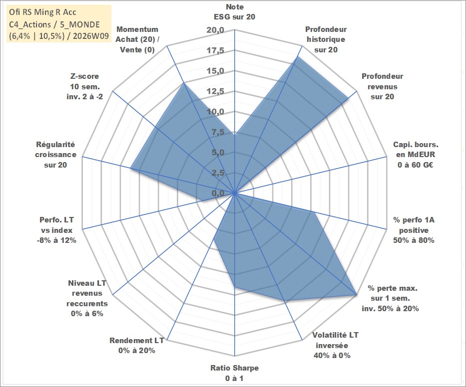 Site dédié aux investisseursPage dédiée sur site financeAnalyse des valorisations hebdomadaires du fonds Ofi RS Ming R Acc. Cet actif est cote en EUR. Les valorisations couvrent les semaines 2000W33 a 2026W09. Les revenus de cet actif financier sont pris en compte depuis la semaine 2000W33. La note globale ESG de cet actif est estimee a 7.0 (apres rebasage entre 0 et 20).