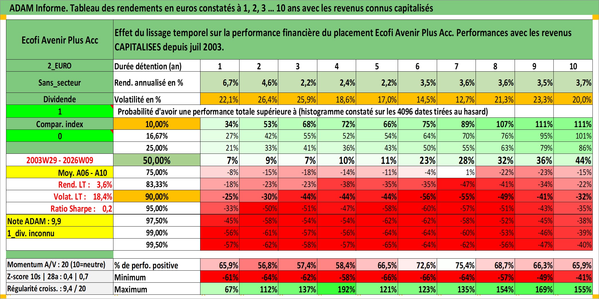 Dernière perfo 10 ans en %