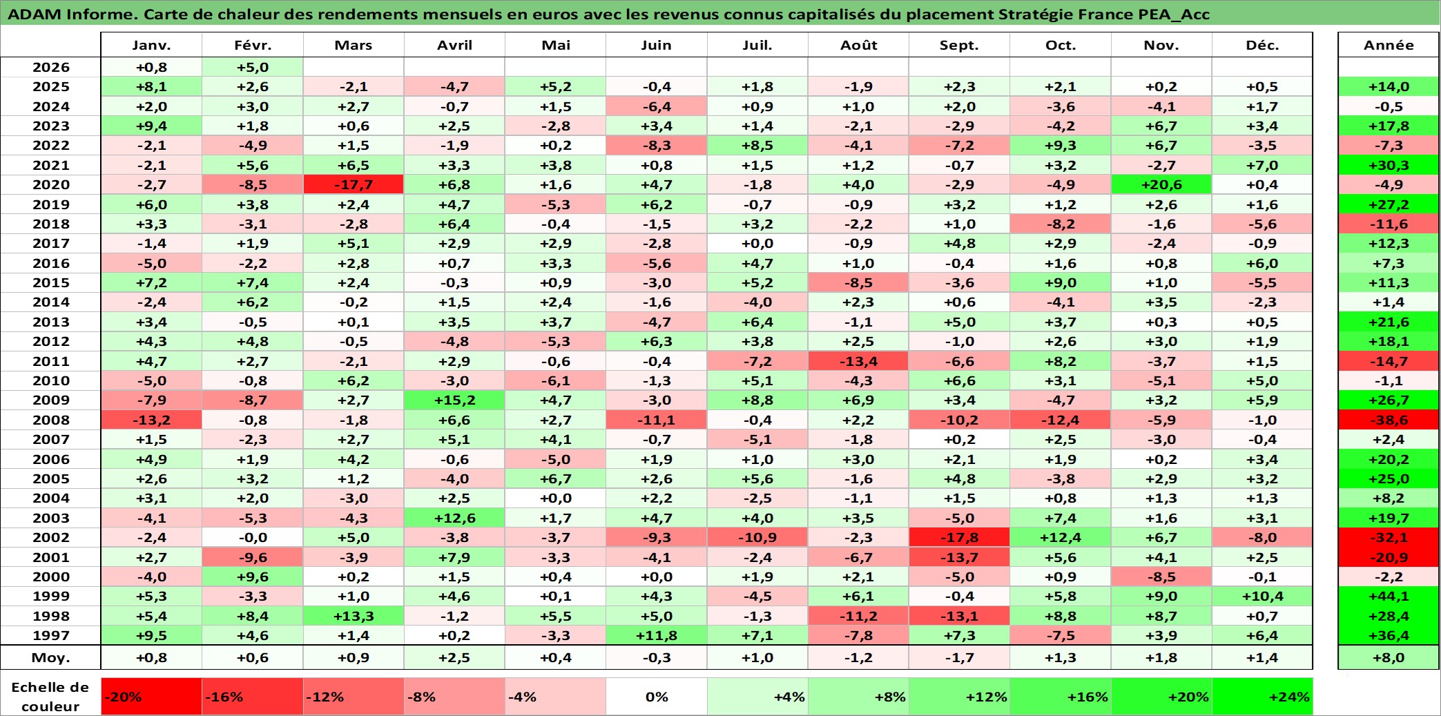 Dernière perfo 1 an en %