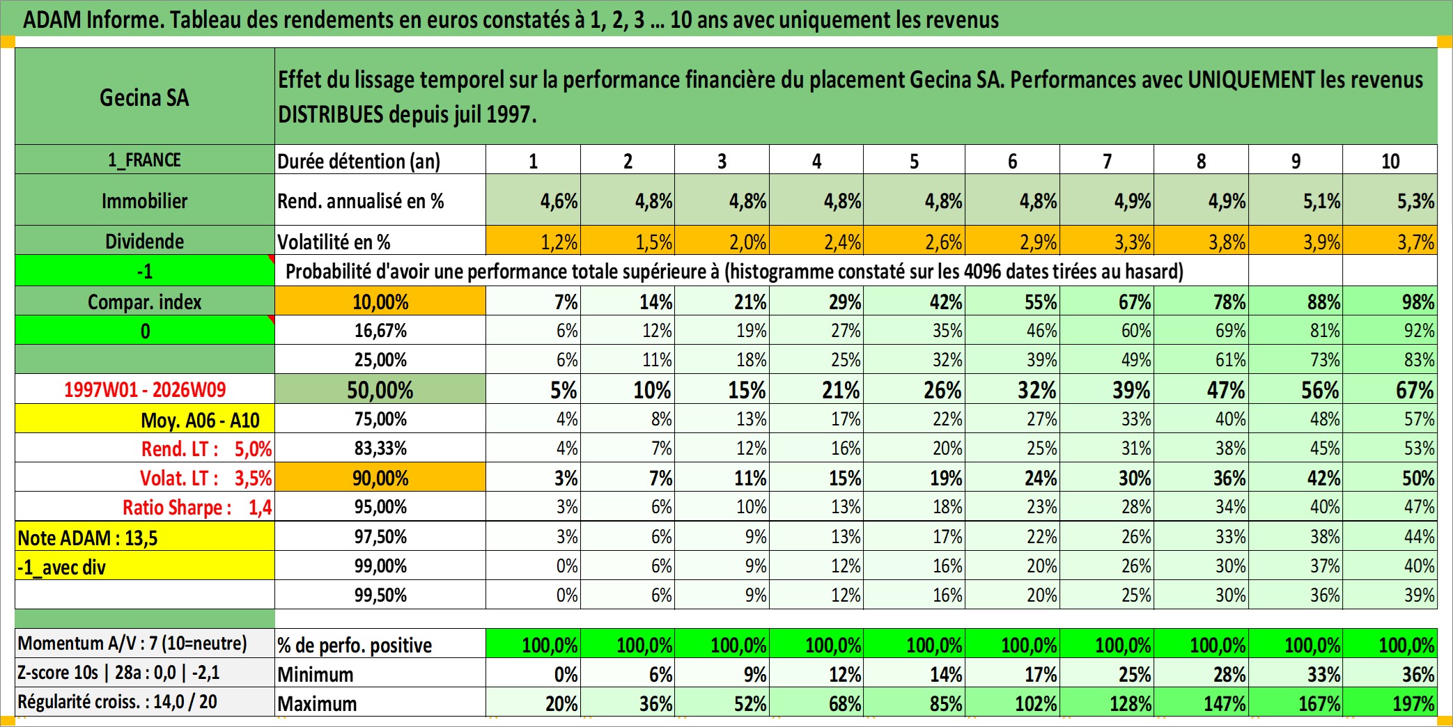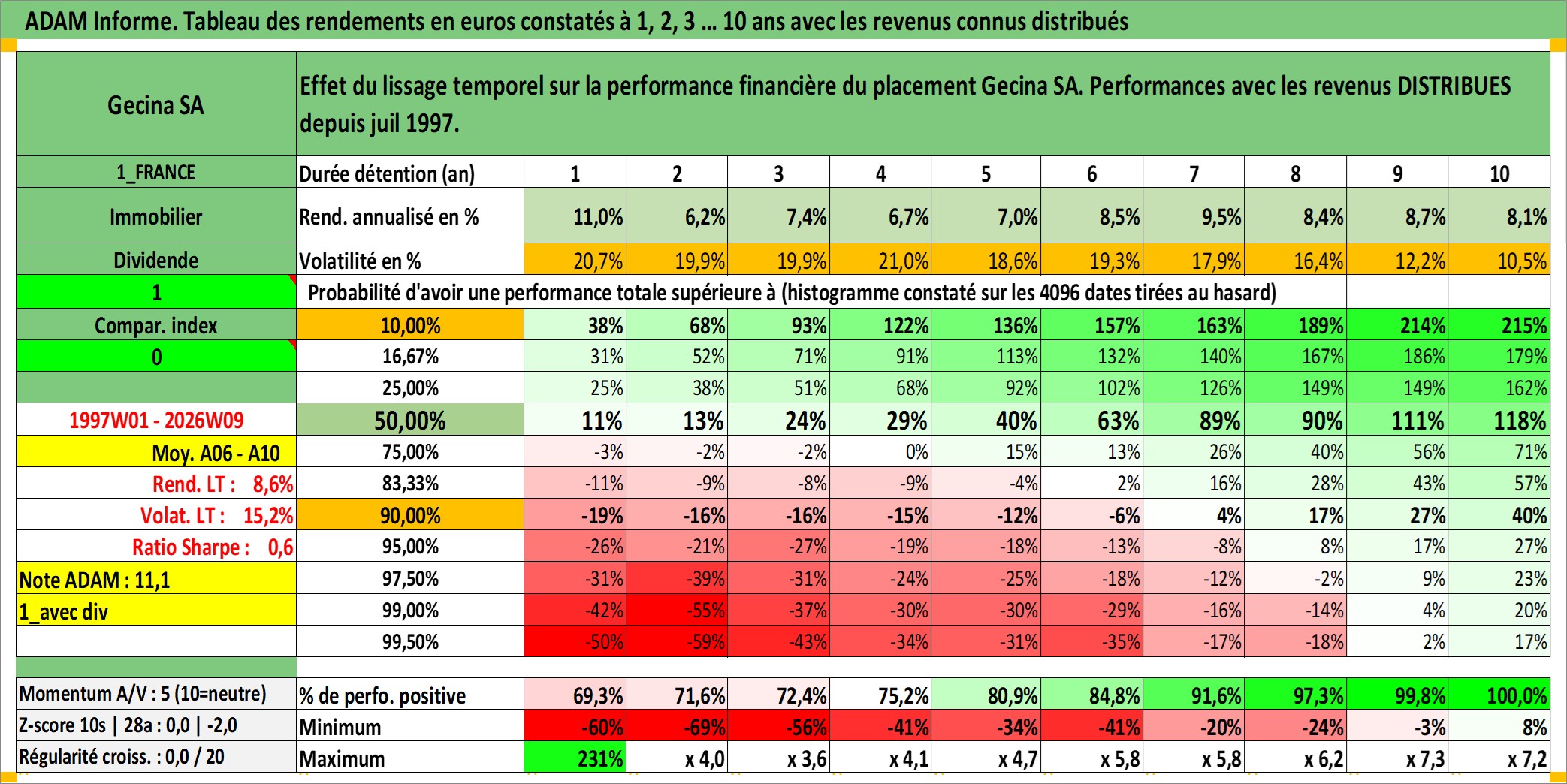Dernière perfo 10 ans en %