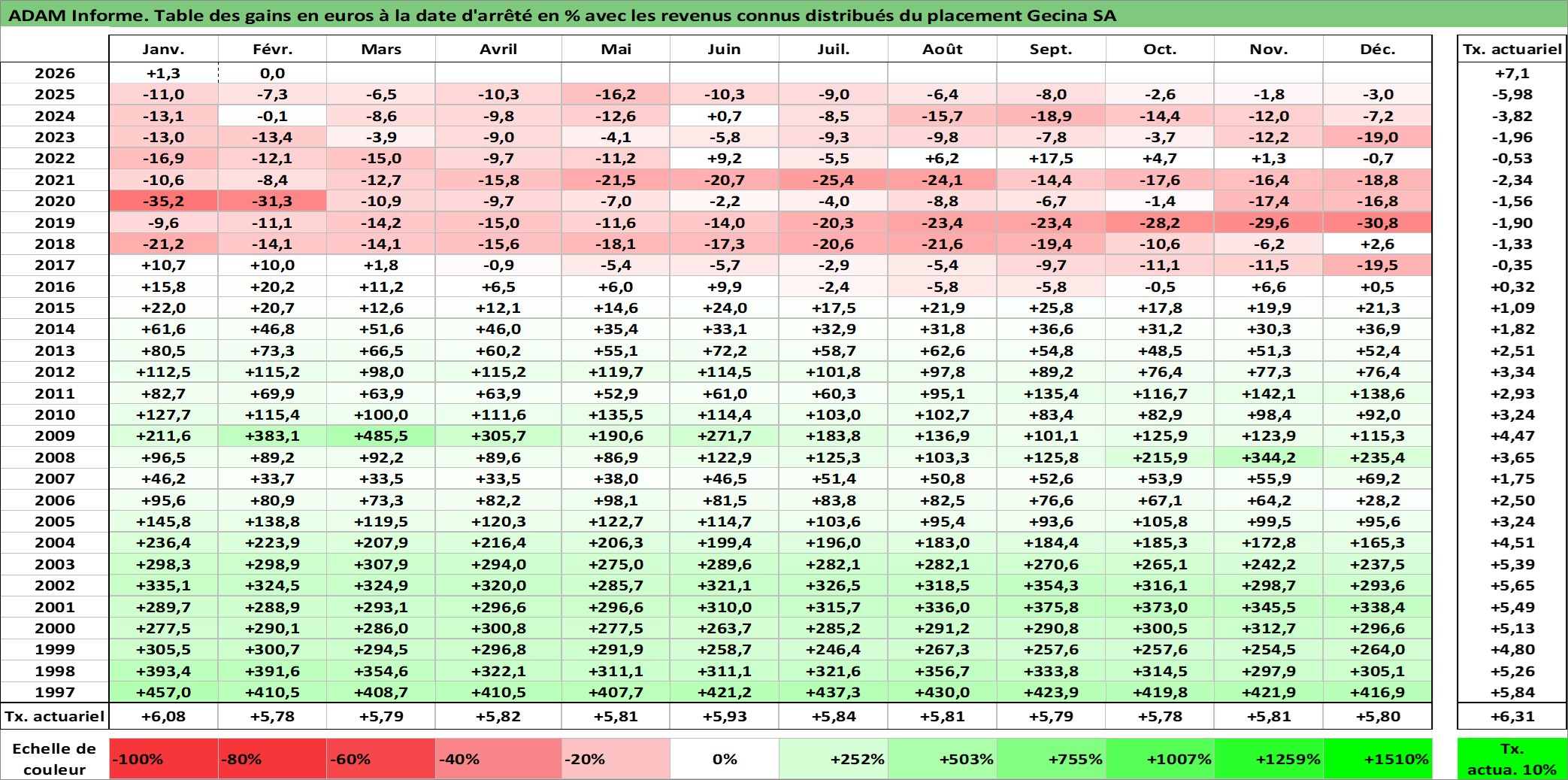 Dernière perfo 1 an en %