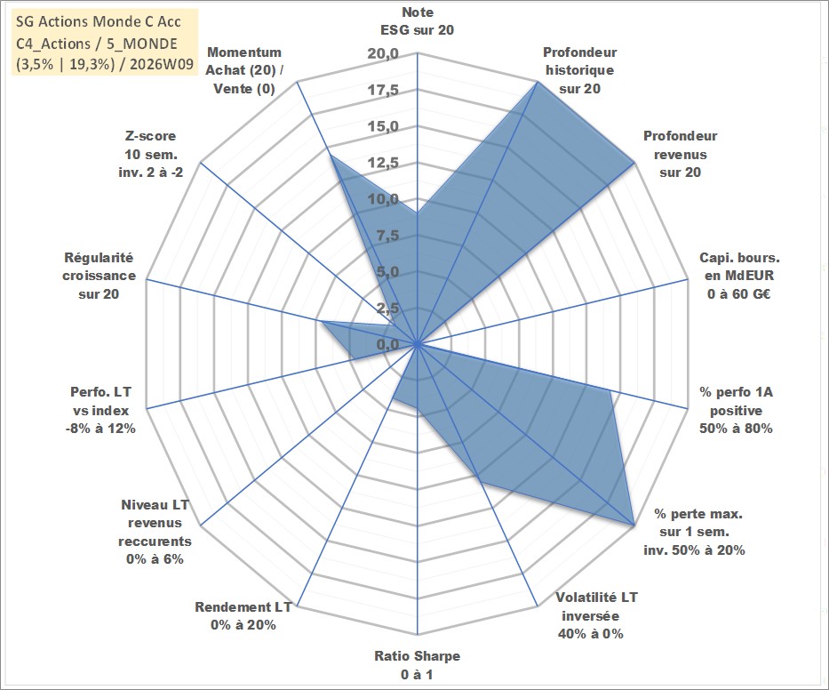 Site dédié aux investisseursPage dédiée sur site financeAnalyse des valorisations hebdomadaires du fonds SG Actions Monde C Acc. Cet actif est cote en EUR. Les valorisations couvrent les semaines 1997W01 a 2026W09. Les revenus de cet actif financier sont pris en compte depuis la semaine 1997W01. La note globale ESG de cet actif est estimee a 9.0 (apres rebasage entre 0 et 20).