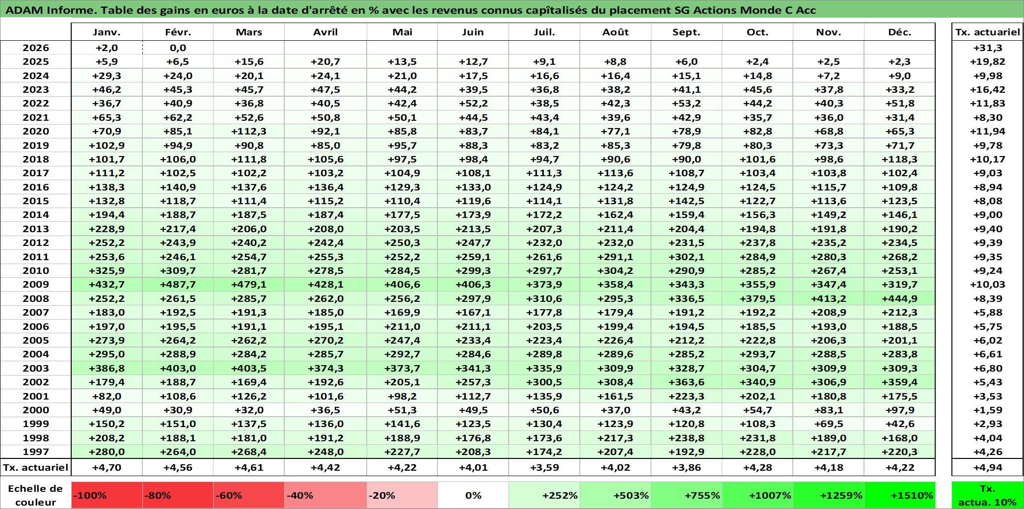 Dernière perfo 1 an en %