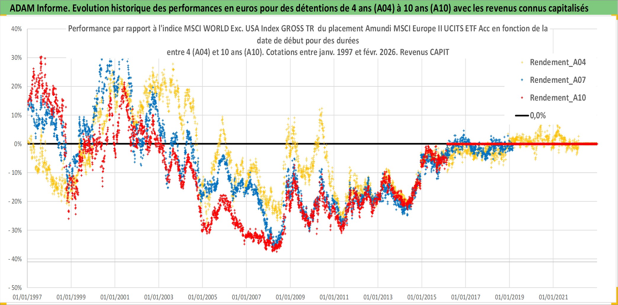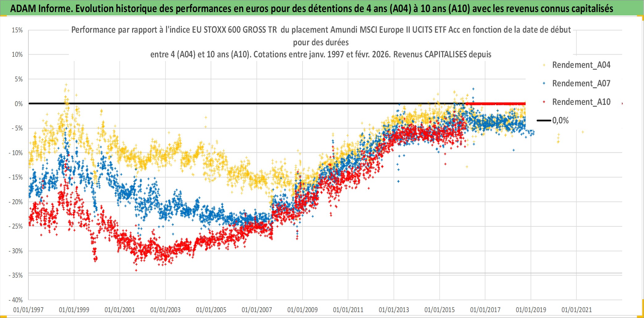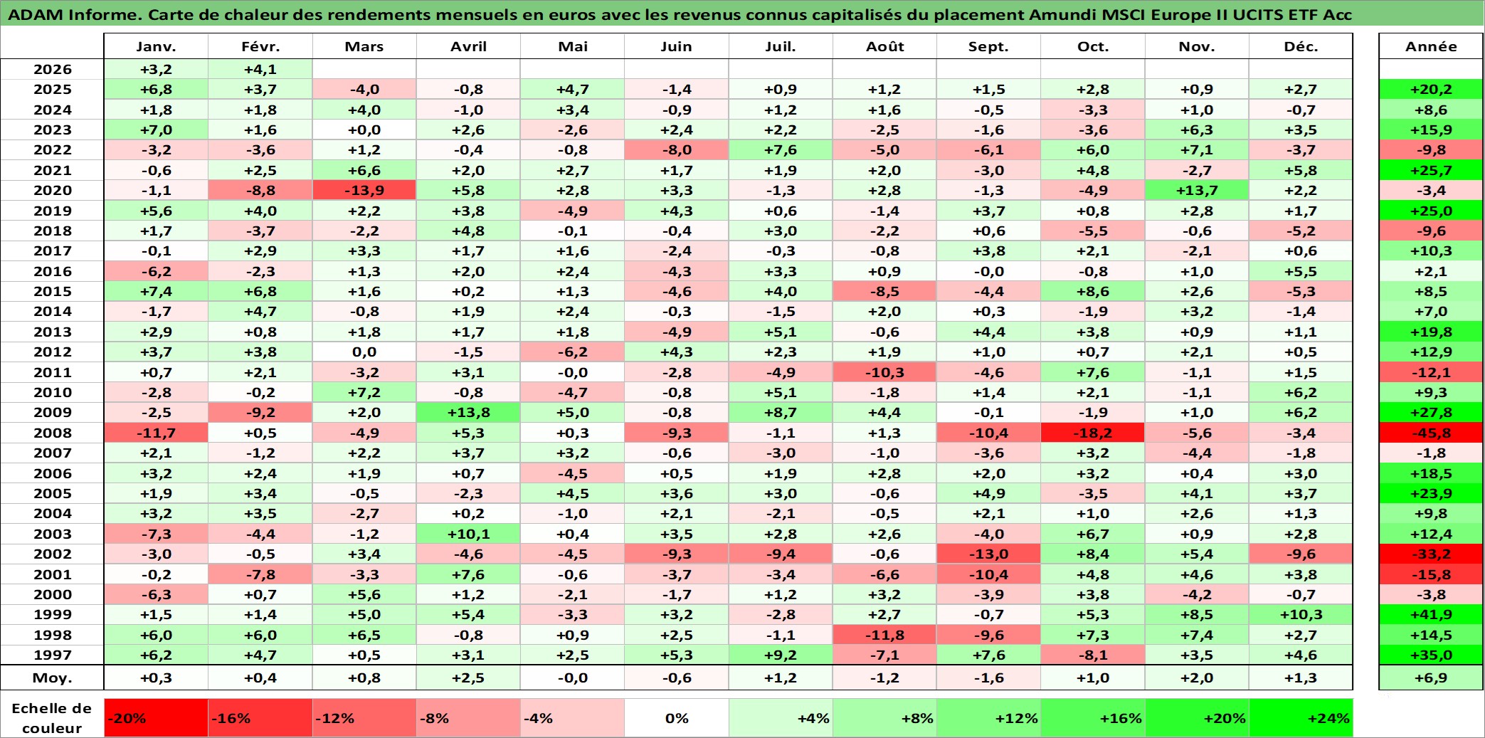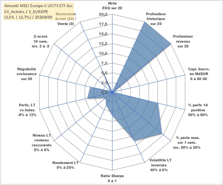 Site dédié aux investisseursPage dédiée sur site financeAnalyse des valorisations hebdomadaires du fonds Amundi MSCI Europe II UCITS ETF Acc. Cet actif est cote en EUR. Les valorisations couvrent les semaines 1997W01 a 2026W09. Les revenus de cet actif financier sont pris en compte depuis la semaine 1997W01. La note ESG de cet actif n'est pas connue.