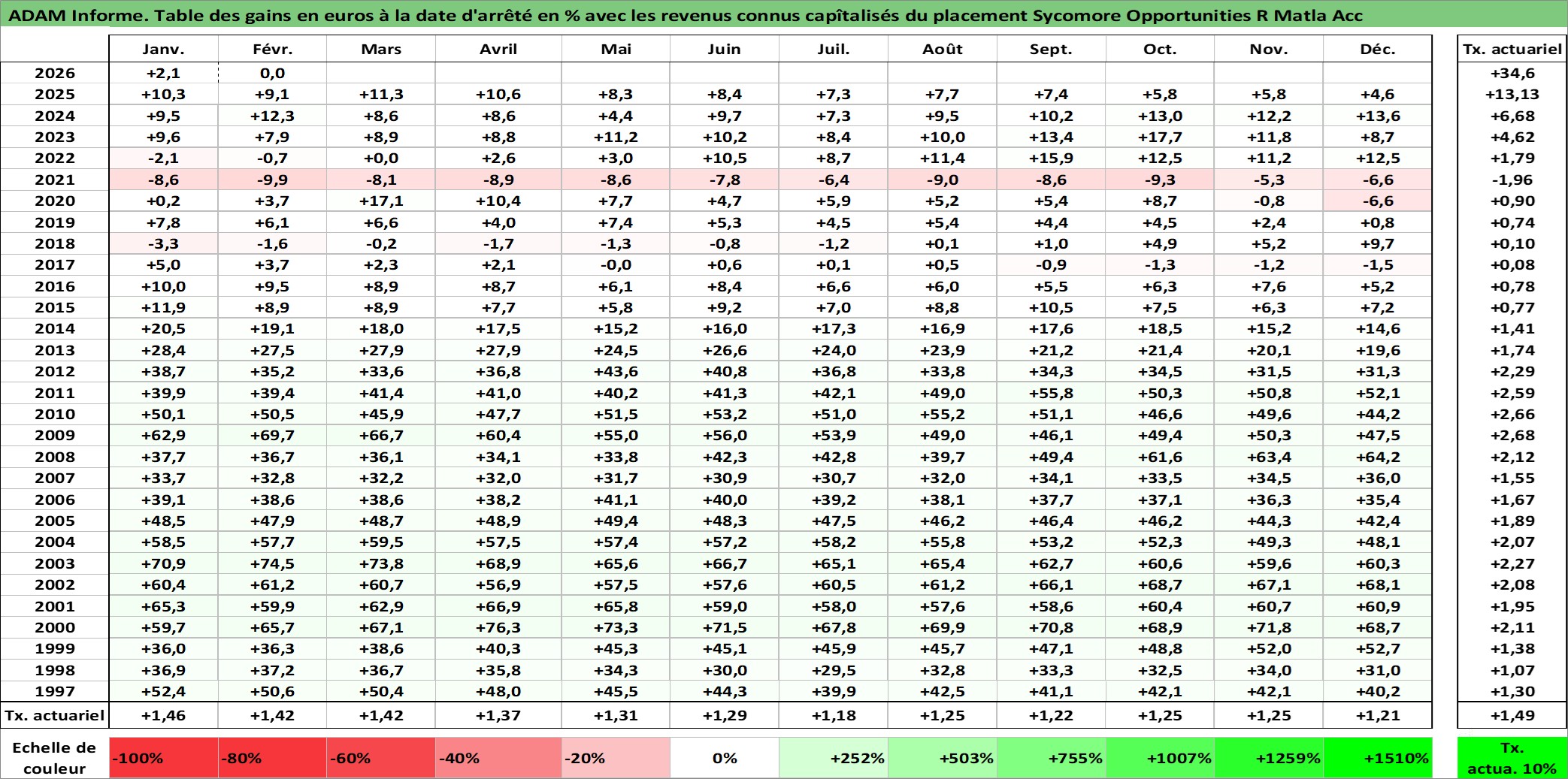 Dernière perfo 10 ans en %