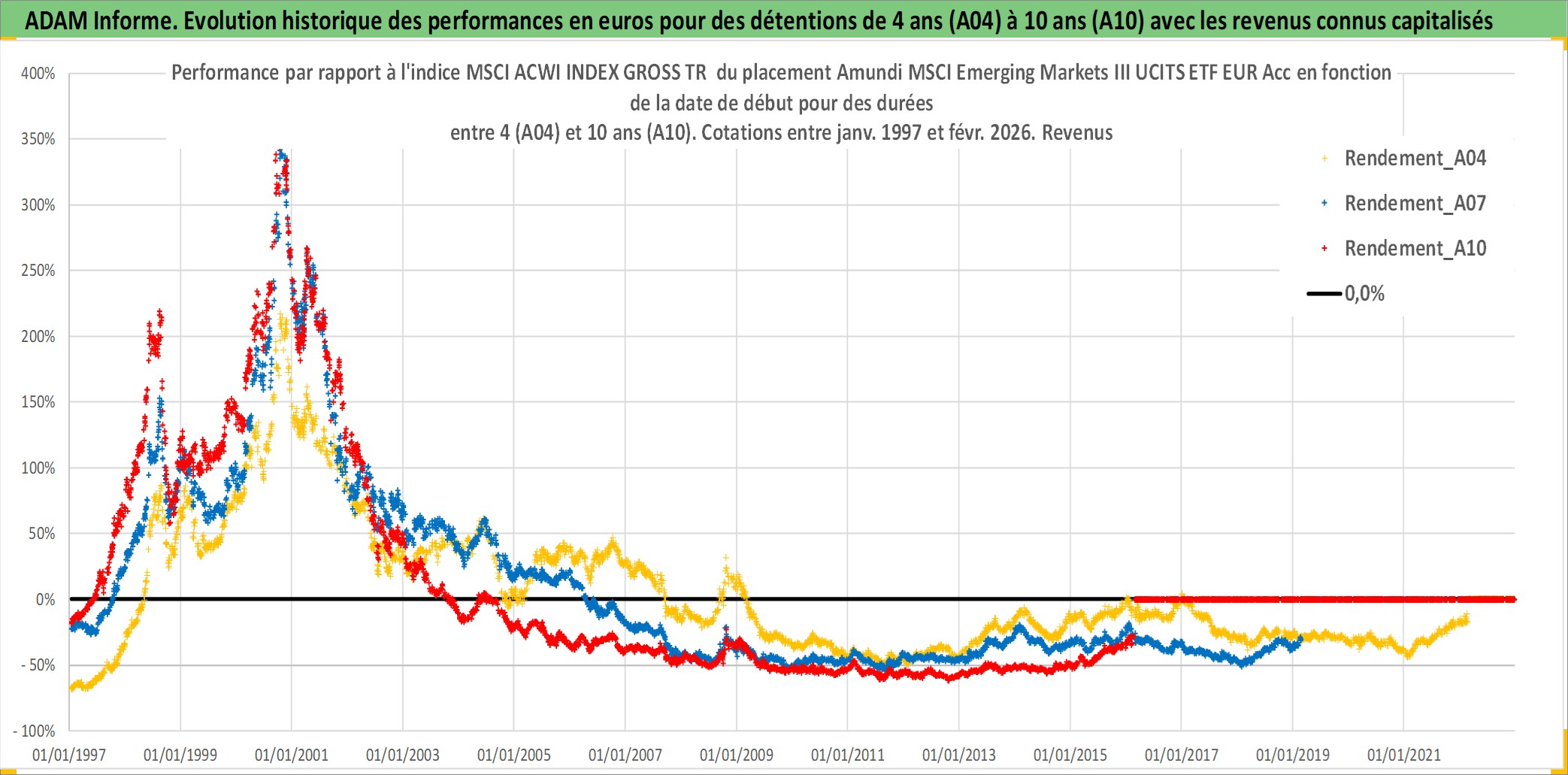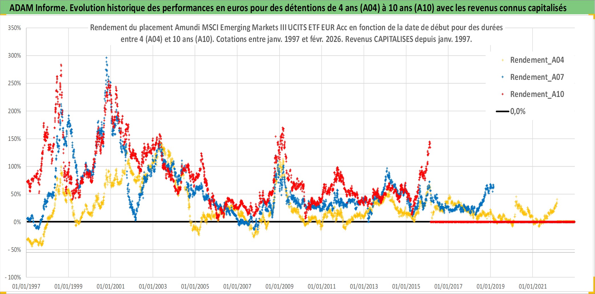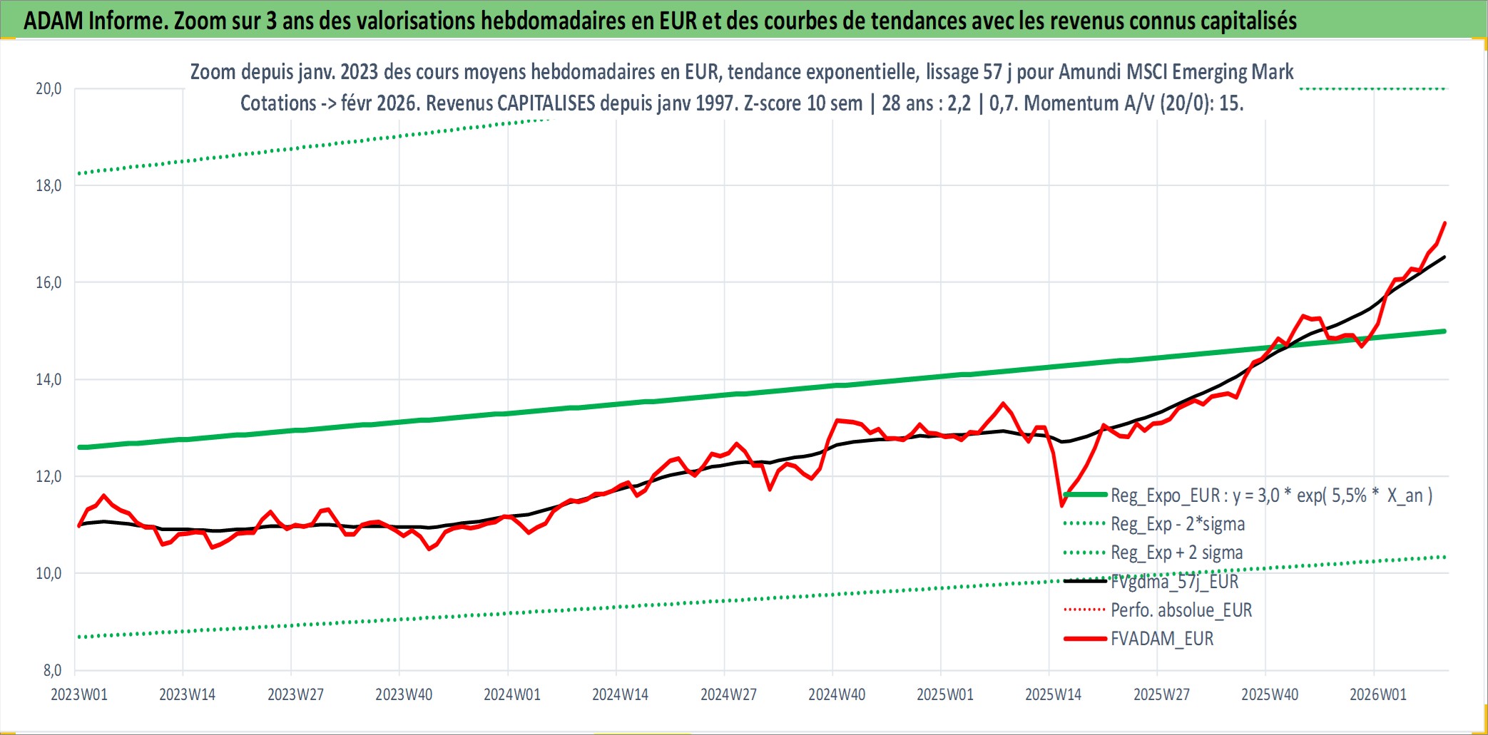 Site dédié aux investisseursPage dédiée sur site financeAnalyse des valorisations hebdomadaires du fonds Amundi MSCI Emerging Markets III UCITS ETF EUR Acc. Cet actif est cote en EUR. Les valorisations couvrent les semaines 1997W01 a 2026W09. Les revenus de cet actif financier sont pris en compte depuis la semaine 1997W01. La note ESG de cet actif n'est pas connue.
