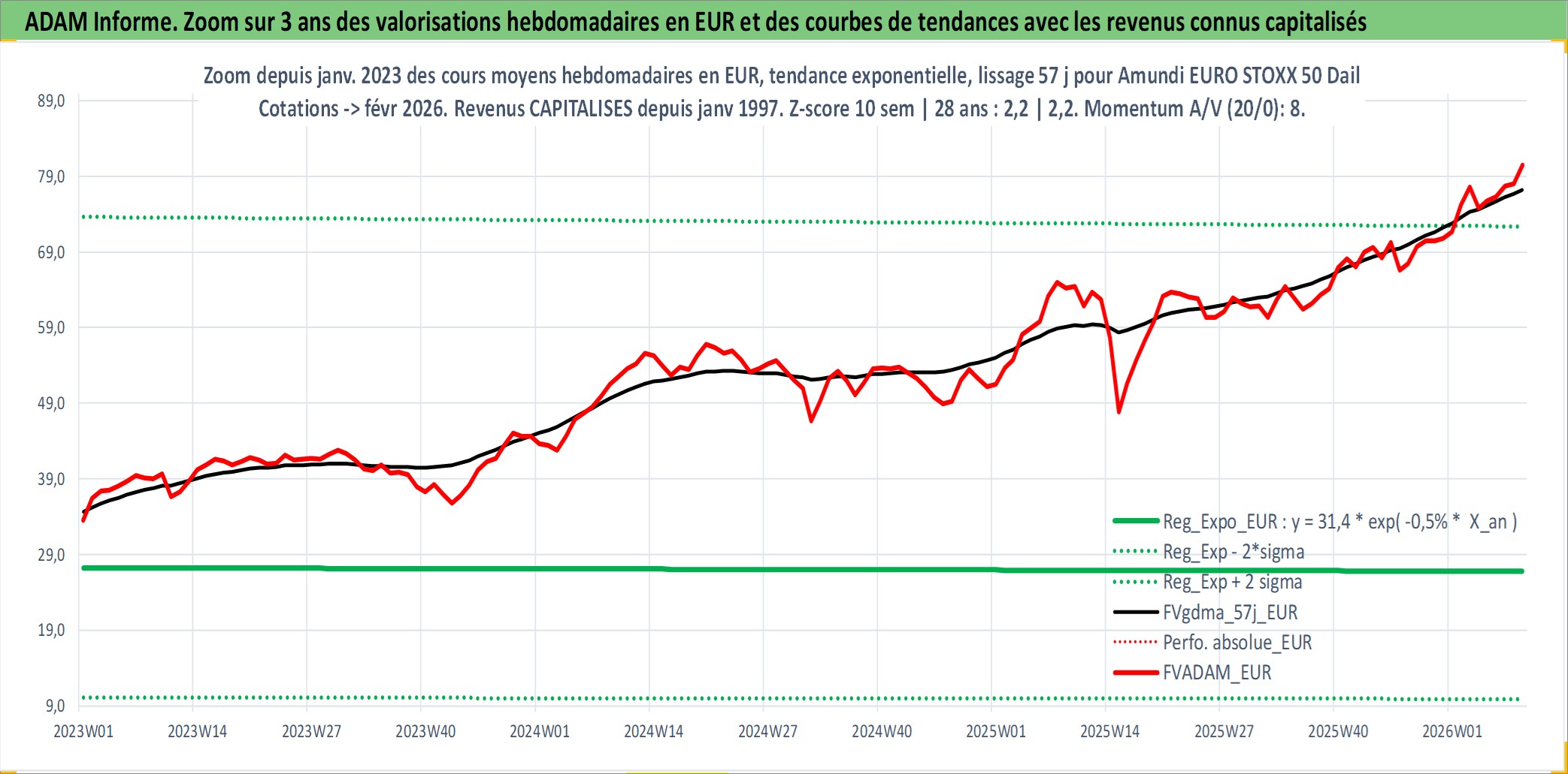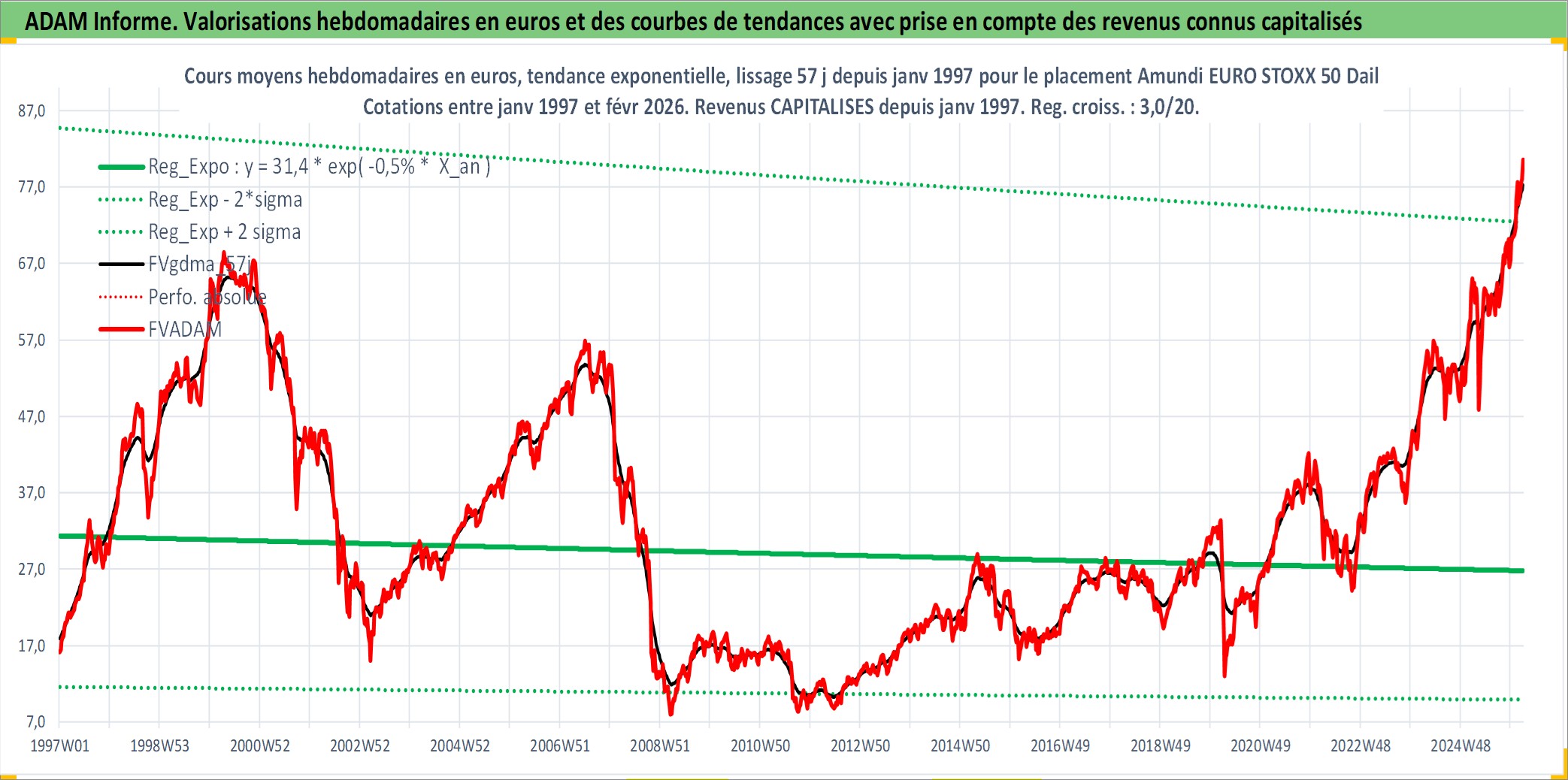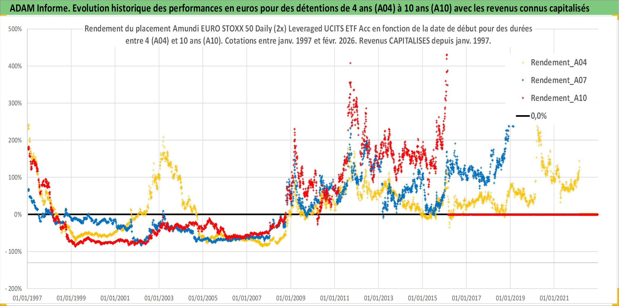Site dédié aux investisseursPage dédiée sur site financeAnalyse des valorisations hebdomadaires du fonds Amundi EURO STOXX 50 Daily (2x) Leveraged UCITS ETF Acc. Cet actif est cote en EUR. Les valorisations couvrent les semaines 1997W01 a 2026W09. Les revenus de cet actif financier sont pris en compte depuis la semaine 1997W01. La note ESG de cet actif n'est pas connue.