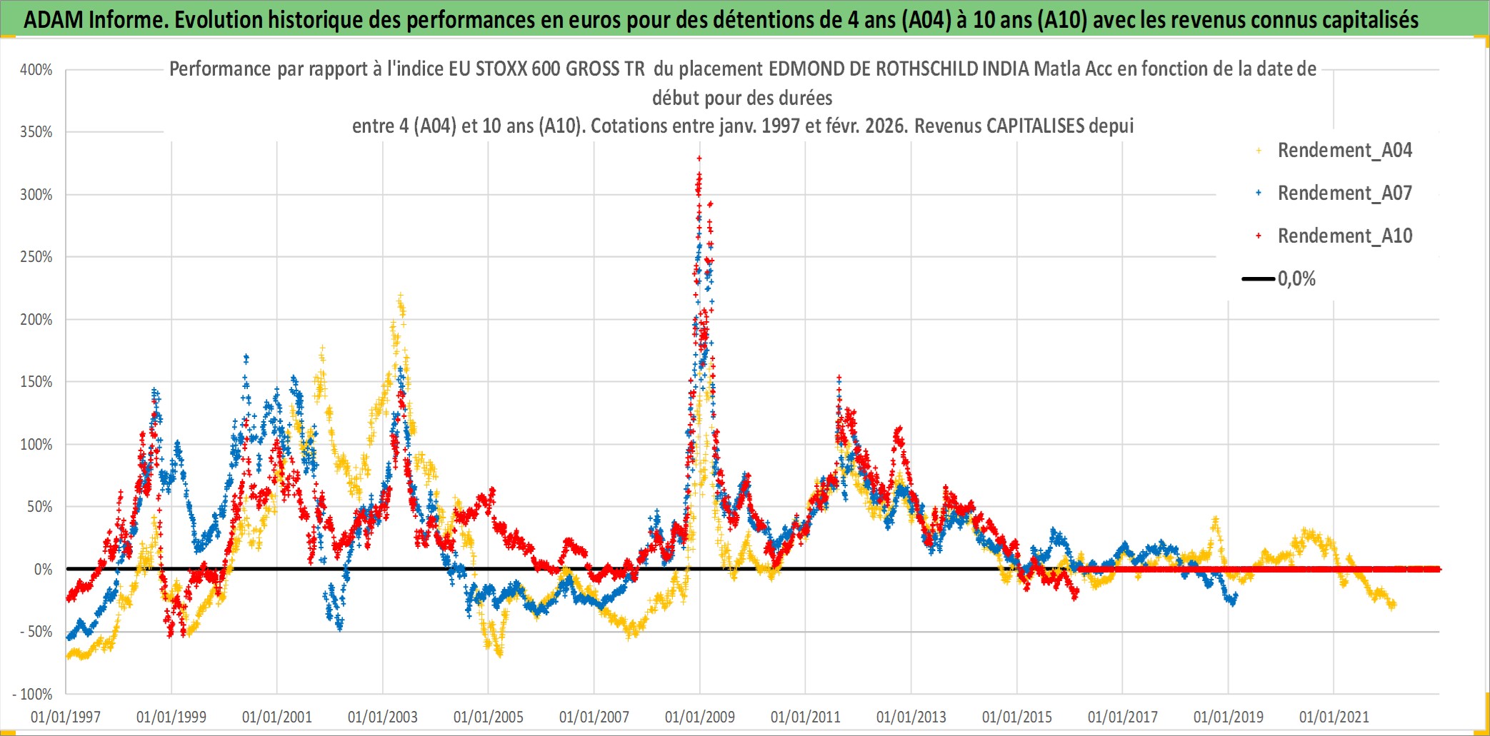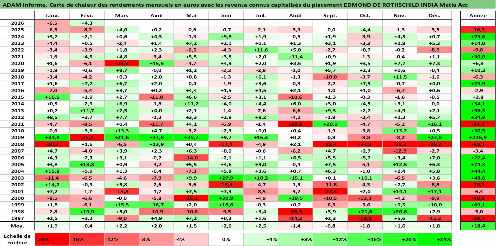 Site dédié aux investisseursPage dédiée sur site financeAnalyse des valorisations hebdomadaires du fonds EDMOND DE ROTHSCHILD INDIA Matla Acc. Cet actif est cote en EUR. Les valorisations couvrent les semaines 1997W01 a 2026W09. Les revenus de cet actif financier sont pris en compte depuis la semaine 1997W01. La note ESG de cet actif n'est pas connue.
