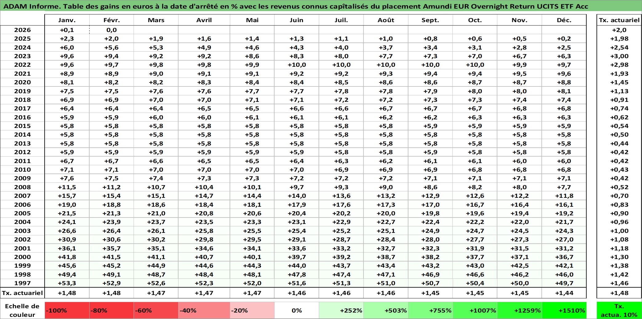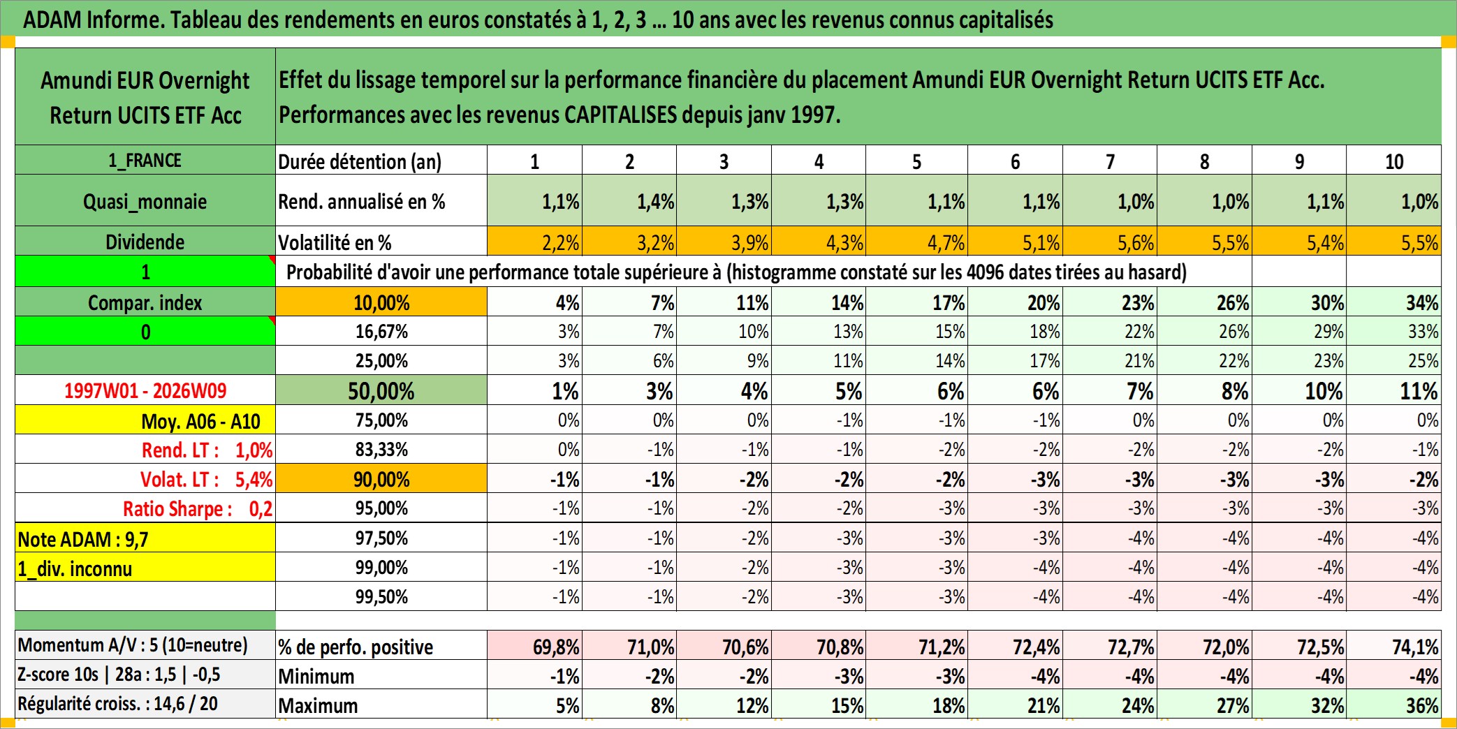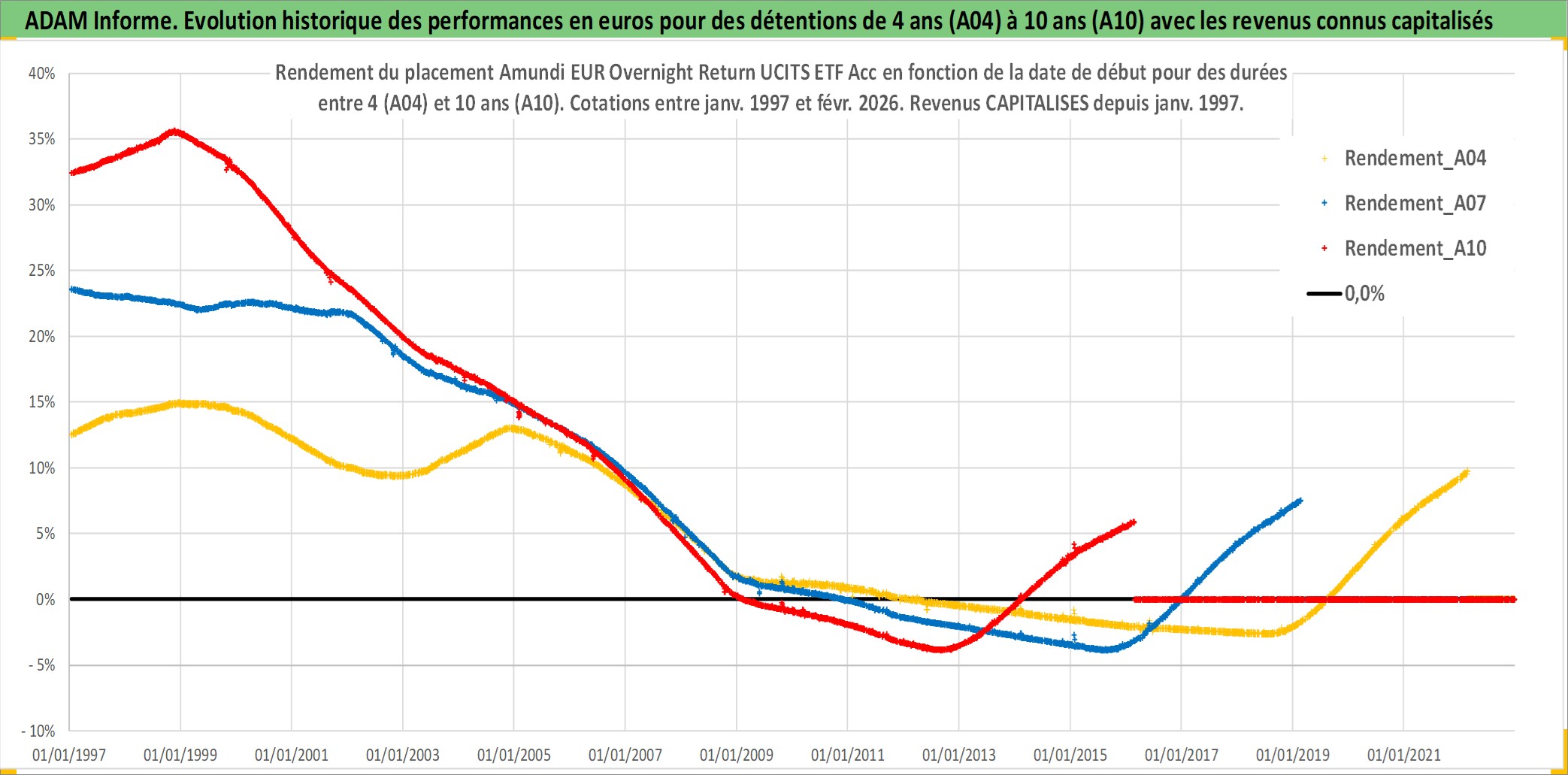 Site dédié aux investisseursPage dédiée sur site financeAnalyse des valorisations hebdomadaires du fonds Amundi EUR Overnight Return UCITS ETF Acc. Cet actif est cote en EUR. Les valorisations couvrent les semaines 1997W01 a 2026W09. Les revenus de cet actif financier sont pris en compte depuis la semaine 1997W01. La note ESG de cet actif n'est pas connue.