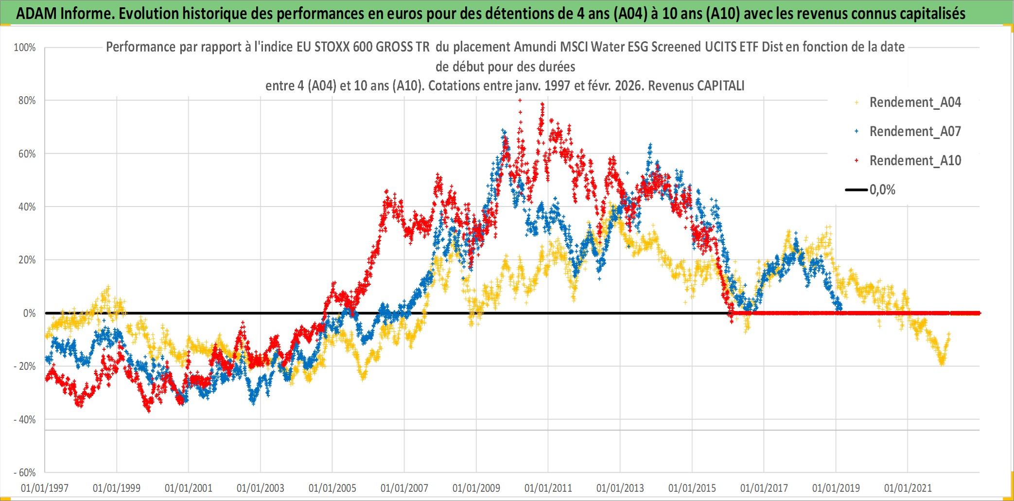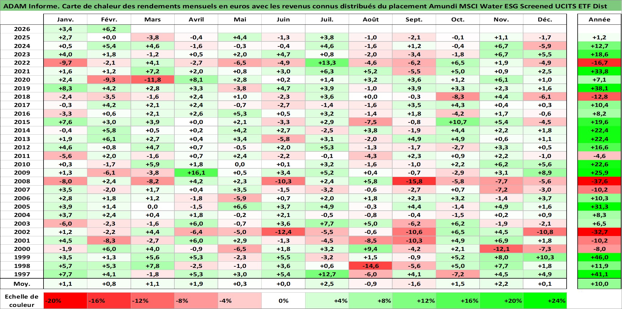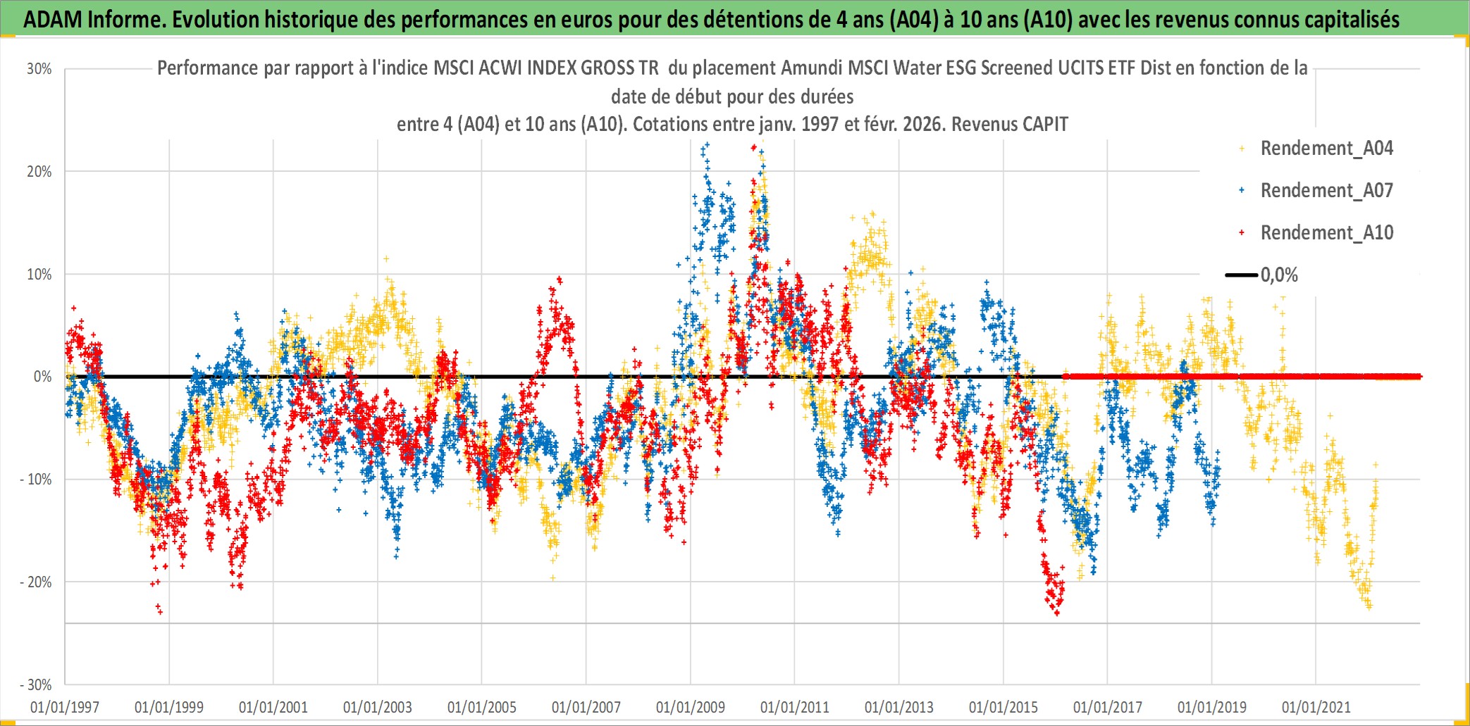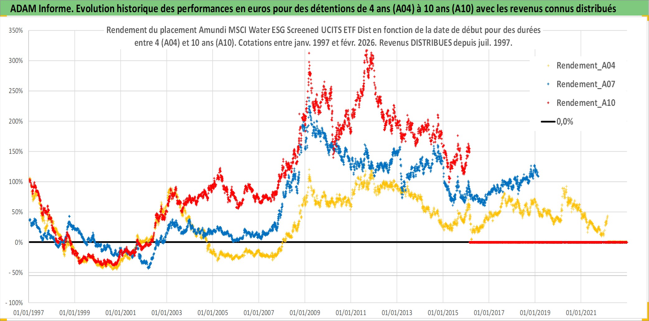Site dédié aux investisseursPage dédiée sur site financeAnalyse des valorisations hebdomadaires du fonds Amundi MSCI Water ESG Screened UCITS ETF Dist. Cet actif est cote en EUR. Les valorisations couvrent les semaines 1997W01 a 2026W09. Les revenus de cet actif financier sont pris en compte depuis la semaine 1997W28. La note ESG de cet actif n'est pas connue.