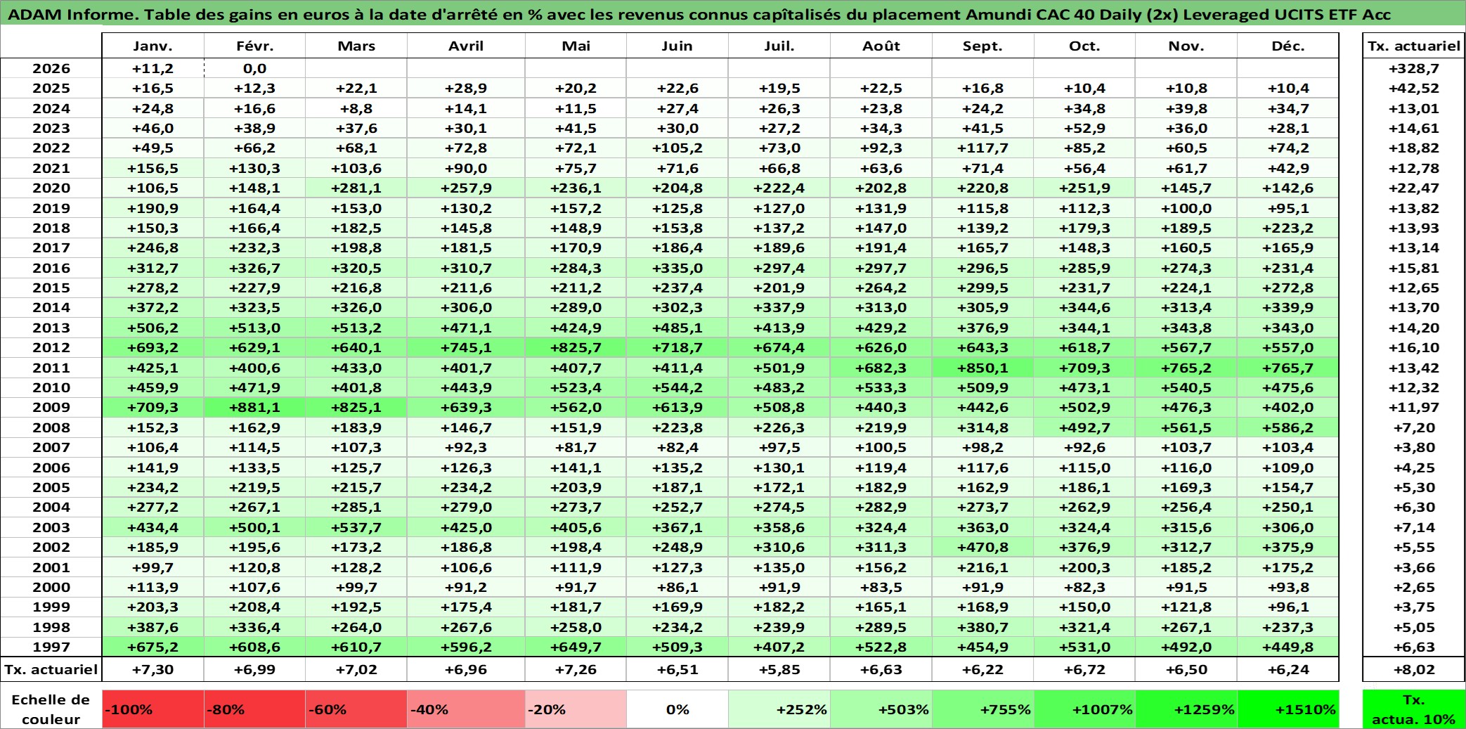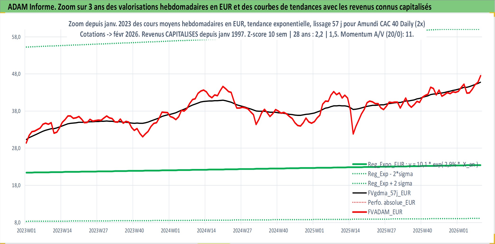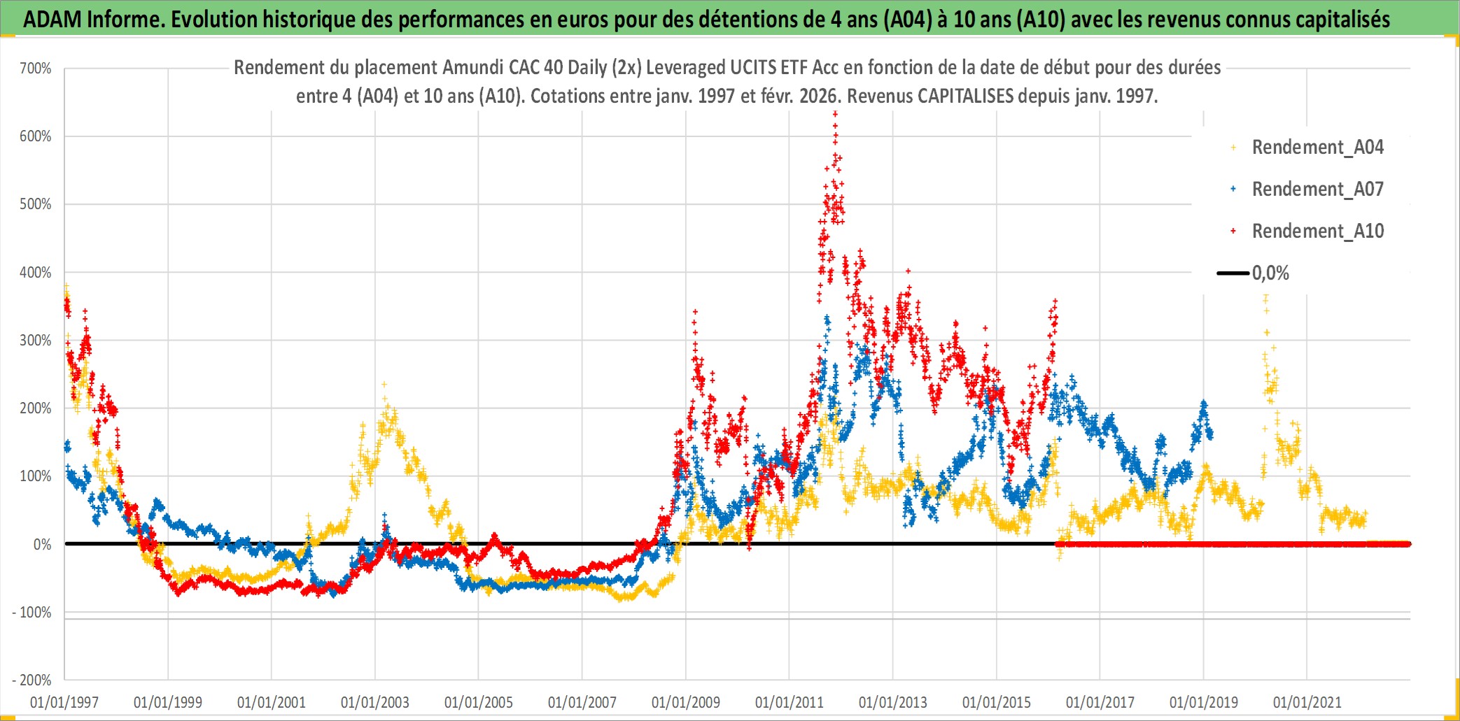 Site dédié aux investisseursPage dédiée sur site financeAnalyse des valorisations hebdomadaires du fonds Amundi CAC 40 Daily (2x) Leveraged UCITS ETF Acc. Cet actif est cote en EUR. Les valorisations couvrent les semaines 1997W01 a 2026W09. Les revenus de cet actif financier sont pris en compte depuis la semaine 1997W01. La note ESG de cet actif n'est pas connue.