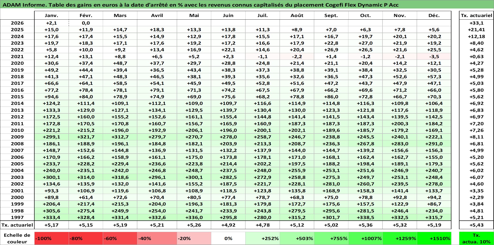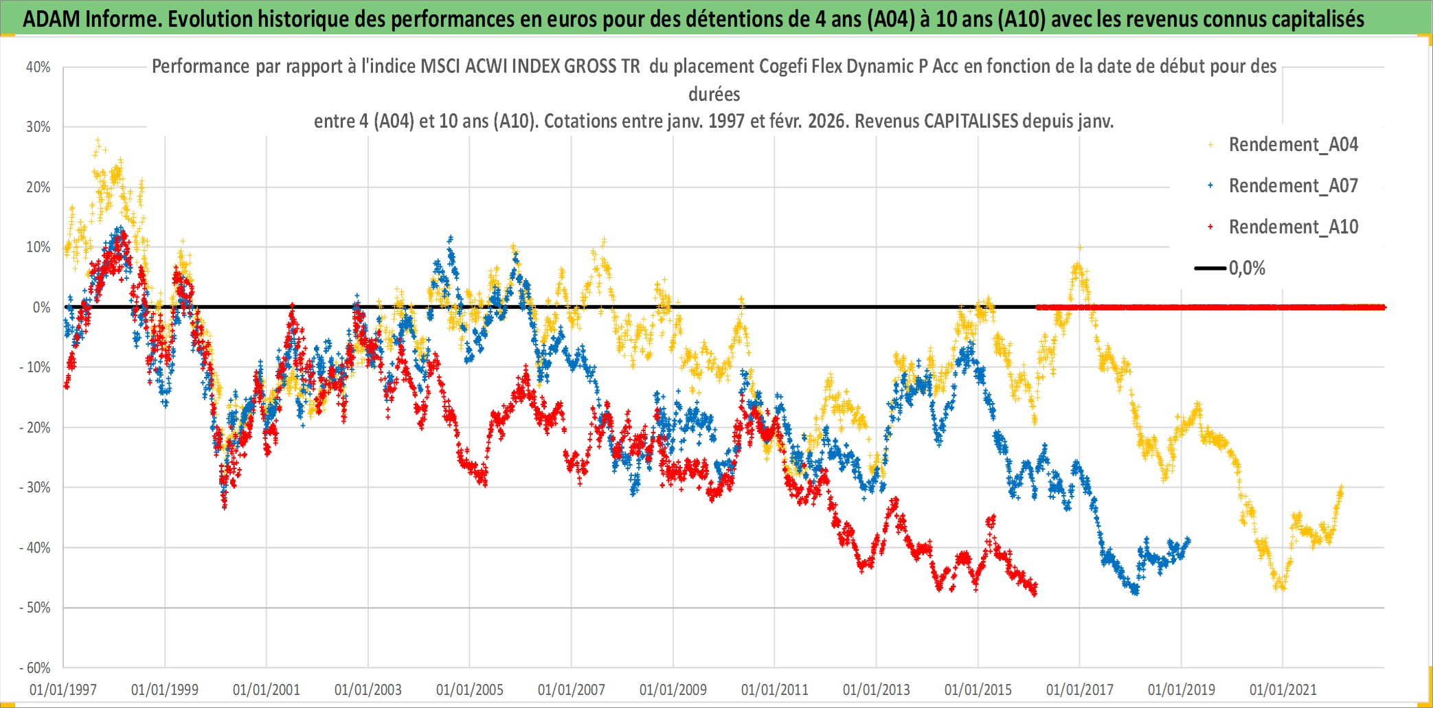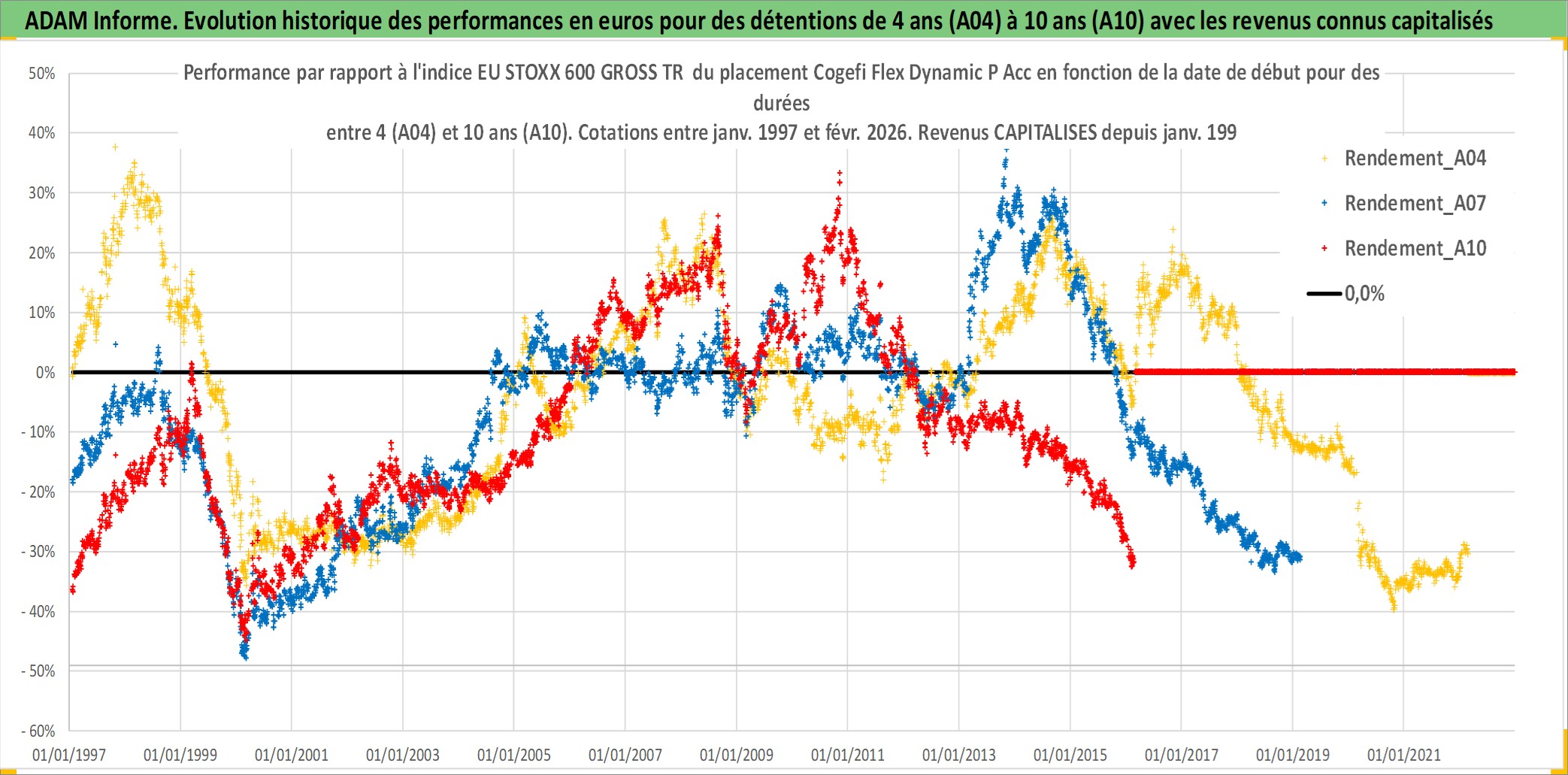 Site dédié aux investisseursPage dédiée sur site financeAnalyse des valorisations hebdomadaires du fonds Cogefi Flex Dynamic P Acc. Cet actif est cote en EUR. Les valorisations couvrent les semaines 1997W01 a 2026W09. Les revenus de cet actif financier sont pris en compte depuis la semaine 1997W01. La note globale ESG de cet actif est estimee a 11.0 (apres rebasage entre 0 et 20).