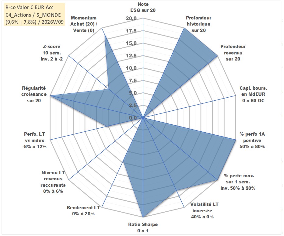 Site dédié aux investisseursPage dédiée sur site financeAnalyse des valorisations hebdomadaires du fonds R-co Valor C EUR Acc. Cet actif est cote en EUR. Les valorisations couvrent les semaines 1997W01 a 2026W09. Les revenus de cet actif financier sont pris en compte depuis la semaine 1997W01. La note ESG de cet actif n'est pas connue.