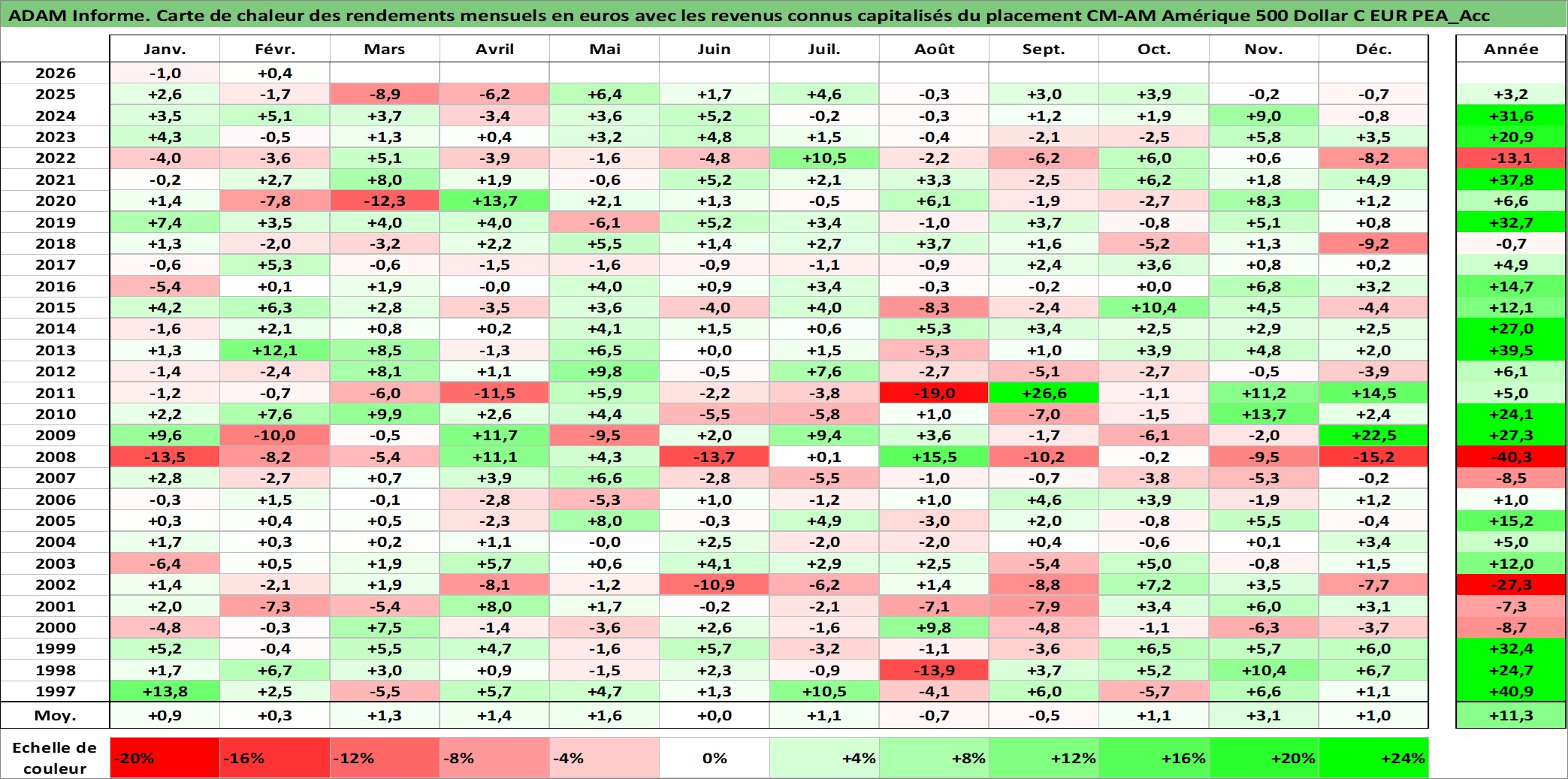 Dernière perfo 1 an en %