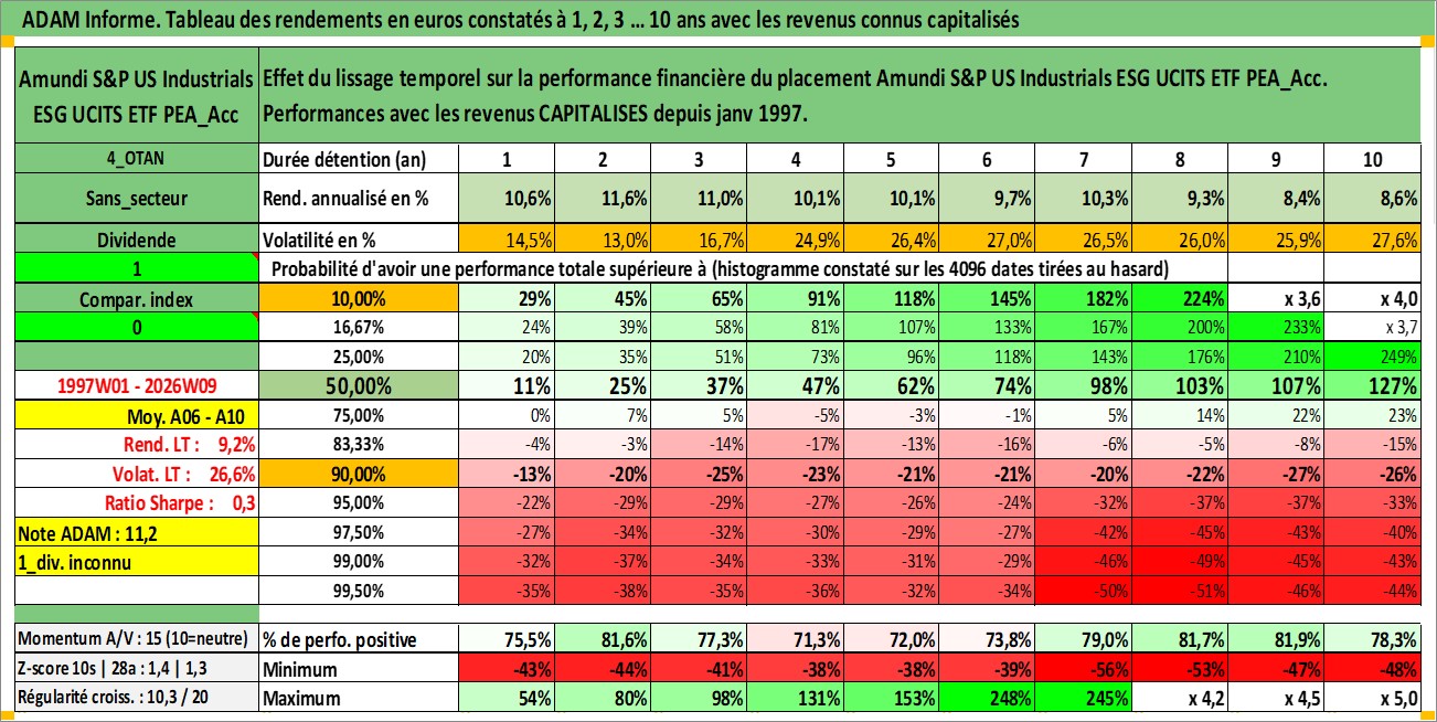 Site dédié aux investisseursPage dédiée sur site financeAnalyse des valorisations hebdomadaires du fonds Amundi S&P US Industrials ESG UCITS ETF PEA_Acc. Cet actif est cote en EUR. Les valorisations couvrent les semaines 1997W01 a 2026W09. Les revenus de cet actif financier sont pris en compte depuis la semaine 1997W01. La note ESG de cet actif n'est pas connue.
