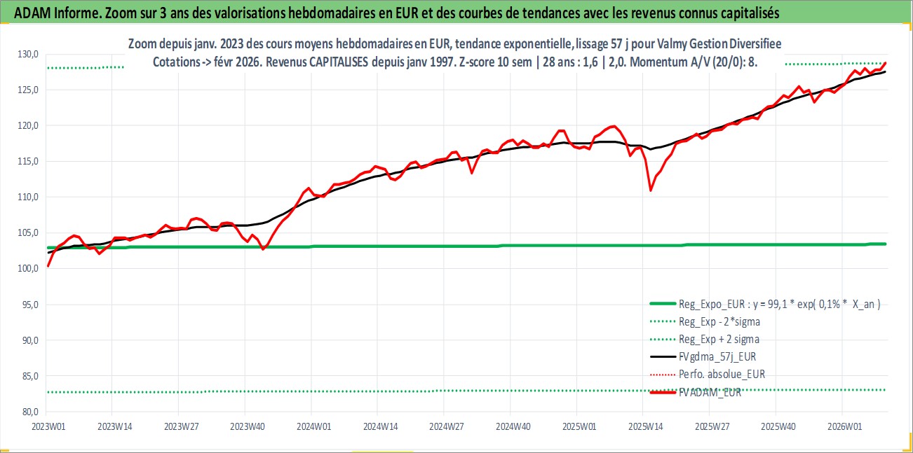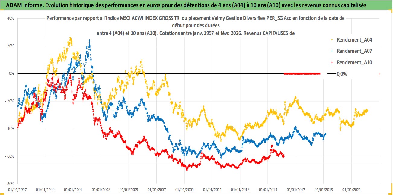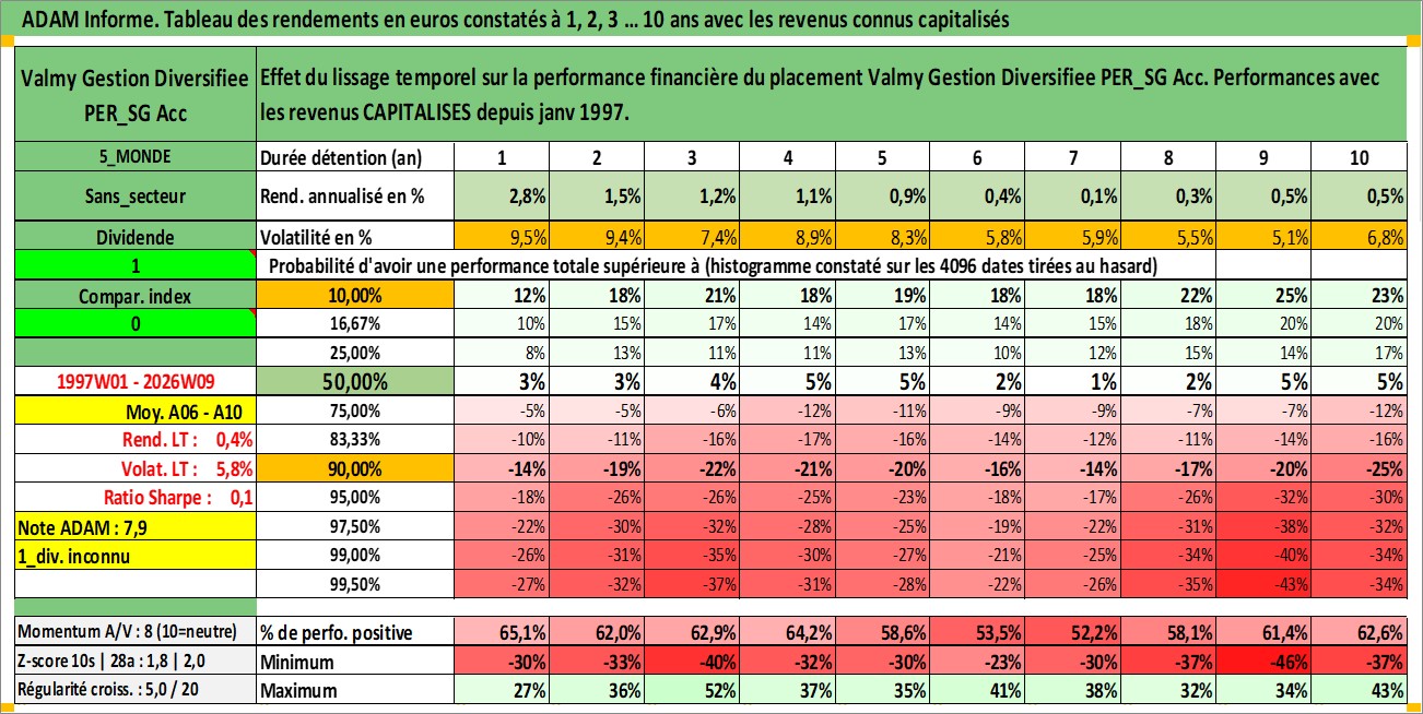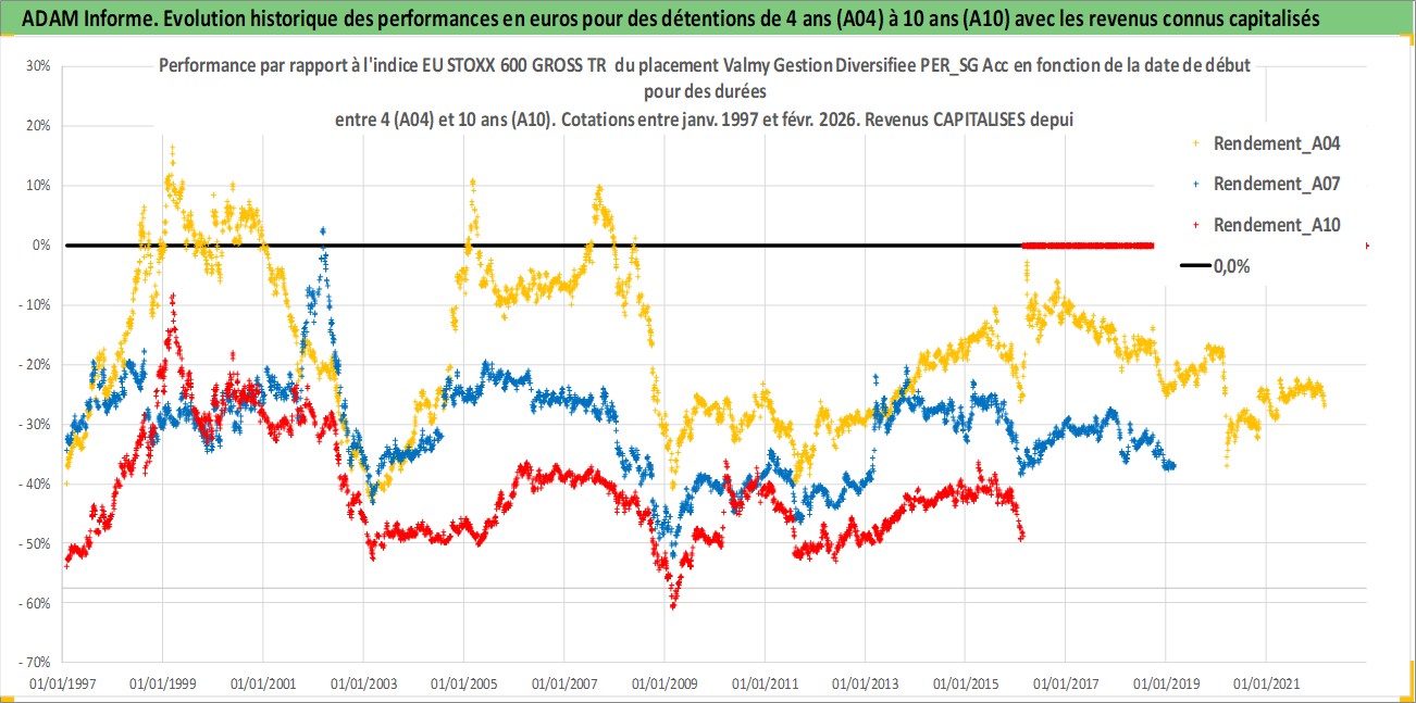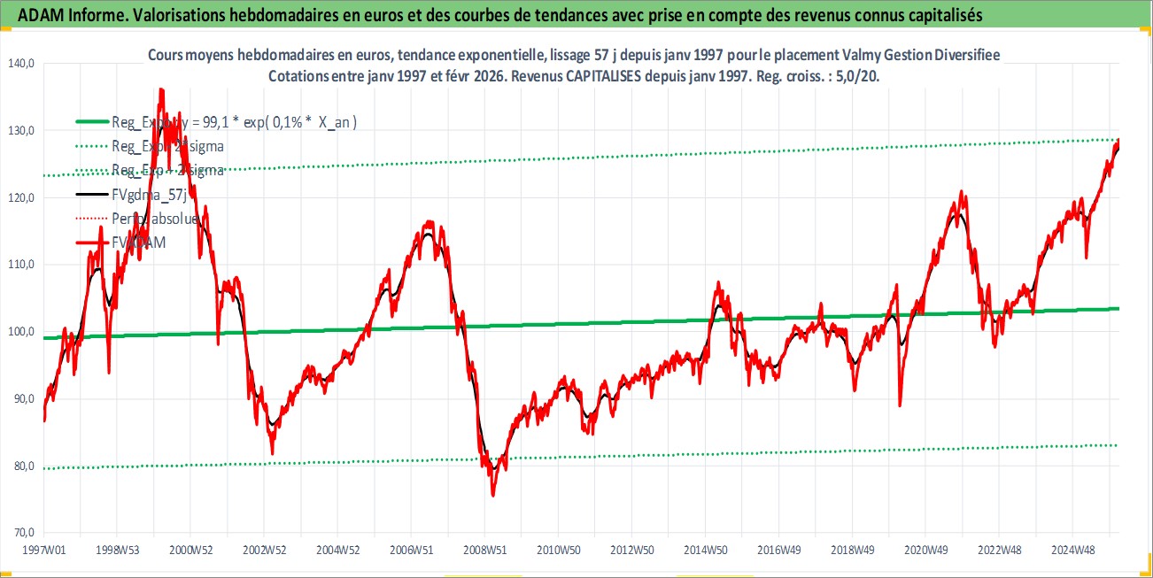 Site dédié aux investisseursPage dédiée sur site financeAnalyse des valorisations hebdomadaires du fonds Valmy Gestion Diversifiee PER_SG Acc. Cet actif est cote en EUR. Les valorisations couvrent les semaines 1997W01 a 2026W09. Les revenus de cet actif financier sont pris en compte depuis la semaine 1997W01. La note ESG de cet actif n'est pas connue.
