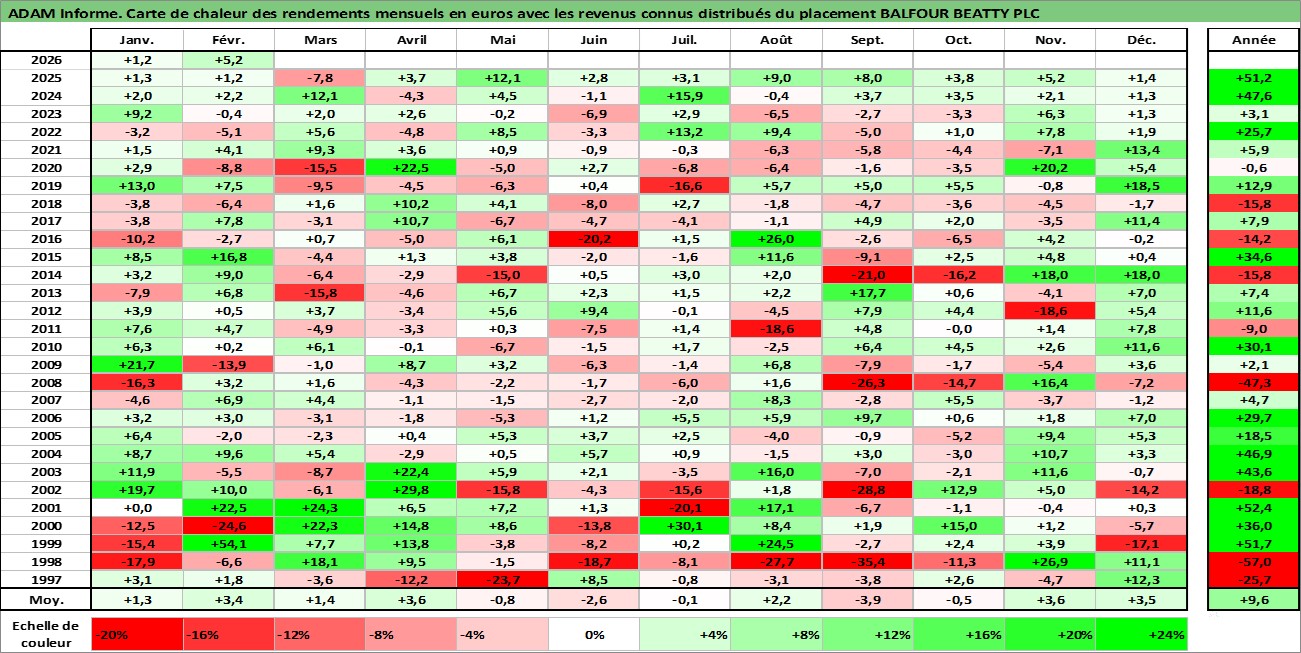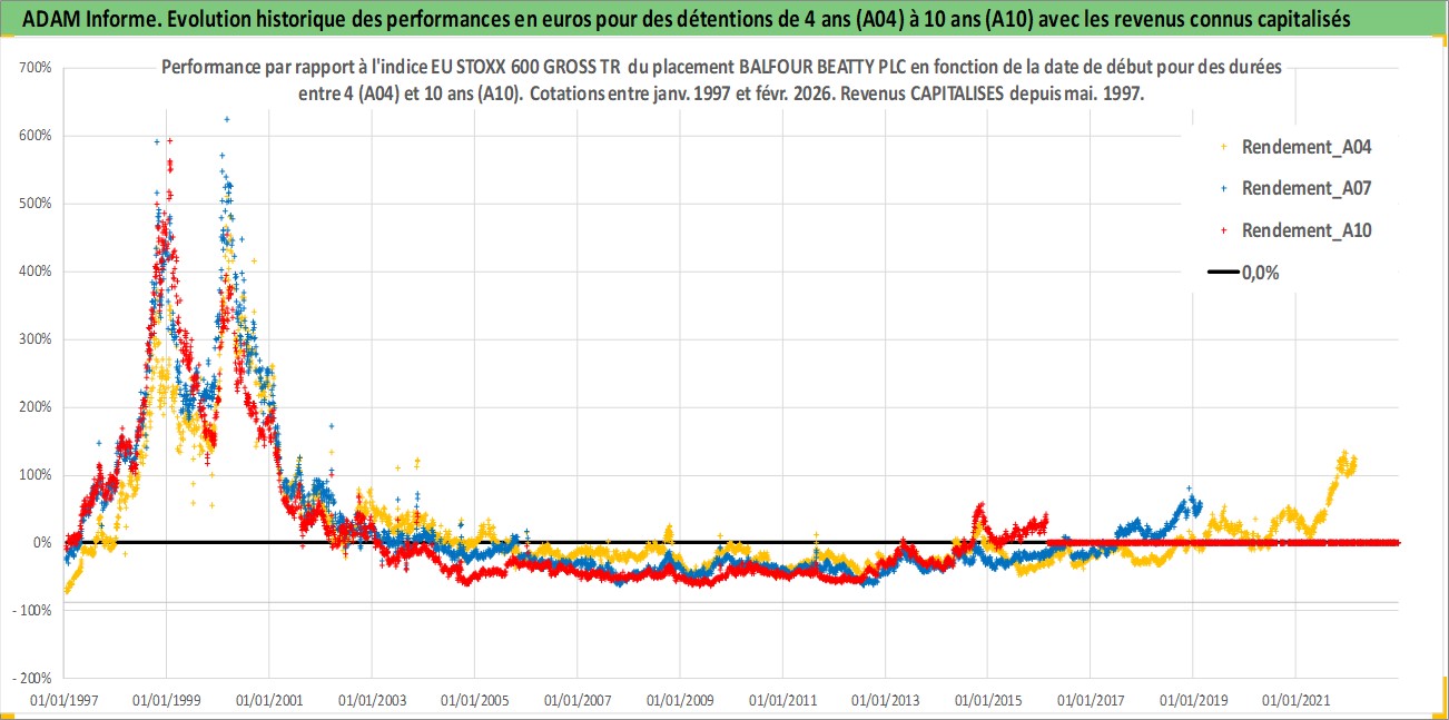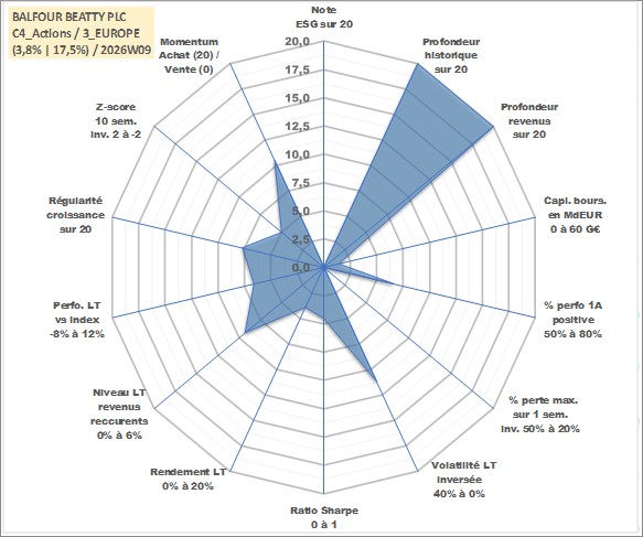 Site dédié aux investisseursPage dédiée sur site financeAnalyse des valorisations hebdomadaires de l'action BALFOUR BEATTY PLC. Cet actif est cote en GBX. Les valorisations sont en contrevaleur EURO et couvrent les semaines 1997W01 a 2026W09. Les revenus de cet actif financier sont pris en compte depuis la semaine 1997W19. La note ESG de cet actif n'est pas connue.