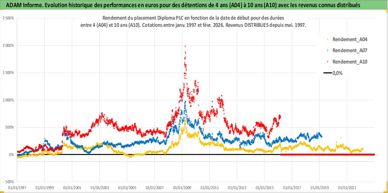 Site dédié aux investisseursPage dédiée sur site financeAnalyse des valorisations hebdomadaires de l'action Diploma PLC. Cet actif est cote en GBX. Les valorisations sont en contrevaleur EURO et couvrent les semaines 1997W01 a 2026W09. Les revenus de cet actif financier sont pris en compte depuis la semaine 1997W21. La note ESG de cet actif n'est pas connue.