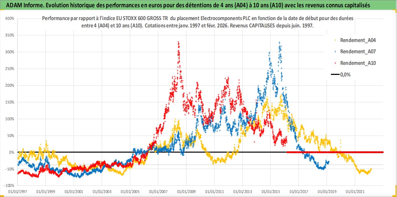 Site dédié aux investisseursPage dédiée sur site financeAnalyse des valorisations hebdomadaires de l'action Electrocomponents PLC. Cet actif est cote en GBX. Les valorisations sont en contrevaleur EURO et couvrent les semaines 1997W01 a 2026W09. Les revenus de cet actif financier sont pris en compte depuis la semaine 1997W25. La note ESG de cet actif n'est pas connue.