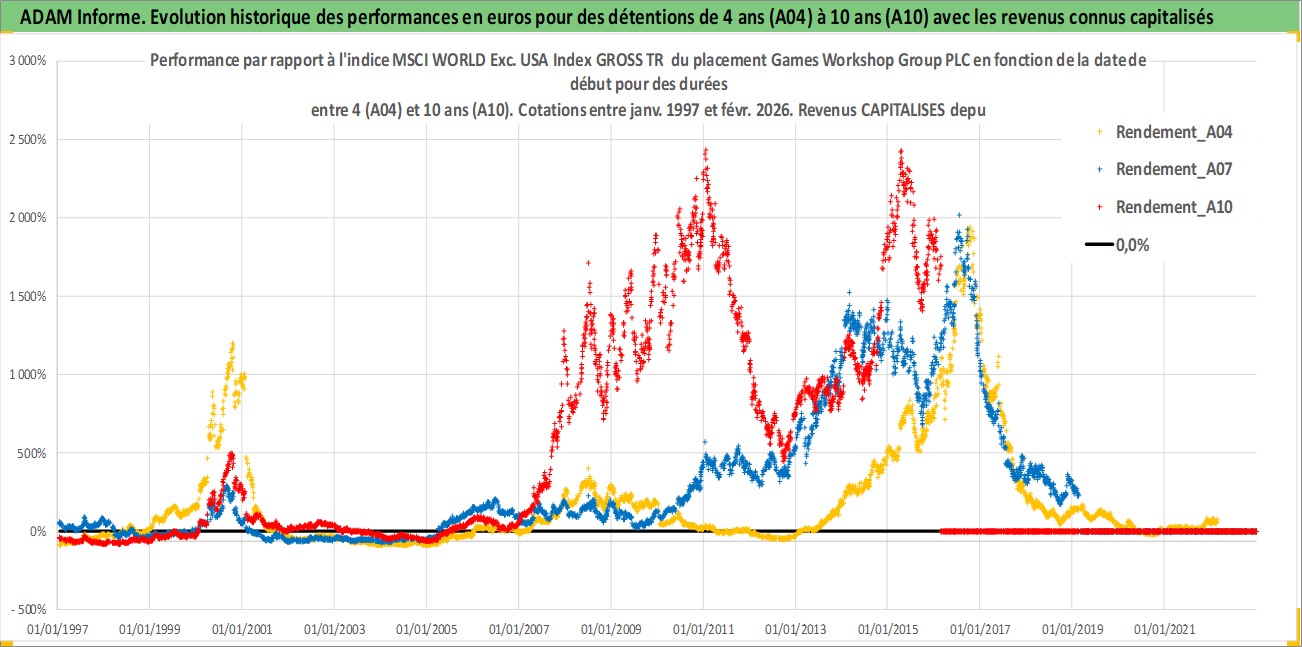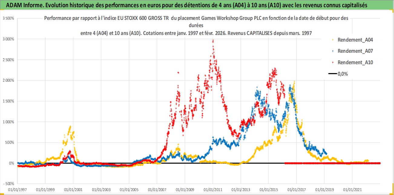 Site dédié aux investisseursPage dédiée sur site financeAnalyse des valorisations hebdomadaires de l'action Games Workshop Group PLC. Cet actif est cote en GBX. Les valorisations sont en contrevaleur EURO et couvrent les semaines 1997W01 a 2026W09. Les revenus de cet actif financier sont pris en compte depuis la semaine 1997W13. La note ESG de cet actif n'est pas connue.