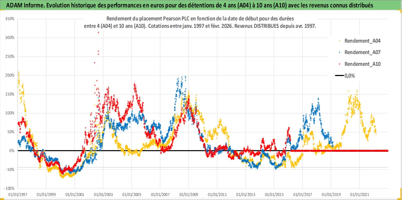 Site dédié aux investisseursPage dédiée sur site financeAnalyse des valorisations hebdomadaires de l'action Pearson PLC. Cet actif est cote en GBX. Les valorisations sont en contrevaleur EURO et couvrent les semaines 1997W01 a 2026W09. Les revenus de cet actif financier sont pris en compte depuis la semaine 1997W15. La note globale ESG de cet actif est estimee a 20.0 (apres rebasage entre 0 et 20).
