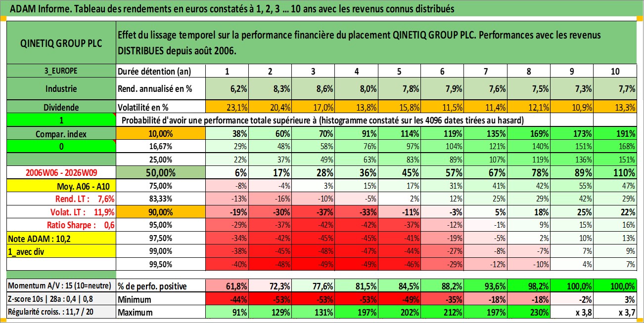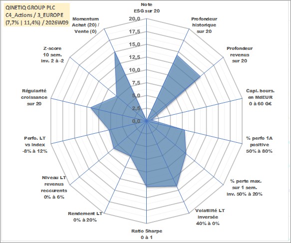 Site dédié aux investisseursPage dédiée sur site financeAnalyse des valorisations hebdomadaires de l'action QINETIQ GROUP PLC. Cet actif est cote en GBX. Les valorisations sont en contrevaleur EURO et couvrent les semaines 2006W06 a 2026W09. Les revenus de cet actif financier sont pris en compte depuis la semaine 2006W31. La note ESG de cet actif n'est pas connue.