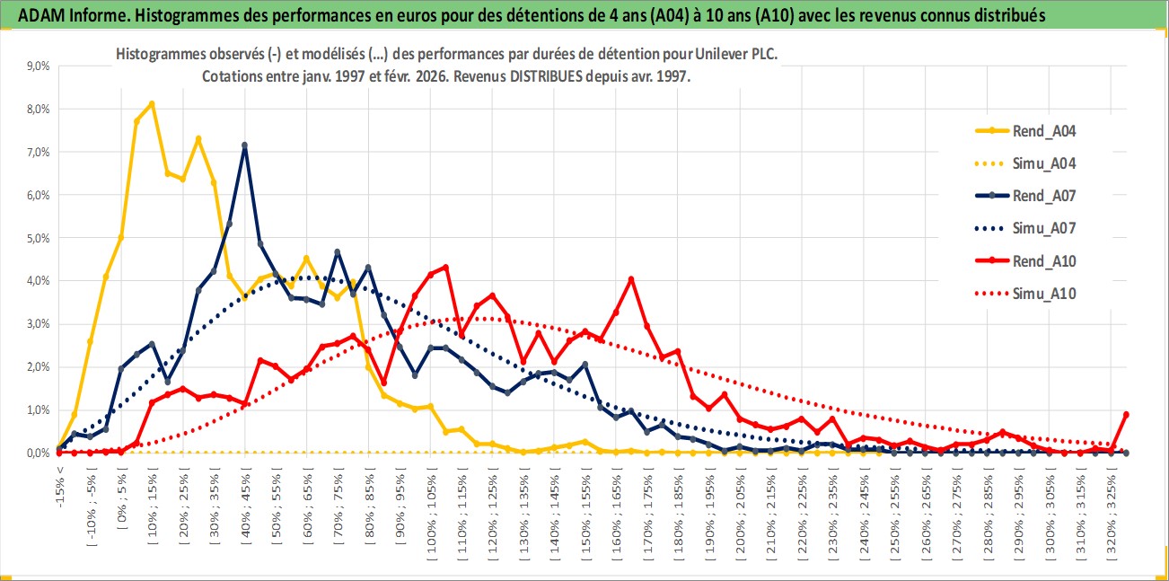 Site dédié aux investisseursPage dédiée sur site financeAnalyse des valorisations hebdomadaires de l'action Unilever PLC. Cet actif est cote en GBX. Les valorisations sont en contrevaleur EURO et couvrent les semaines 1997W01 a 2026W09. Les revenus de cet actif financier sont pris en compte depuis la semaine 1997W15. La note globale ESG de cet actif est estimee a 10.0 (apres rebasage entre 0 et 20).