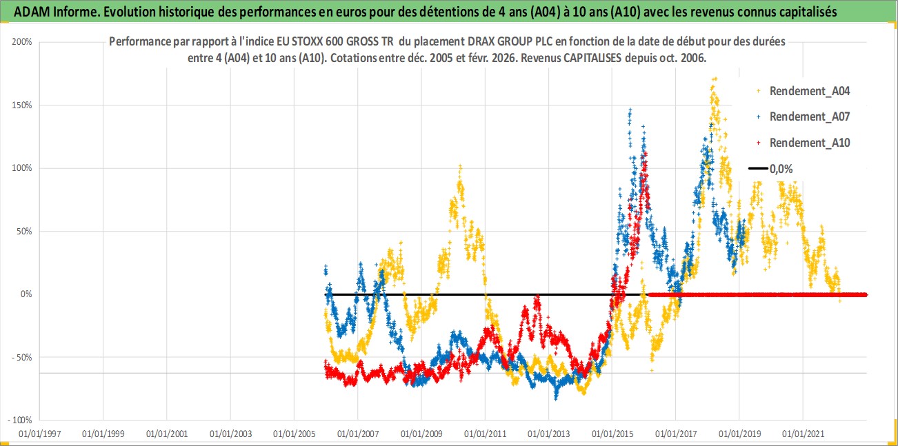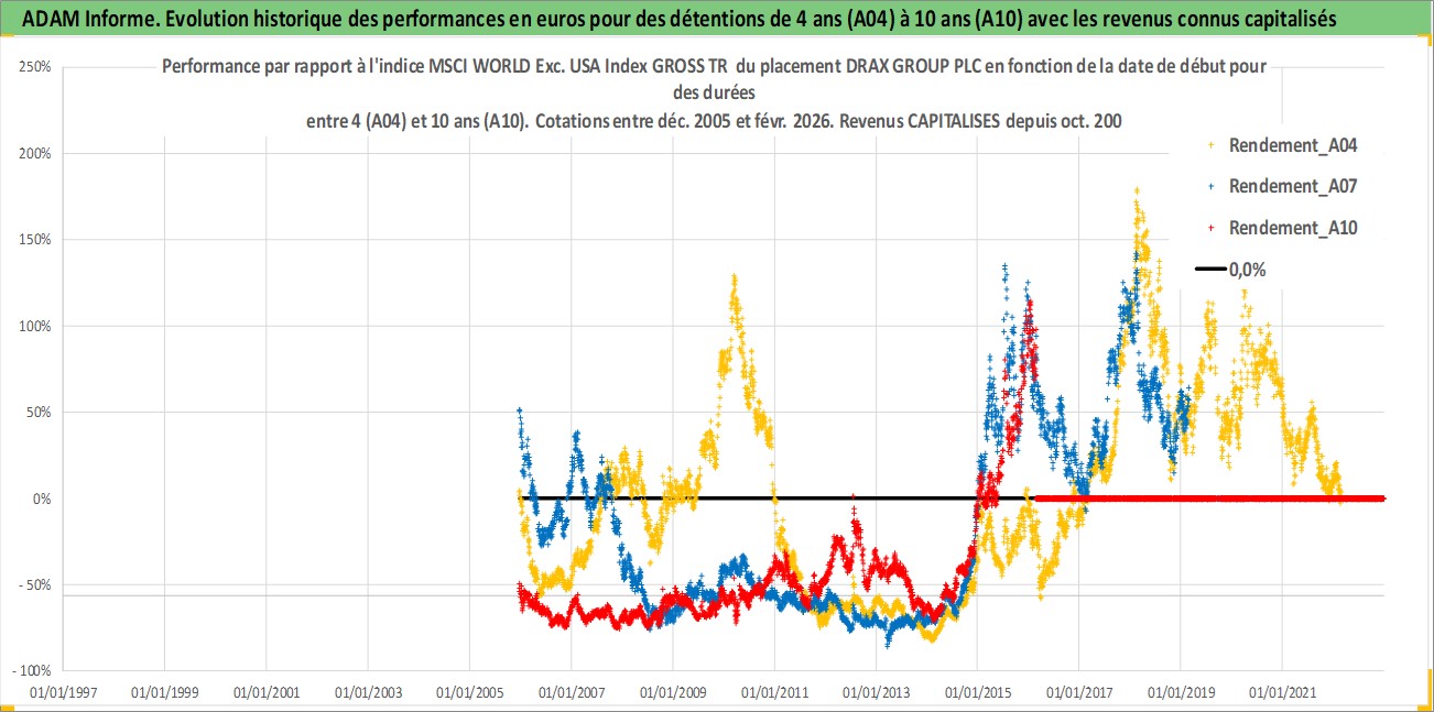 Site dédié aux investisseursPage dédiée sur site financeAnalyse des valorisations hebdomadaires de l'action DRAX GROUP PLC. Cet actif est cote en GBX. Les valorisations sont en contrevaleur EURO et couvrent les semaines 2005W50 a 2026W09. Les revenus de cet actif financier sont pris en compte depuis la semaine 2006W40. La note ESG de cet actif n'est pas connue.
