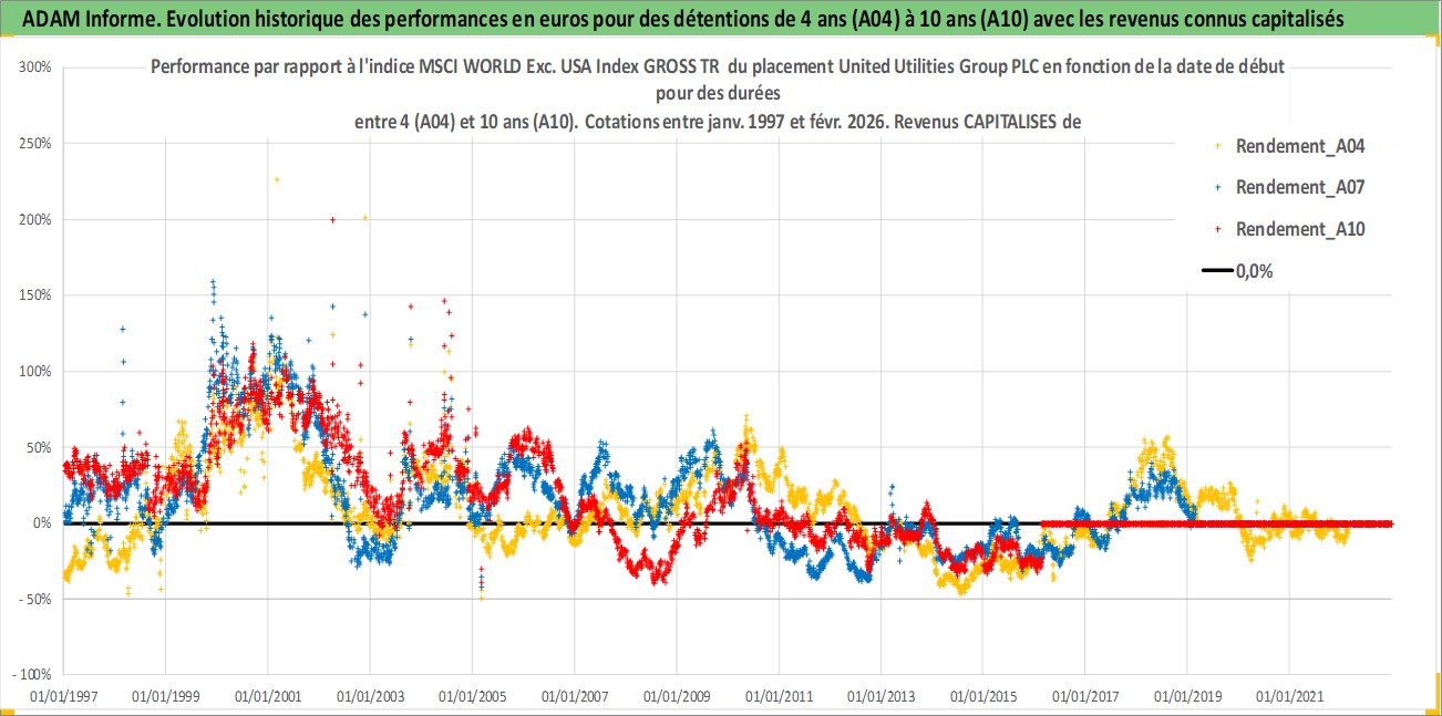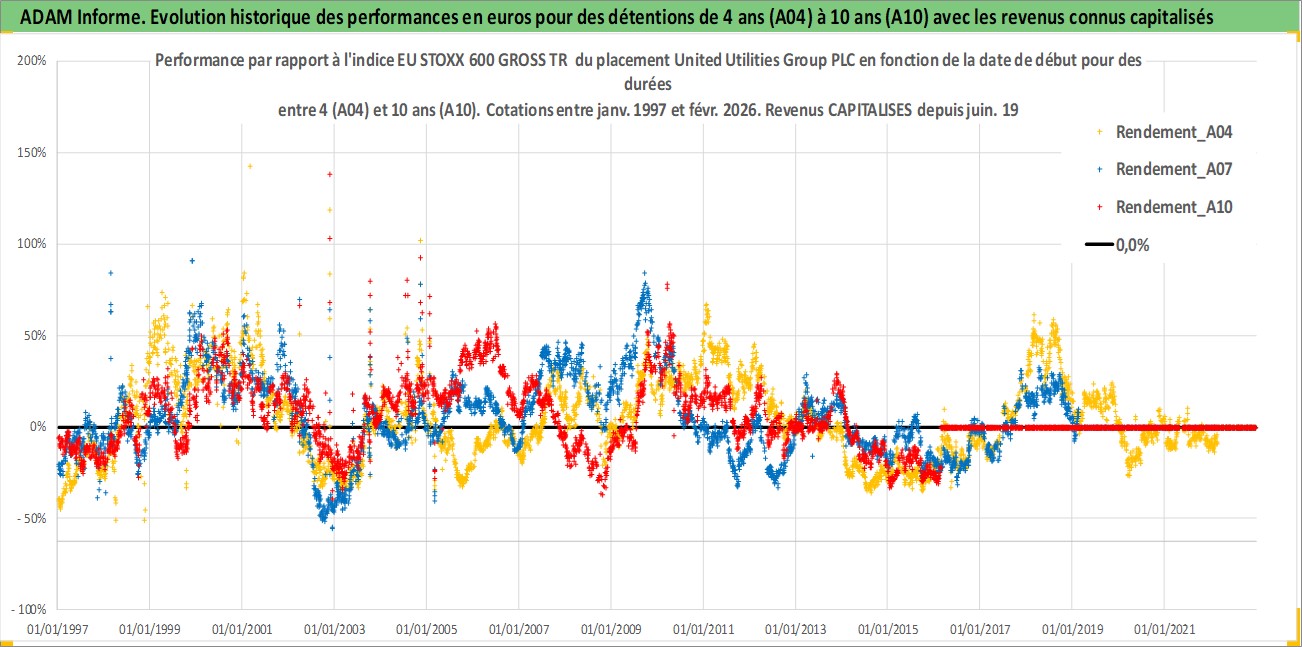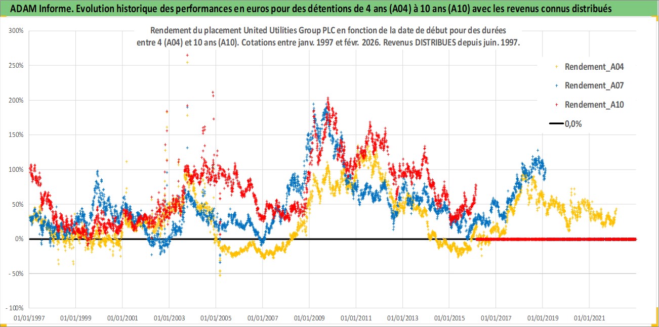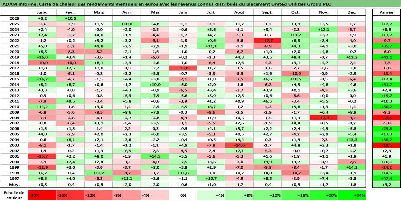 Site dédié aux investisseursPage dédiée sur site financeAnalyse des valorisations hebdomadaires de l'action United Utilities Group PLC. Cet actif est cote en GBX. Les valorisations sont en contrevaleur EURO et couvrent les semaines 1997W01 a 2026W09. Les revenus de cet actif financier sont pris en compte depuis la semaine 1997W24. La note globale ESG de cet actif est estimee a 16.0 (apres rebasage entre 0 et 20).