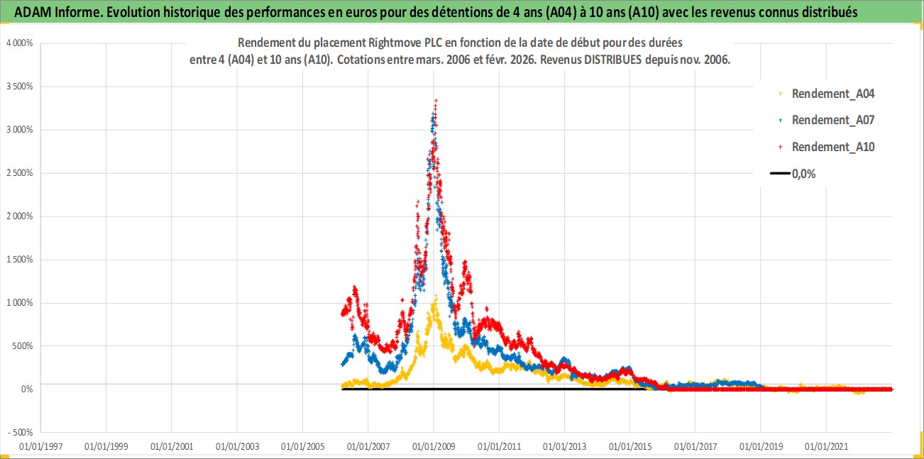 Site dédié aux investisseursPage dédiée sur site financeAnalyse des valorisations hebdomadaires de l'action Rightmove PLC. Cet actif est cote en GBX. Les valorisations sont en contrevaleur EURO et couvrent les semaines 2006W10 a 2026W09. Les revenus de cet actif financier sont pris en compte depuis la semaine 2006W47. La note ESG de cet actif n'est pas connue.