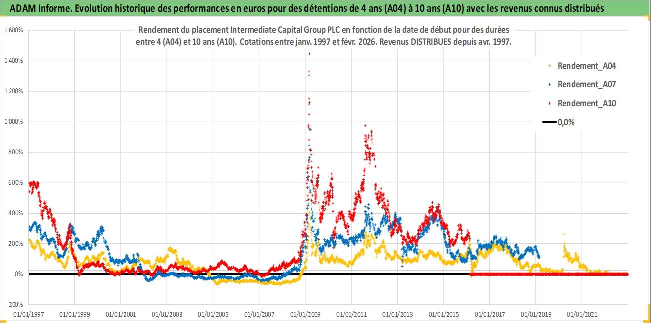 Site dédié aux investisseursPage dédiée sur site financeAnalyse des valorisations hebdomadaires de l'action Intermediate Capital Group PLC. Cet actif est cote en GBX. Les valorisations sont en contrevaleur EURO et couvrent les semaines 1997W01 a 2026W09. Les revenus de cet actif financier sont pris en compte depuis la semaine 1997W16. La note ESG de cet actif n'est pas connue.
