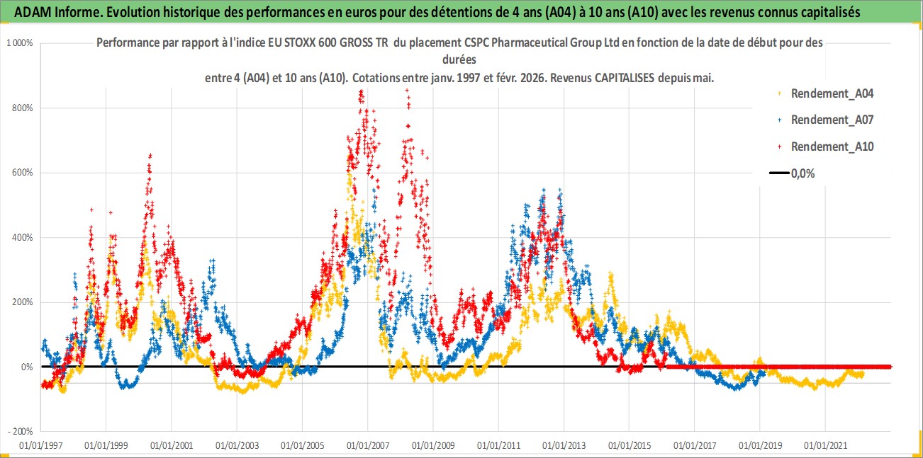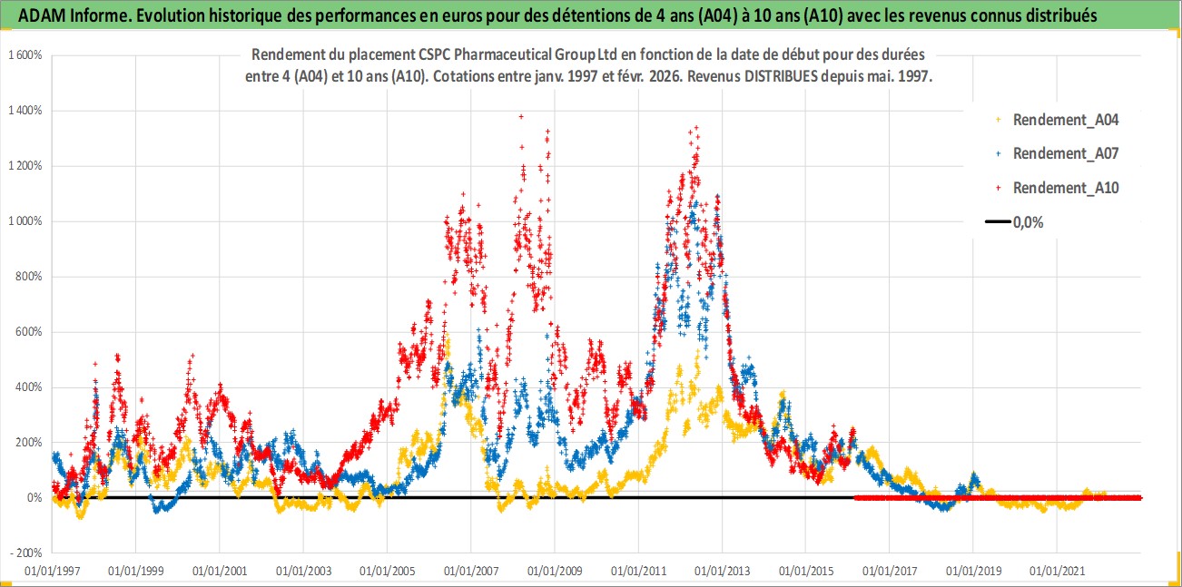 Site dédié aux investisseursPage dédiée sur site financeAnalyse des valorisations hebdomadaires de l'action CSPC Pharmaceutical Group Ltd. Cet actif est cote en HKD. Les valorisations sont en contrevaleur EURO et couvrent les semaines 1997W01 a 2026W09. Les revenus de cet actif financier sont pris en compte depuis la semaine 1997W22. La note globale ESG de cet actif est estimee a 4.0 (apres rebasage entre 0 et 20).