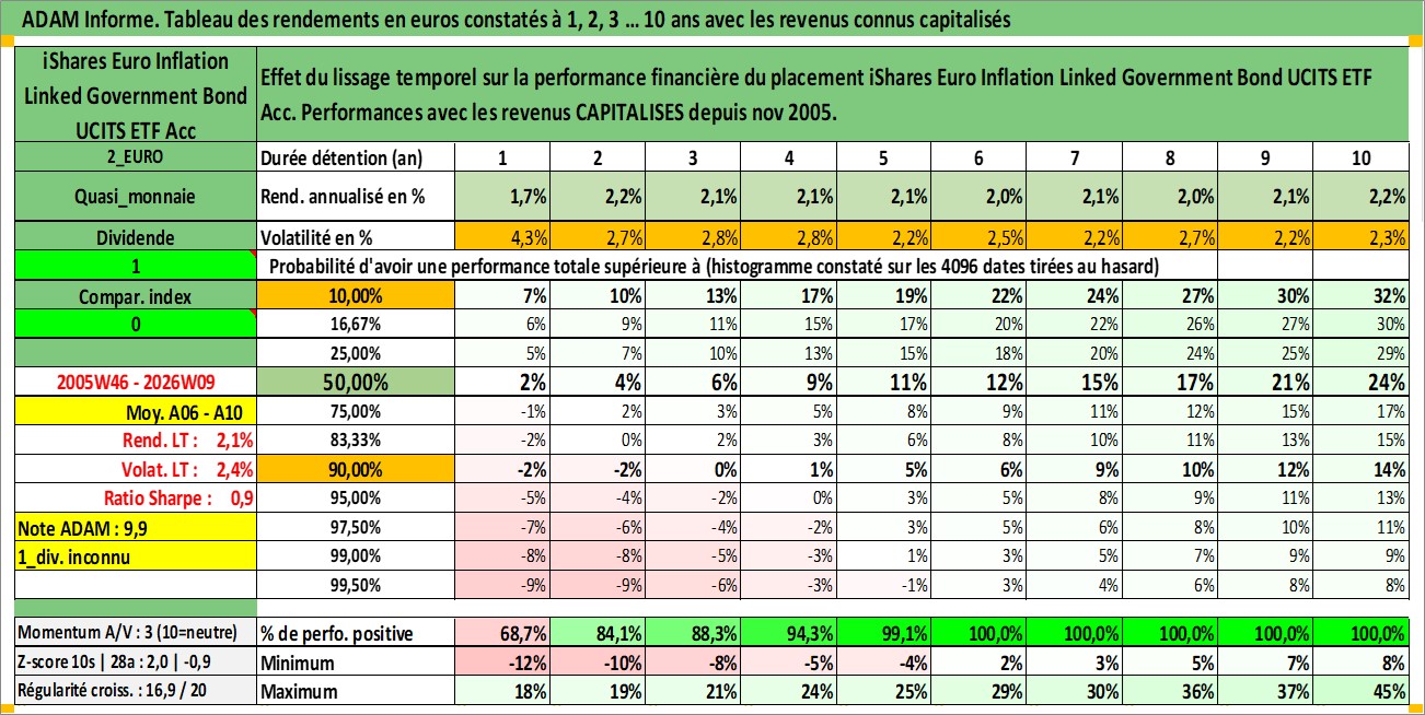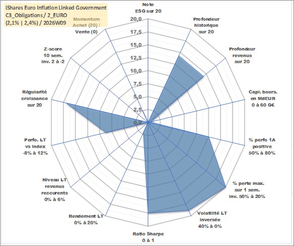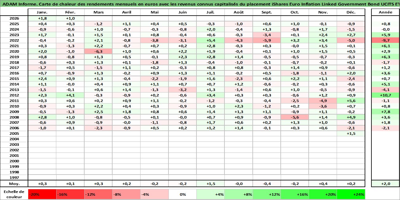 Site dédié aux investisseursPage dédiée sur site financeAnalyse des valorisations hebdomadaires du fonds iShares Euro Inflation Linked Government Bond UCITS ETF Acc. Cet actif est cote en EUR. Les valorisations couvrent les semaines 2005W46 a 2026W09. Les revenus de cet actif financier sont pris en compte depuis la semaine 2005W46. La note ESG de cet actif n'est pas connue.